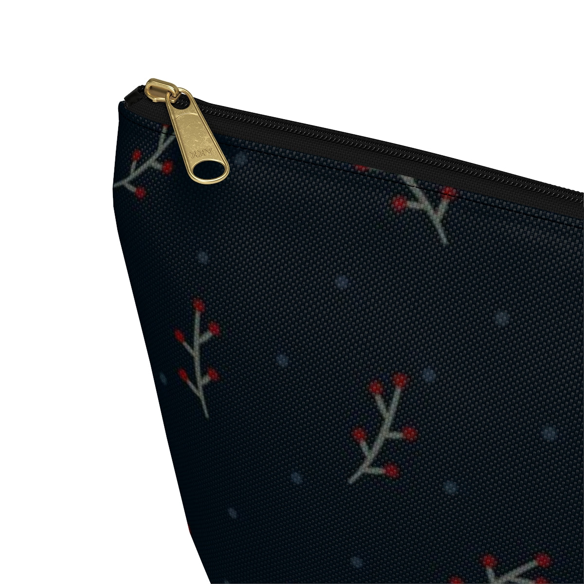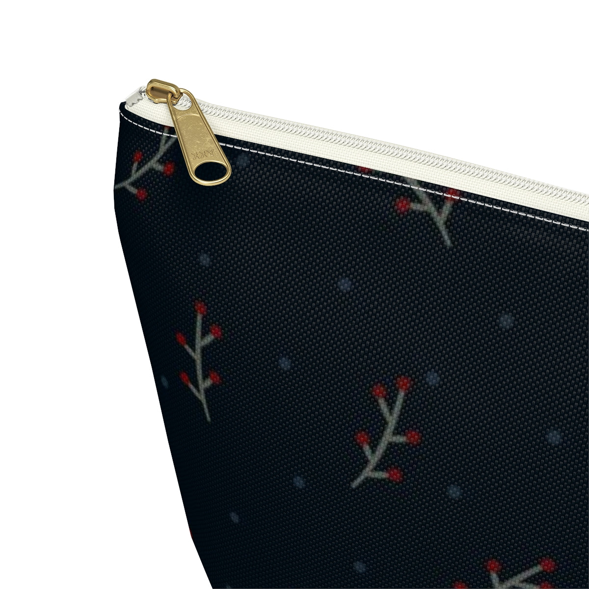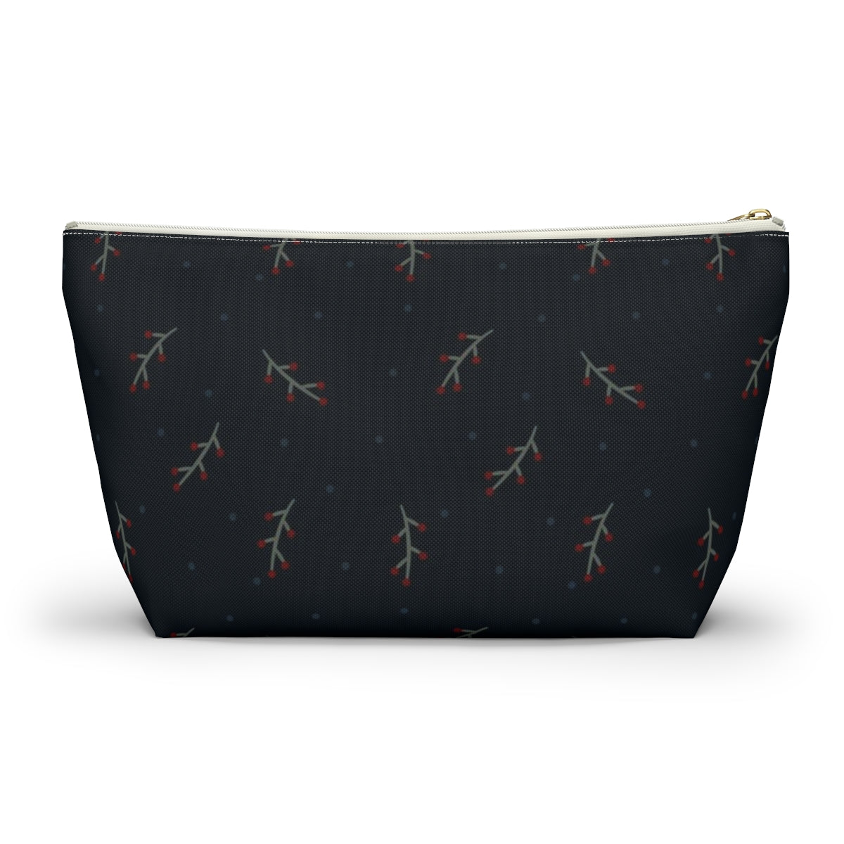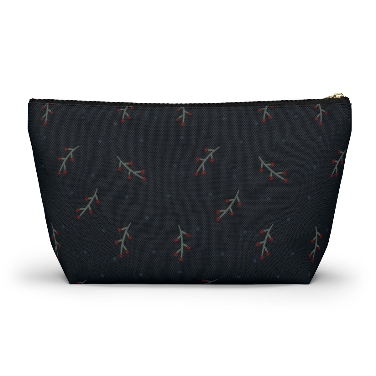 Big Bottom Zipper Pouch - Berry Branches on Navy Background
