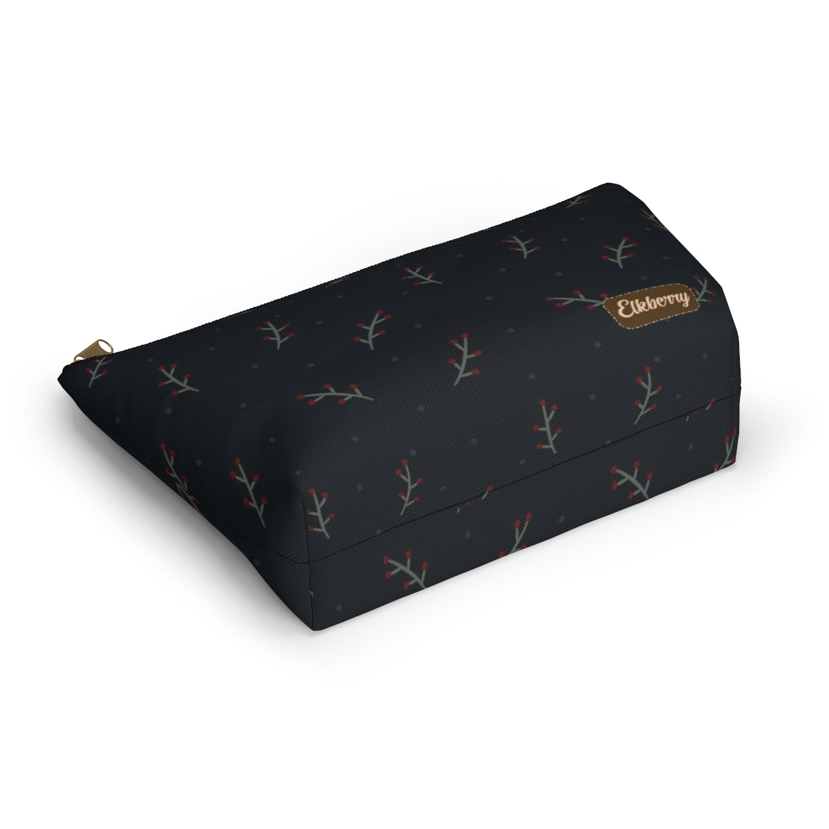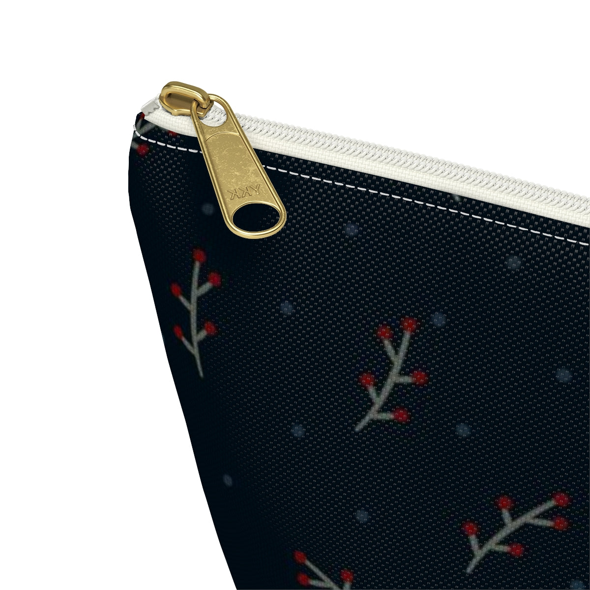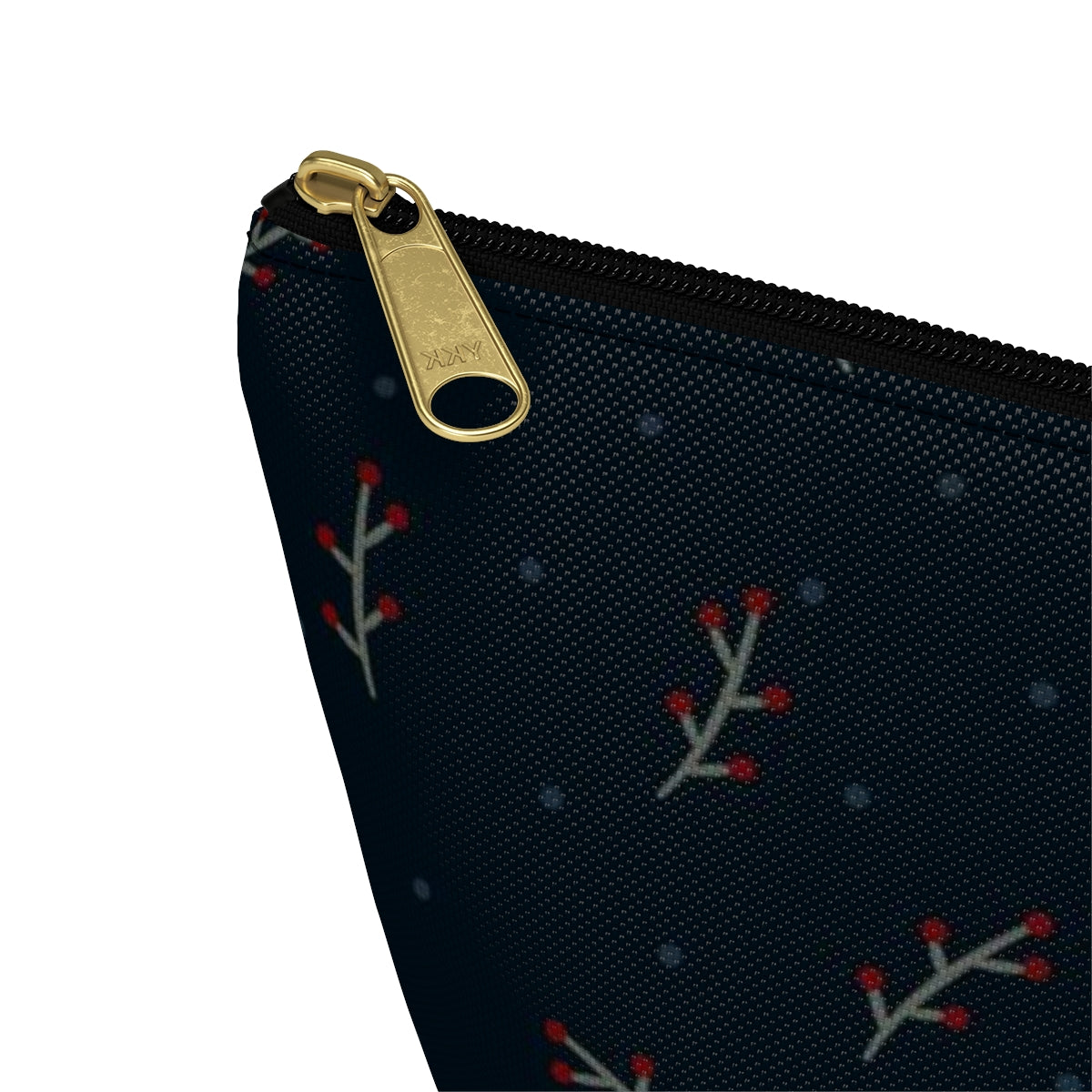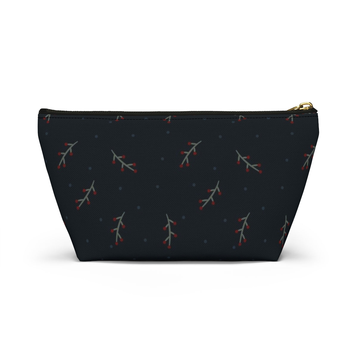 Big Bottom Zipper Pouch - Berry Branches on Navy Background