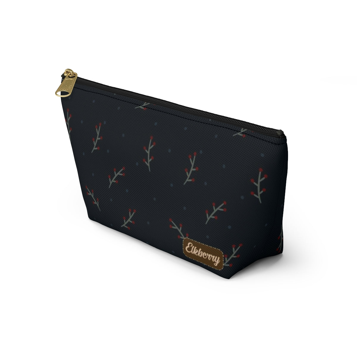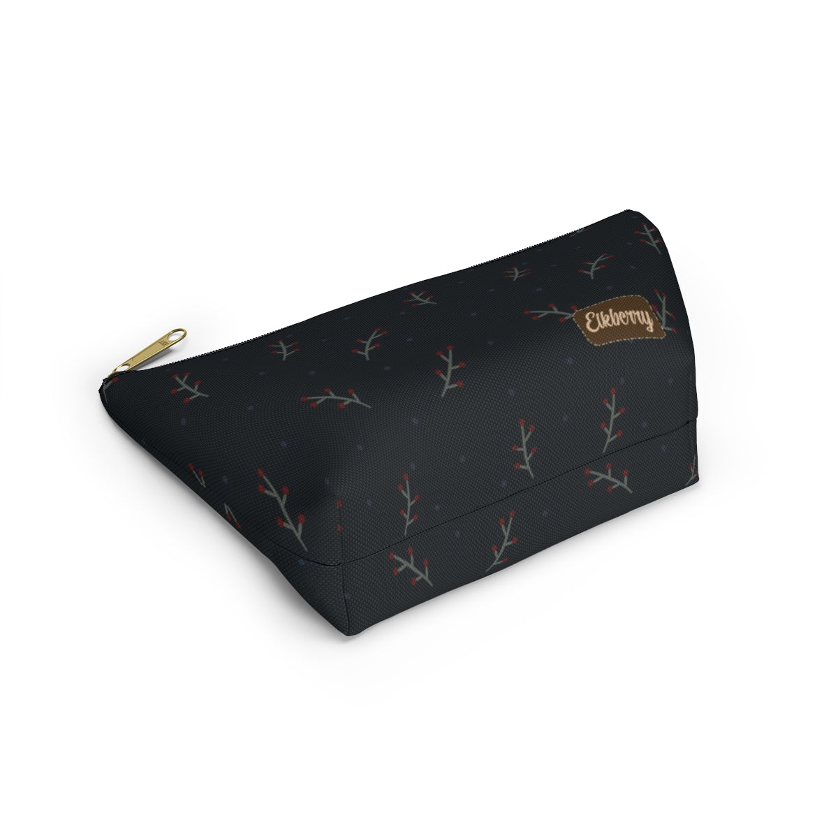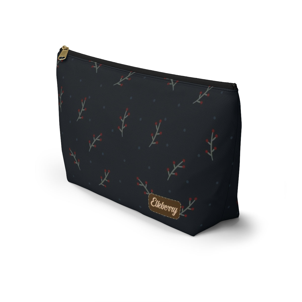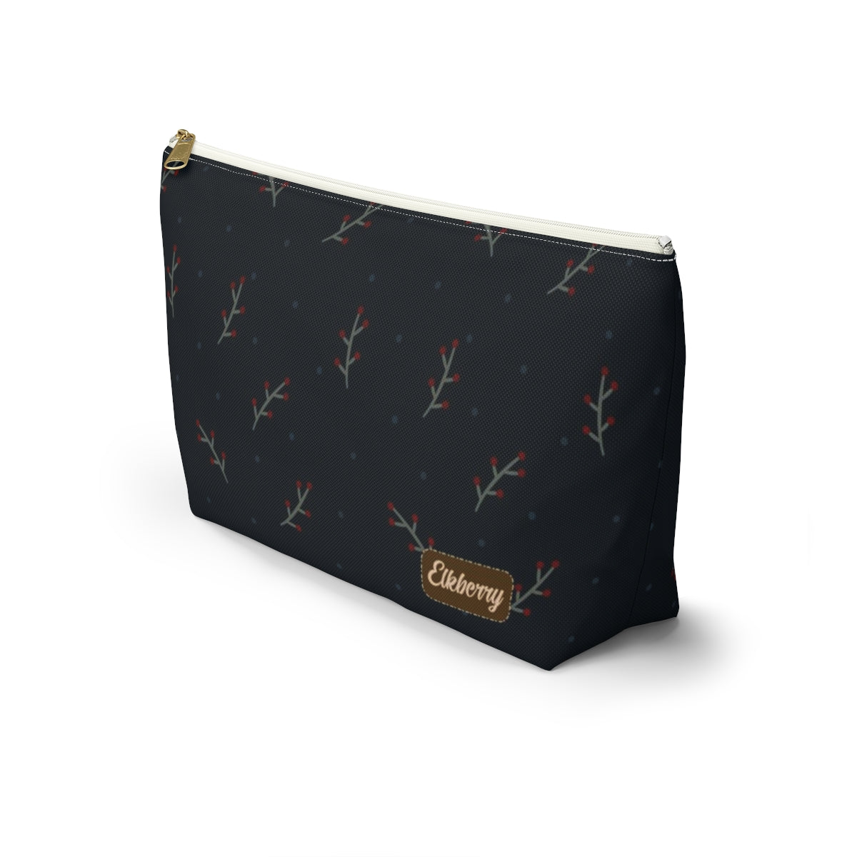 Big Bottom Zipper Pouch - Berry Branches on Navy Background