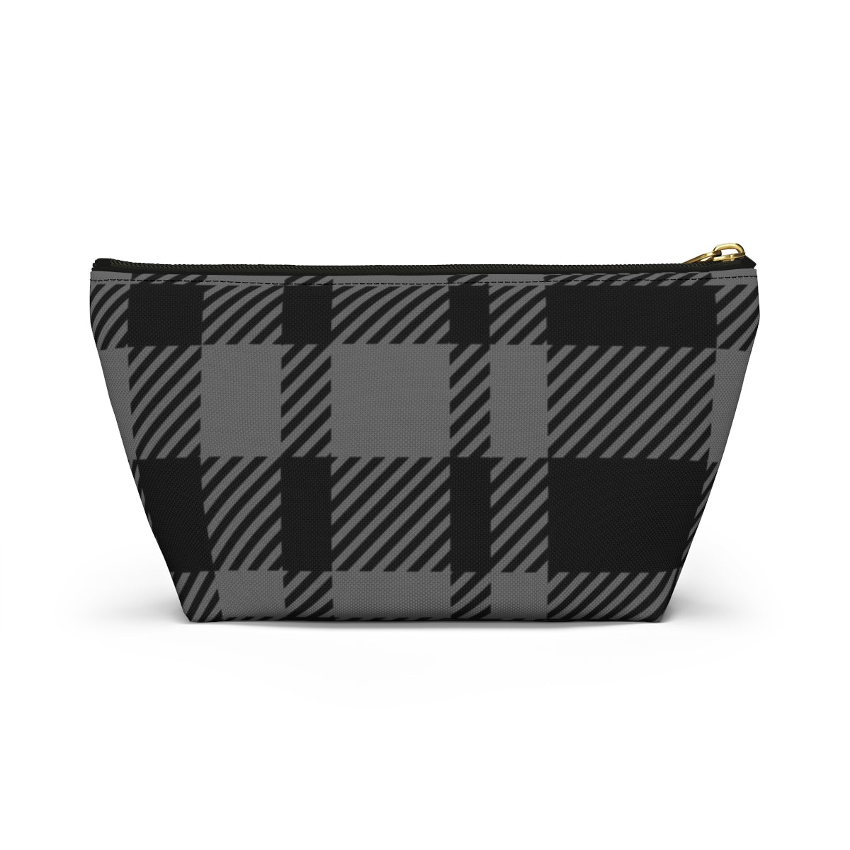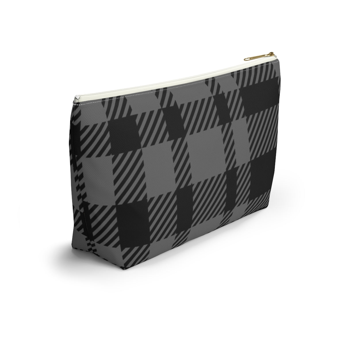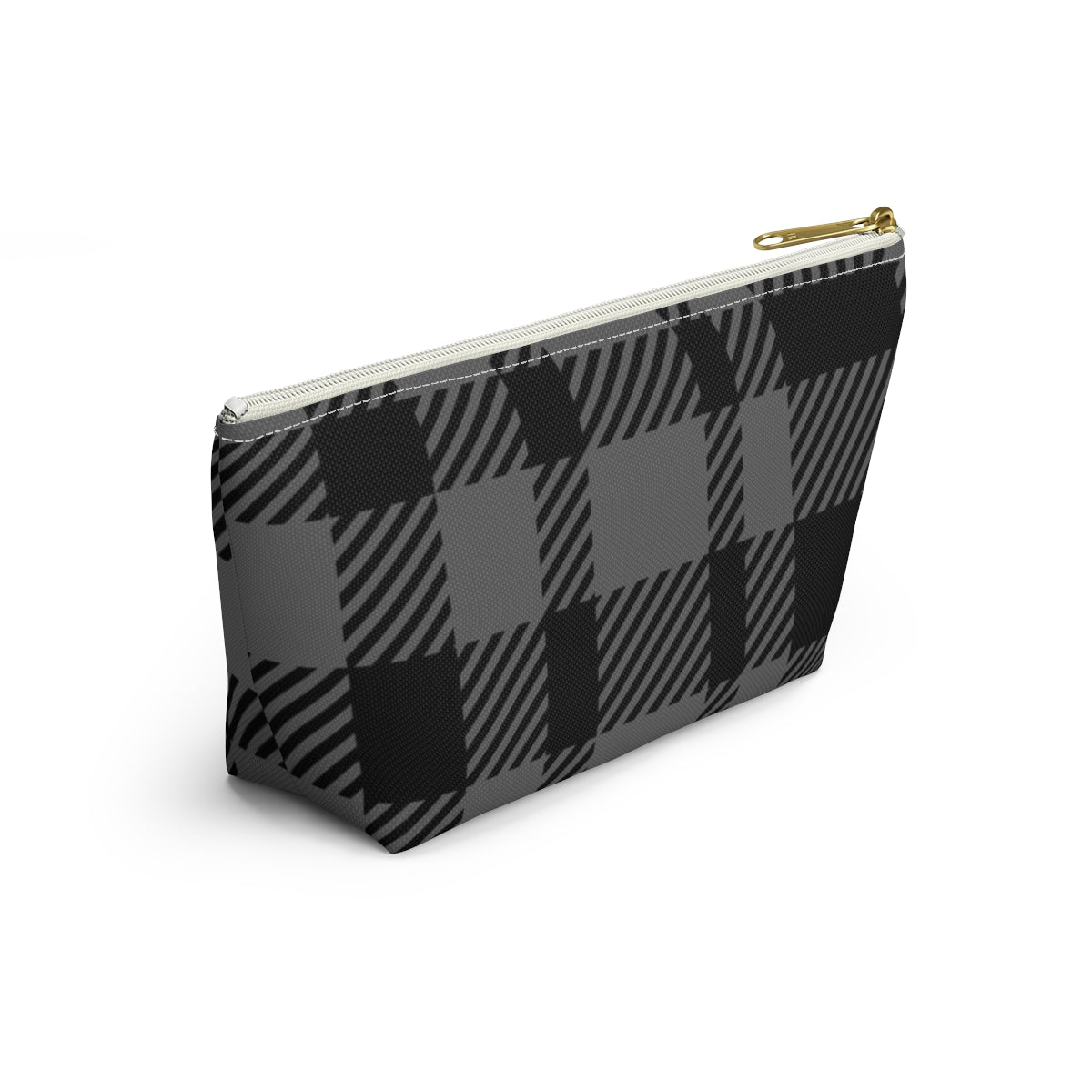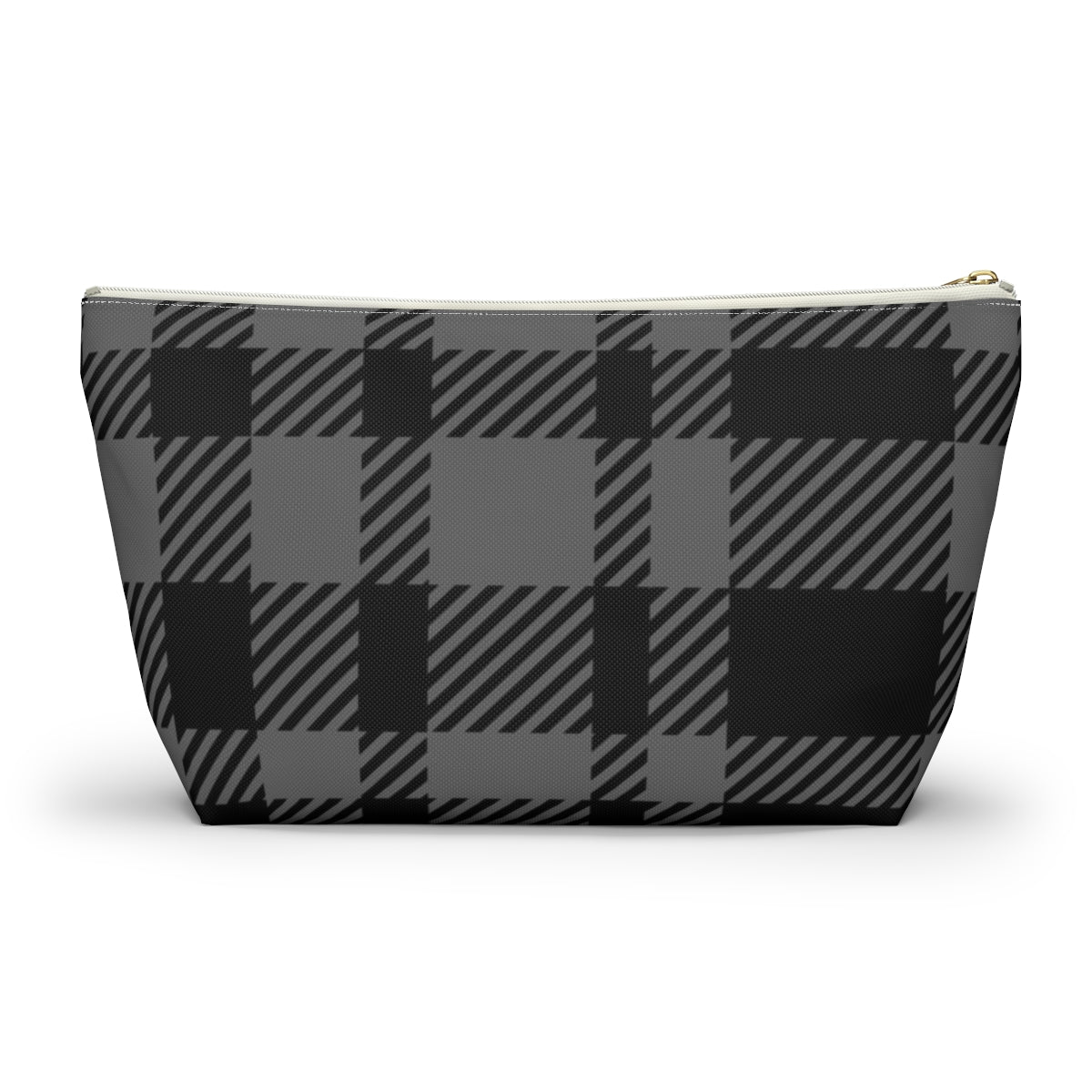 Big Bottom Zipper Pouch - Gray Buffalo Check, Gray Plaid
