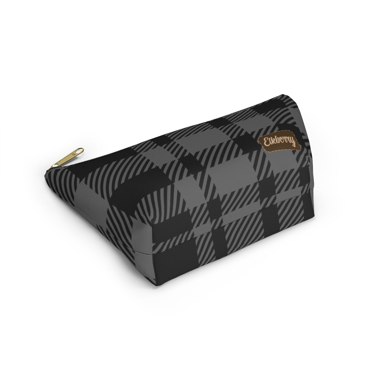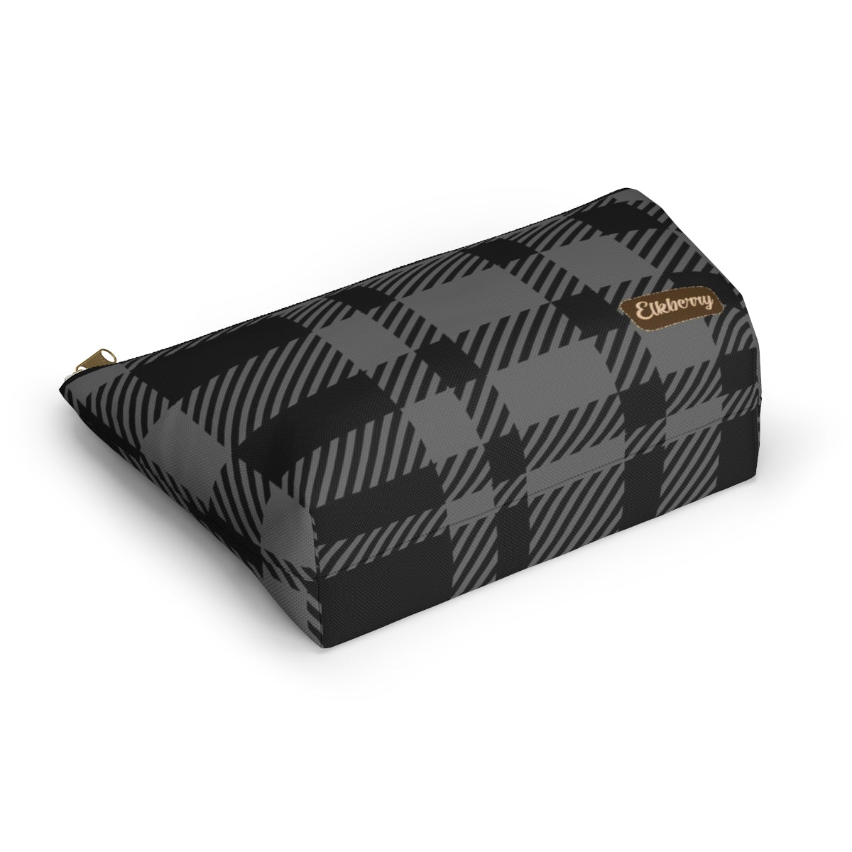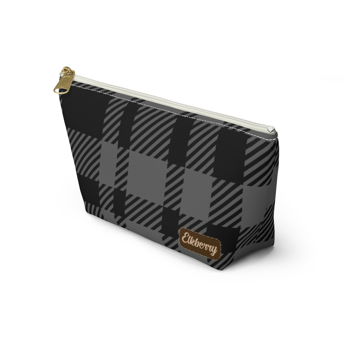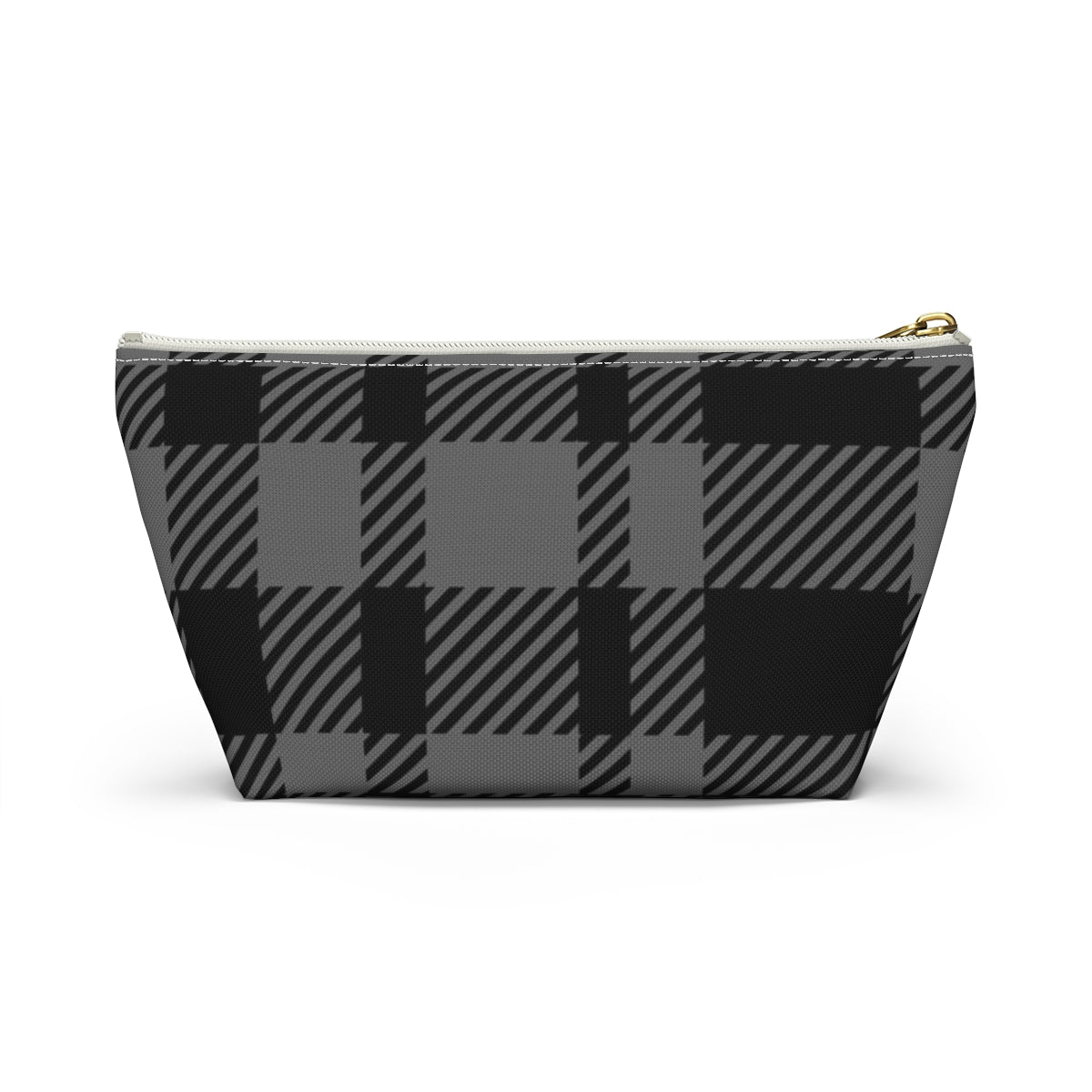 Big Bottom Zipper Pouch - Gray Buffalo Check, Gray Plaid