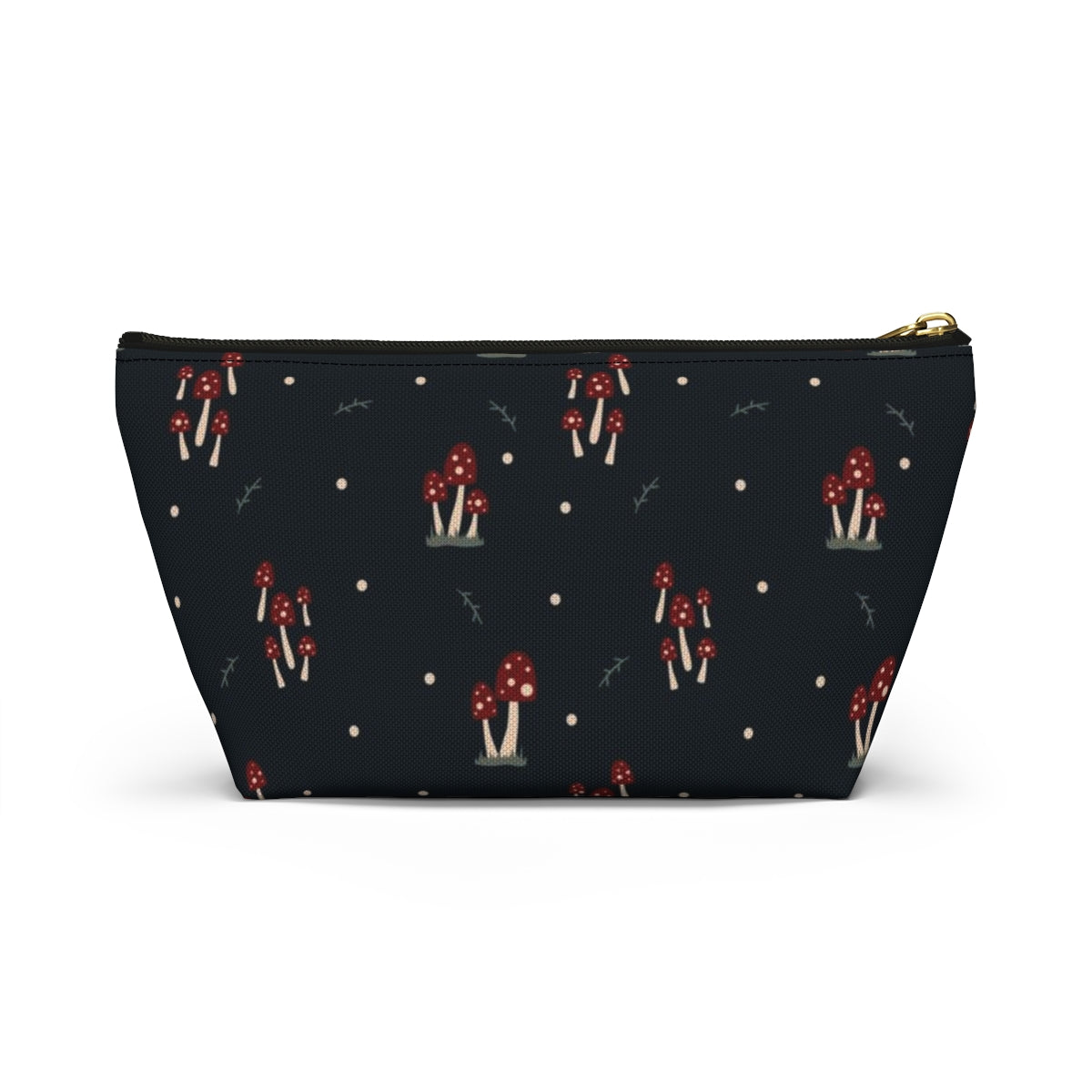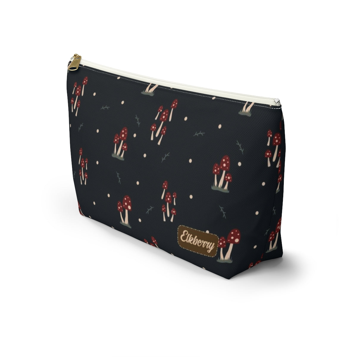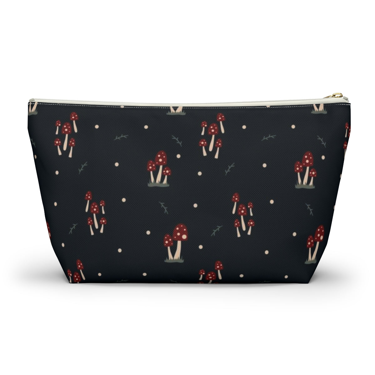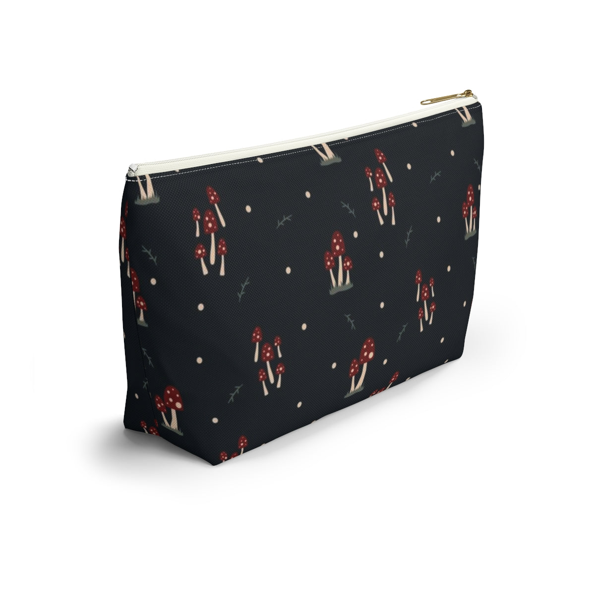 Big Bottom Zipper Pouch - Mushroom Family on Navy