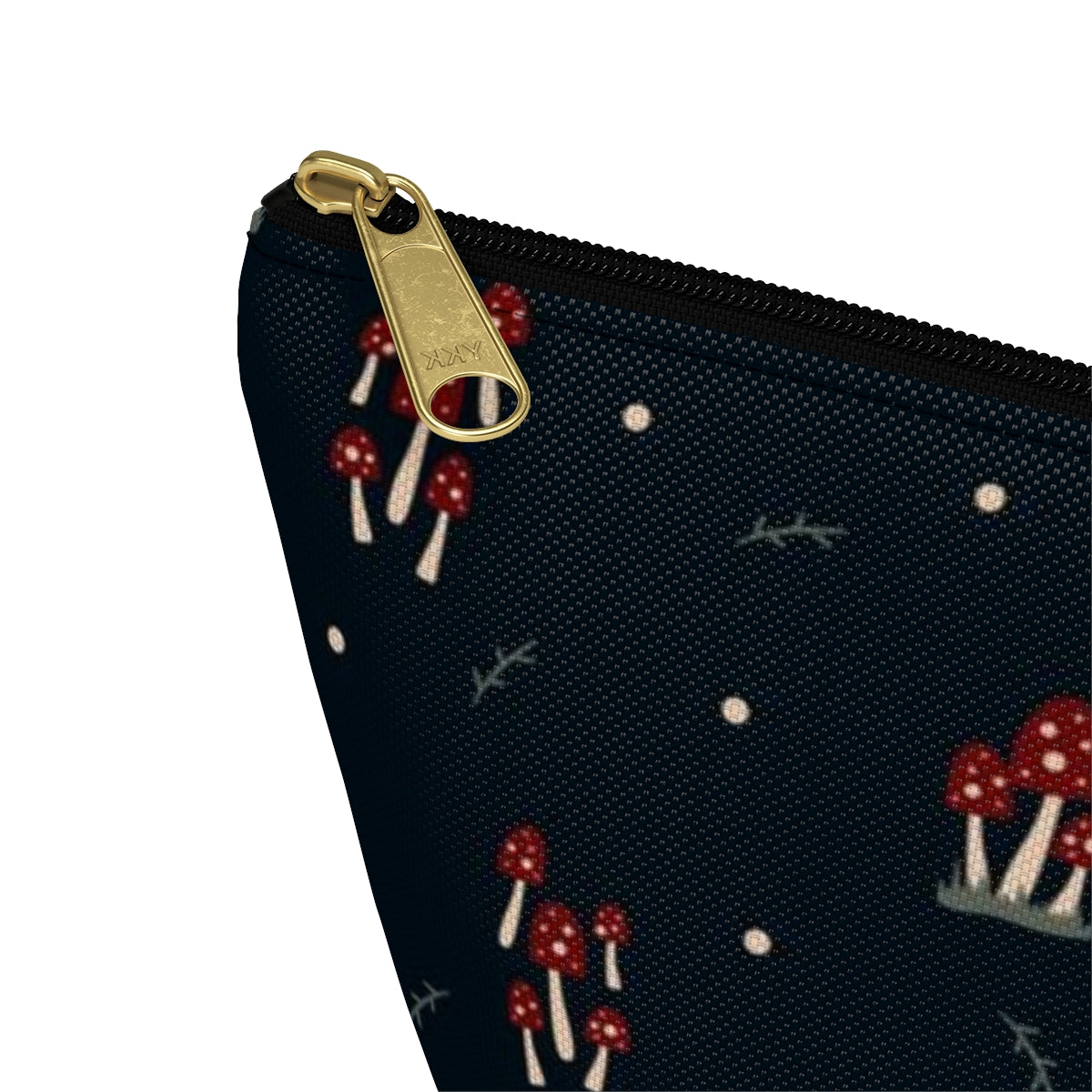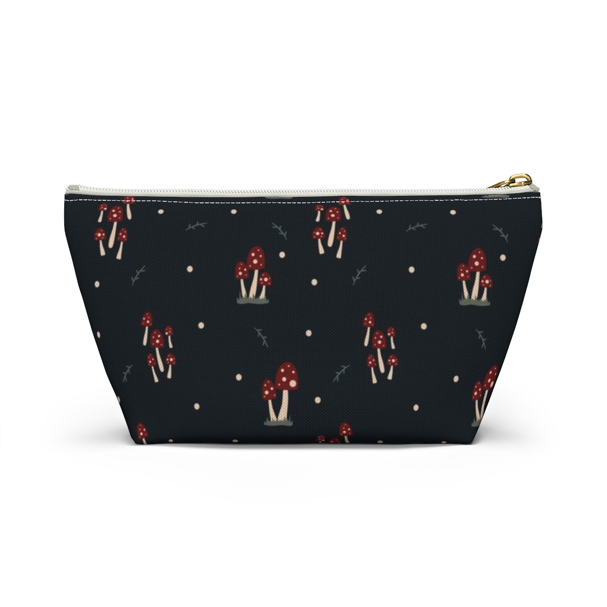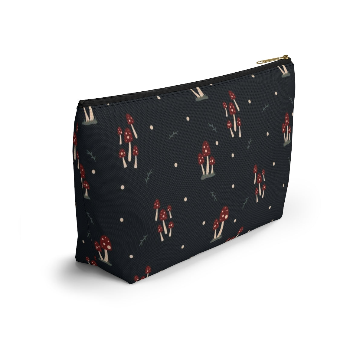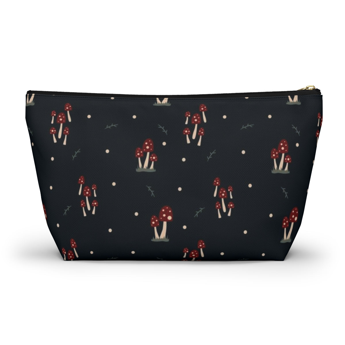 Big Bottom Zipper Pouch - Mushroom Family on Navy