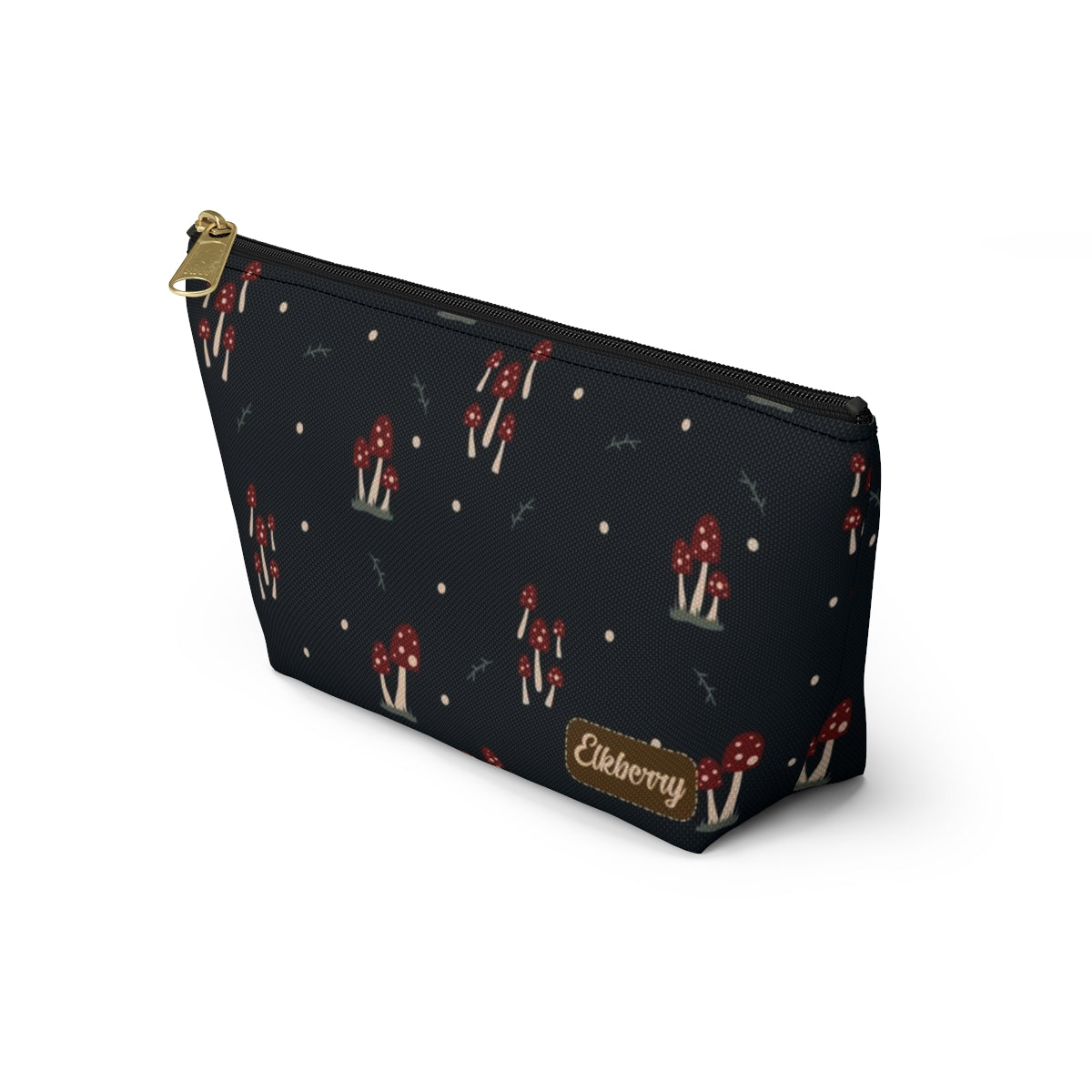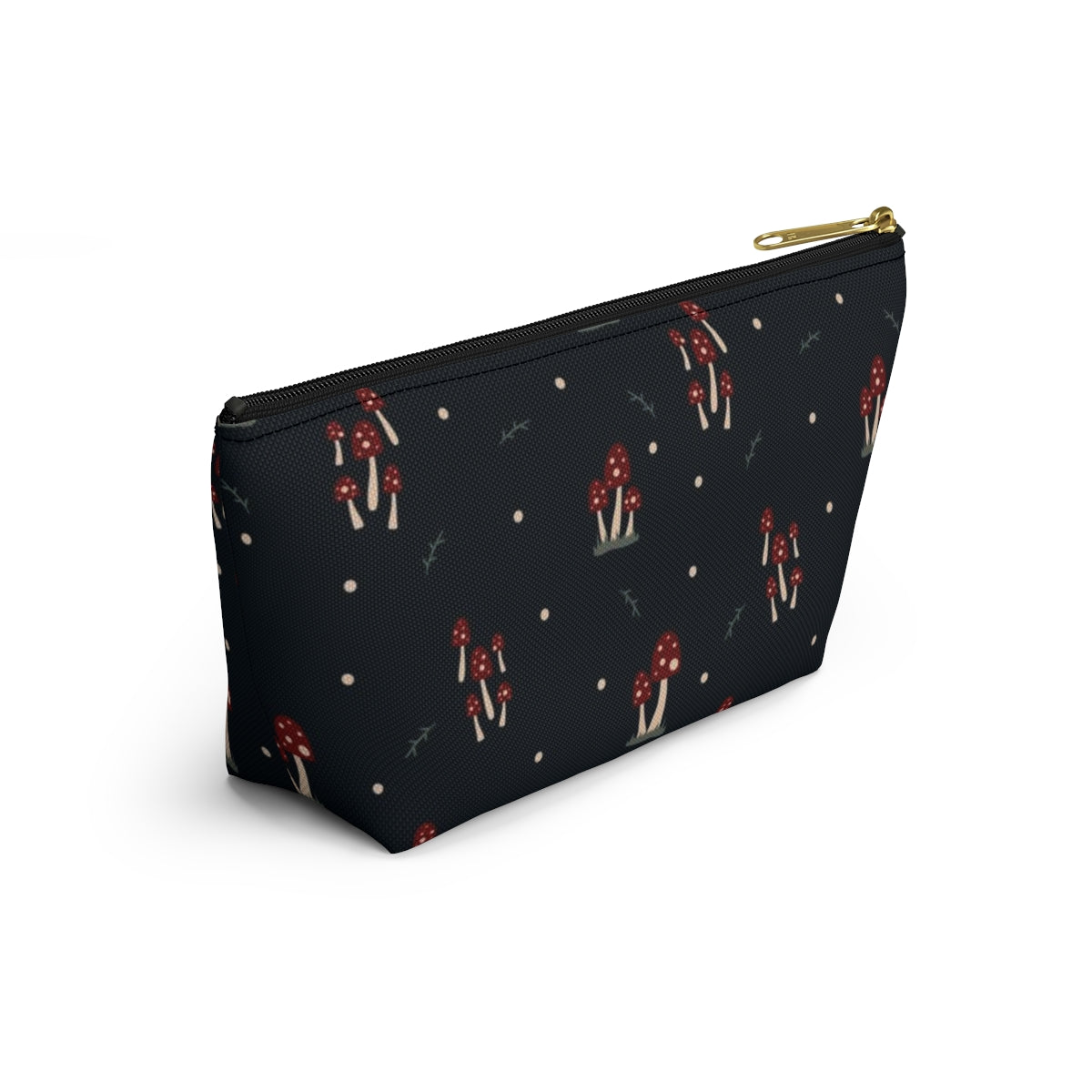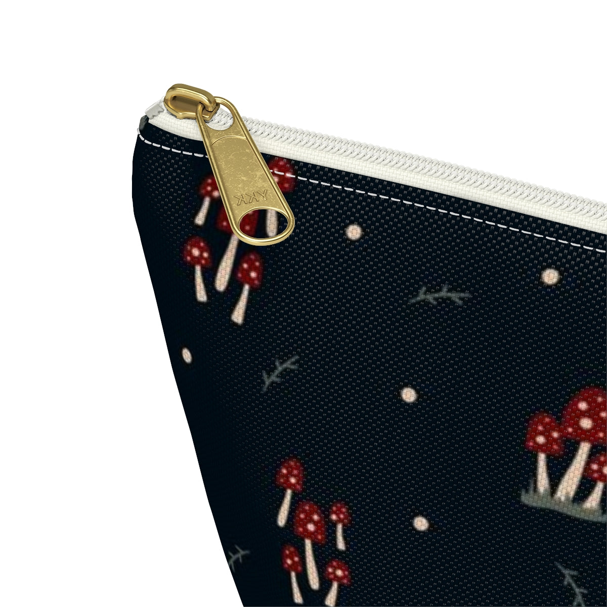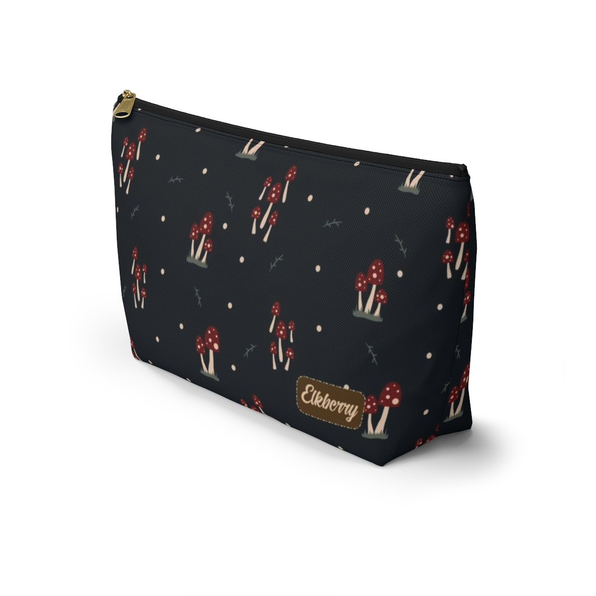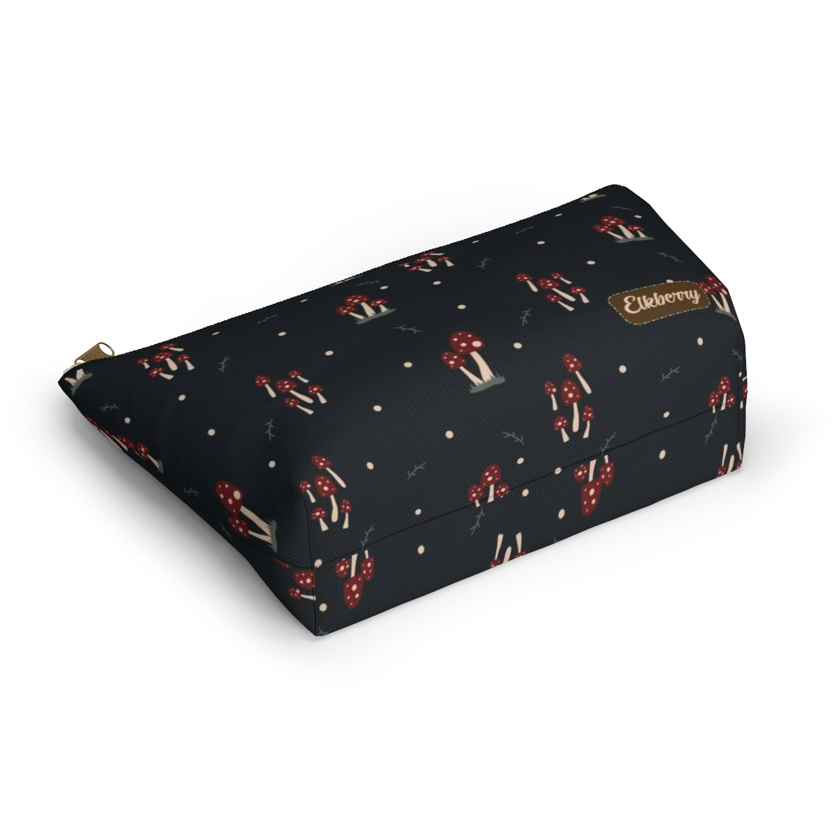 Big Bottom Zipper Pouch - Mushroom Family on Navy