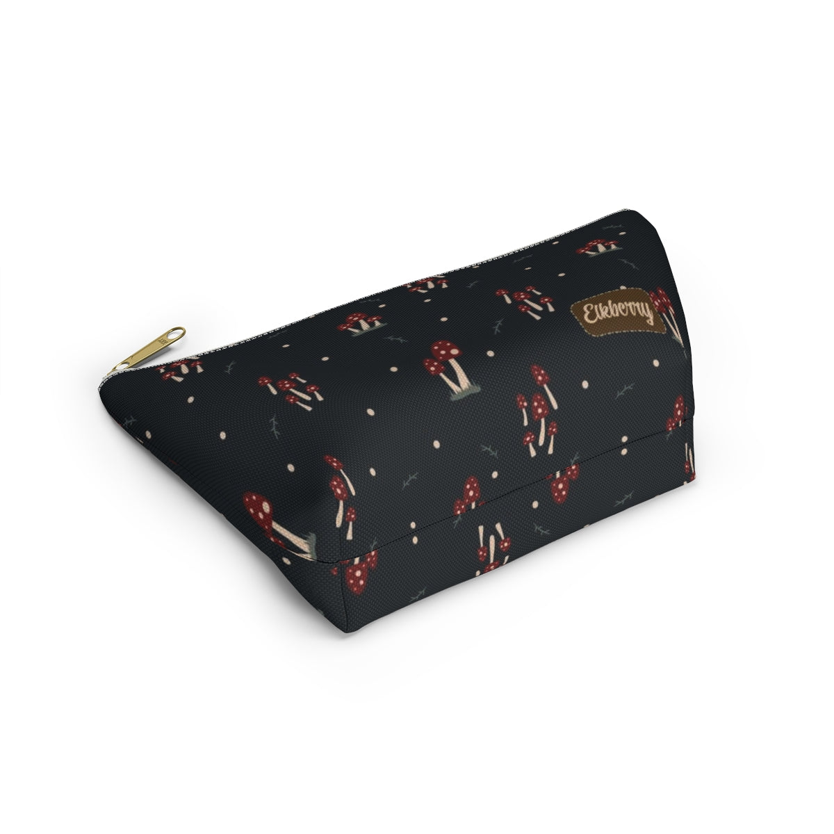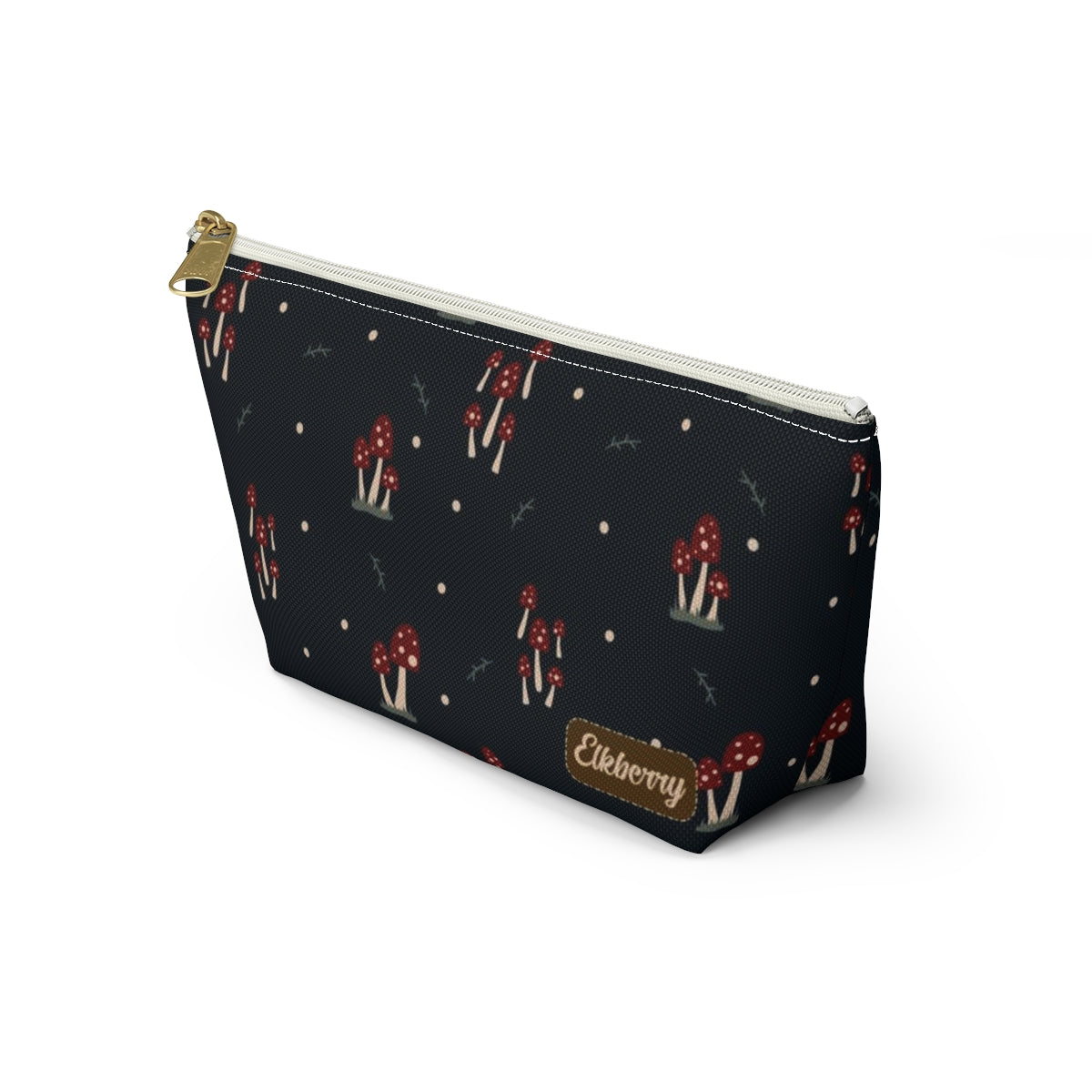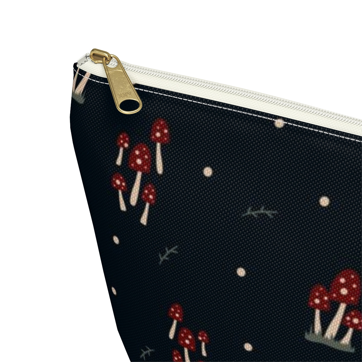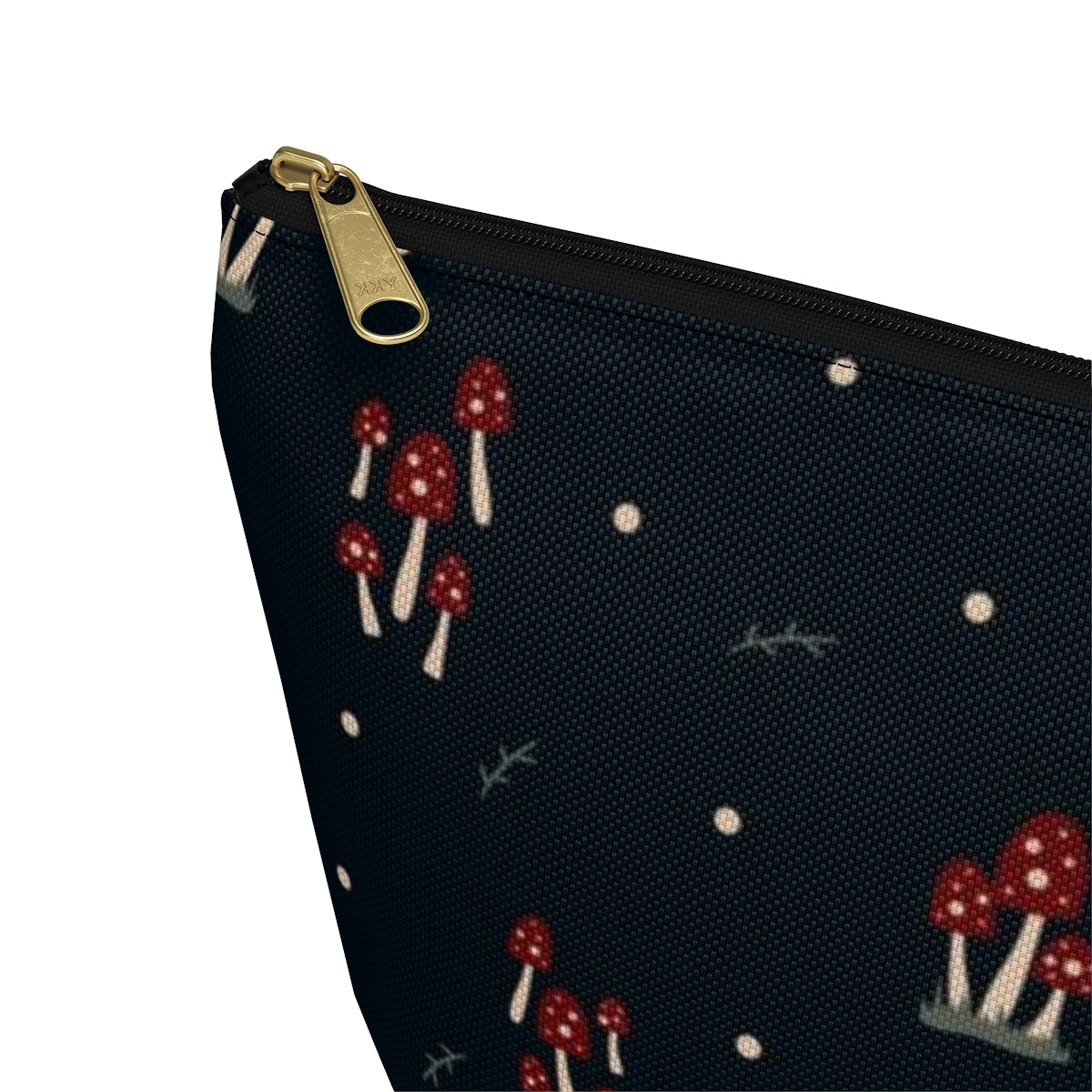 Big Bottom Zipper Pouch - Mushroom Family on Navy