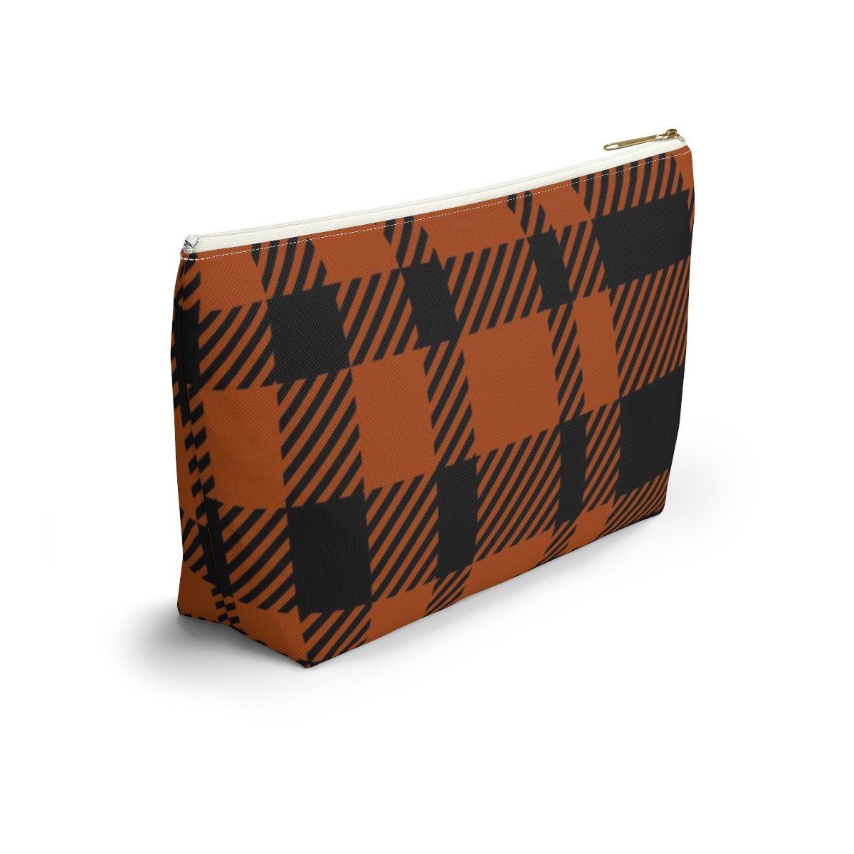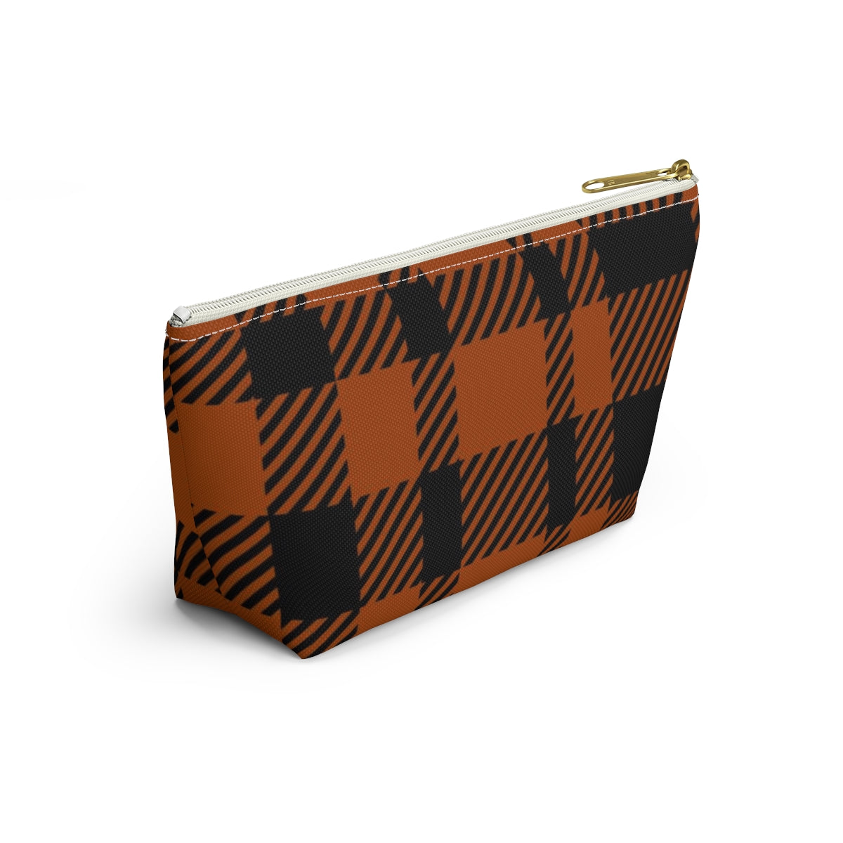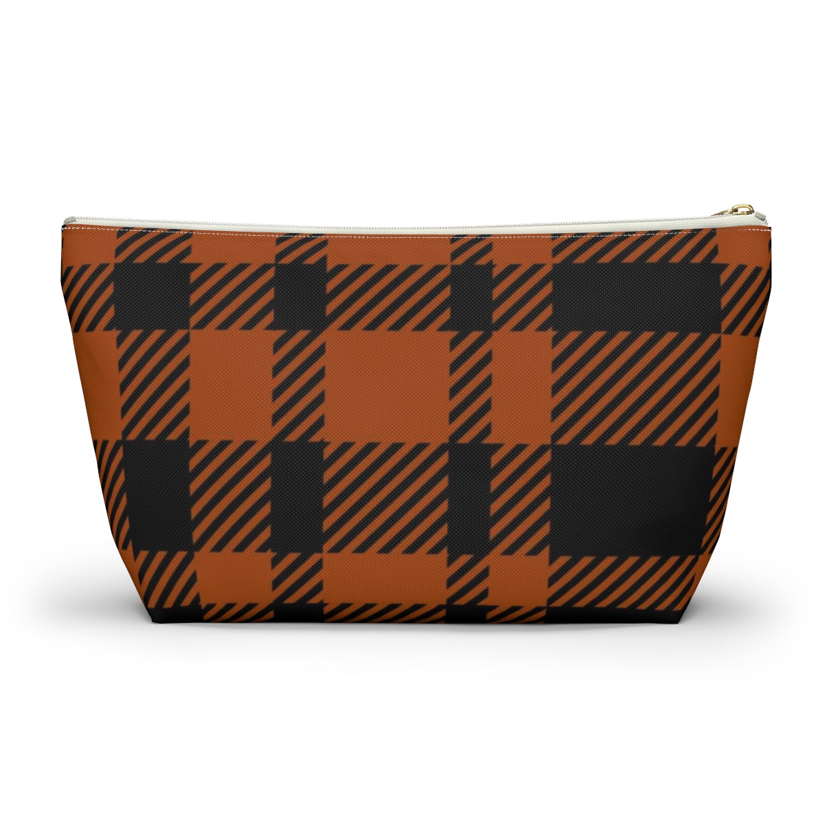Big Bottom Zipper Pouch - Orange Buffalo Check, Orange Plaid