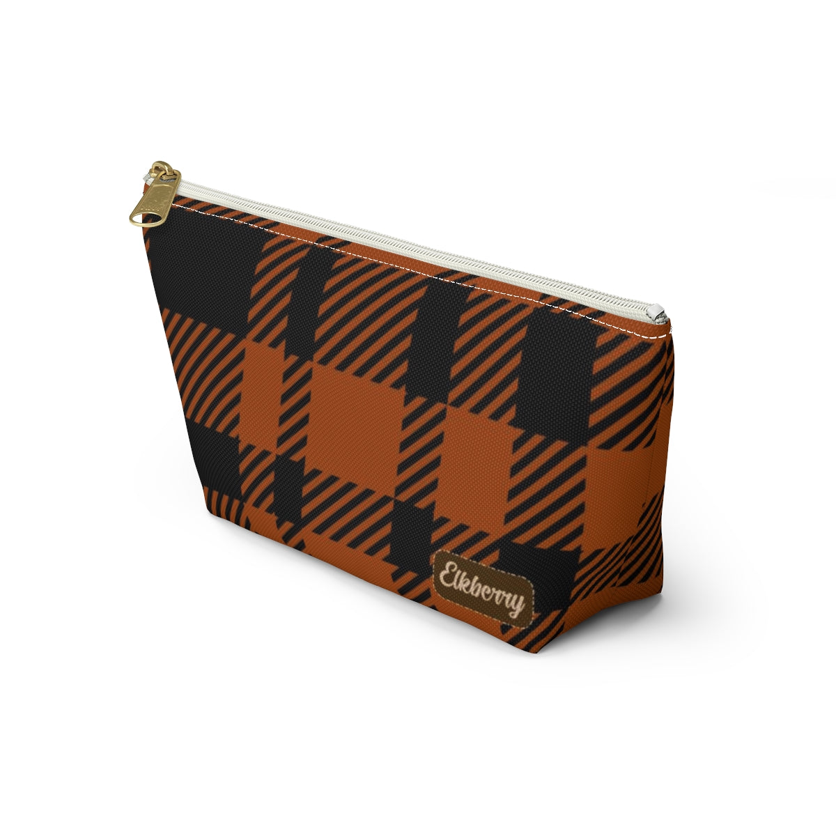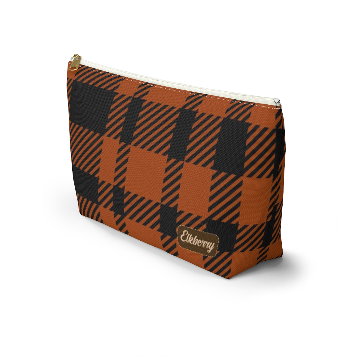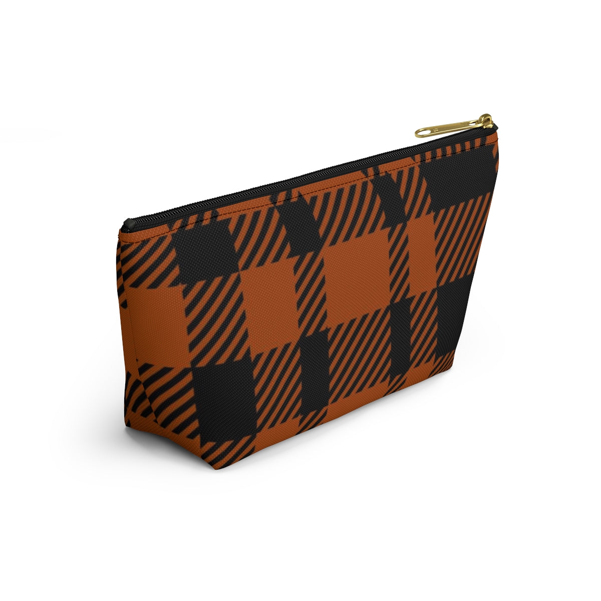 Big Bottom Zipper Pouch - Orange Buffalo Check, Orange Plaid