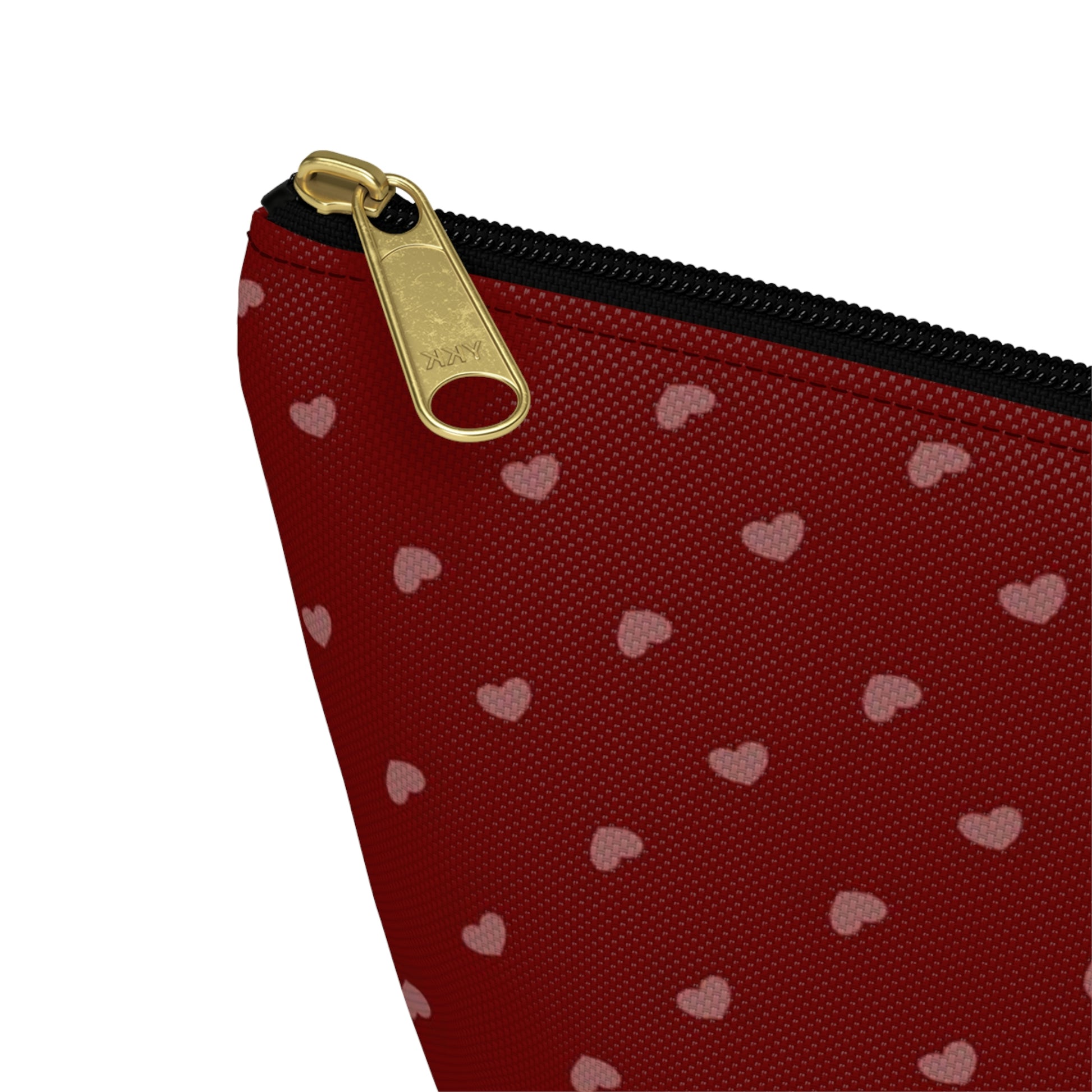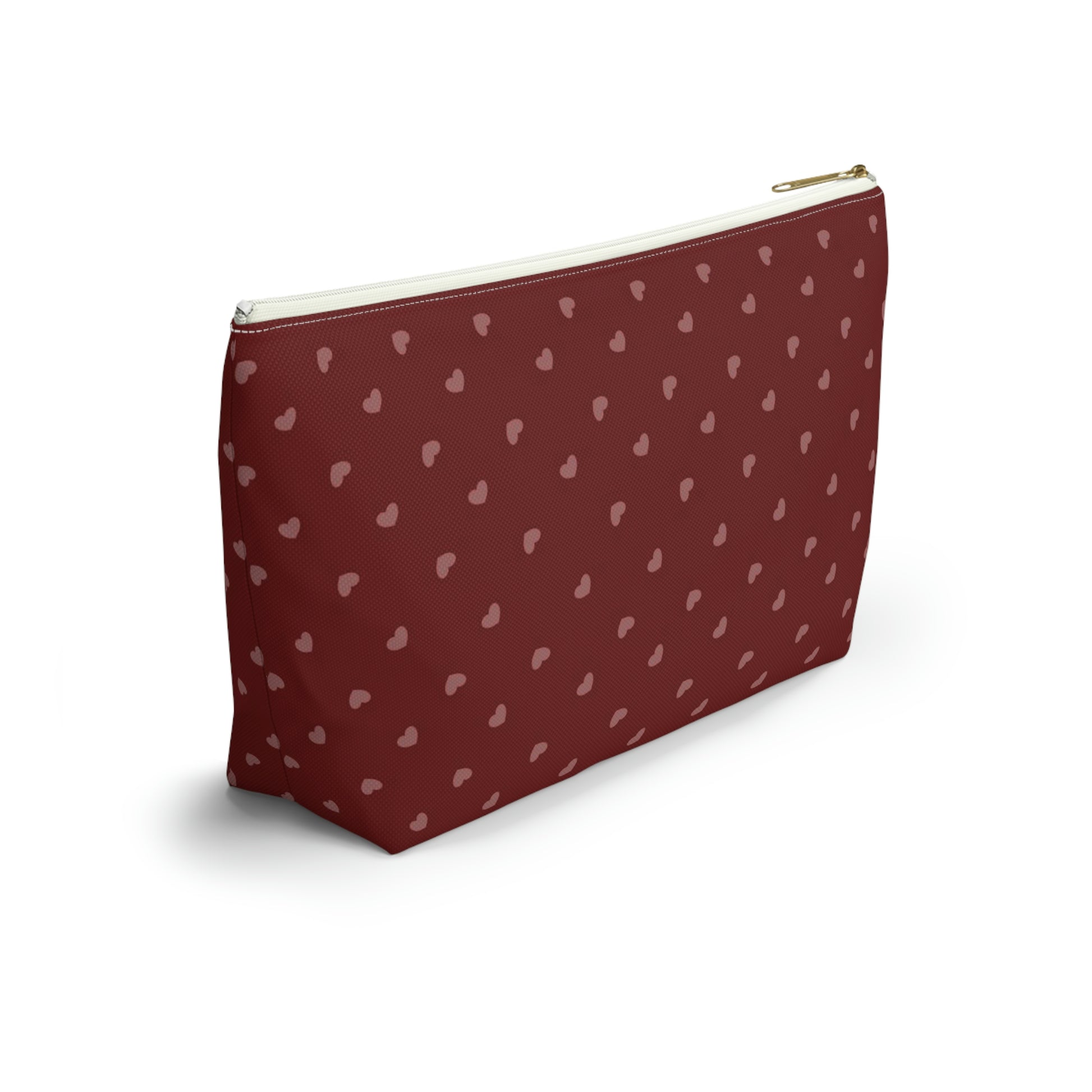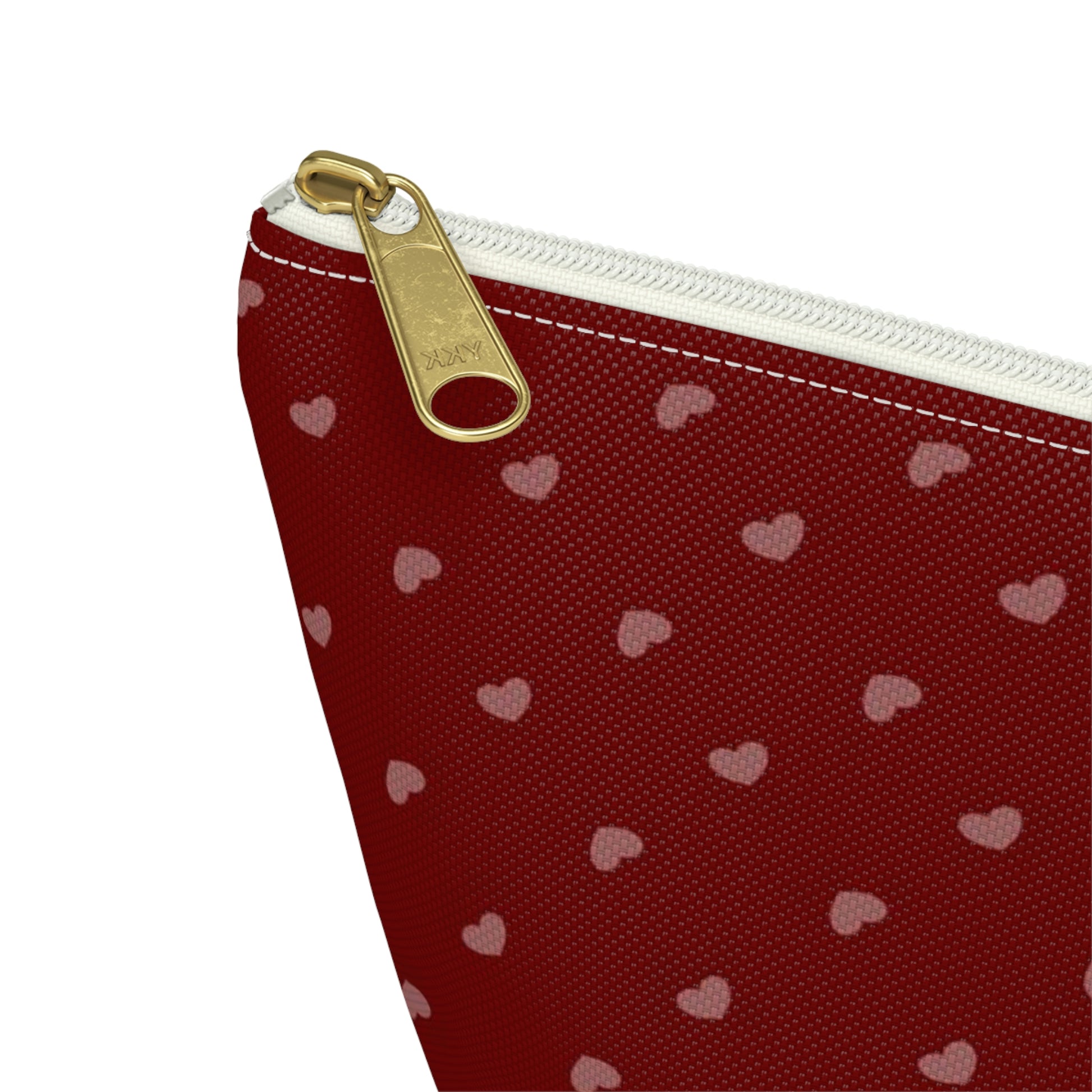 Big Bottom Zipper Pouch - Hearts on Red
