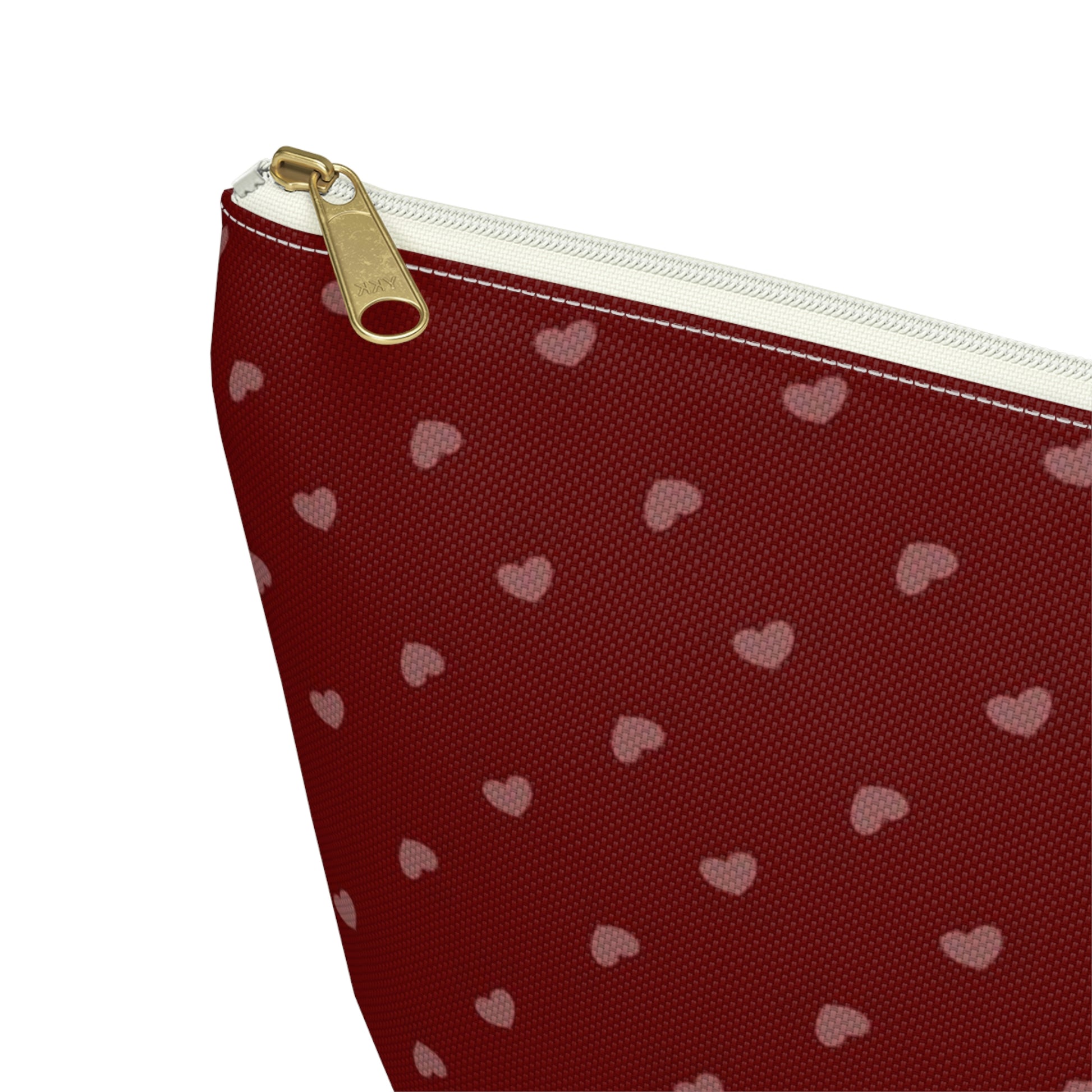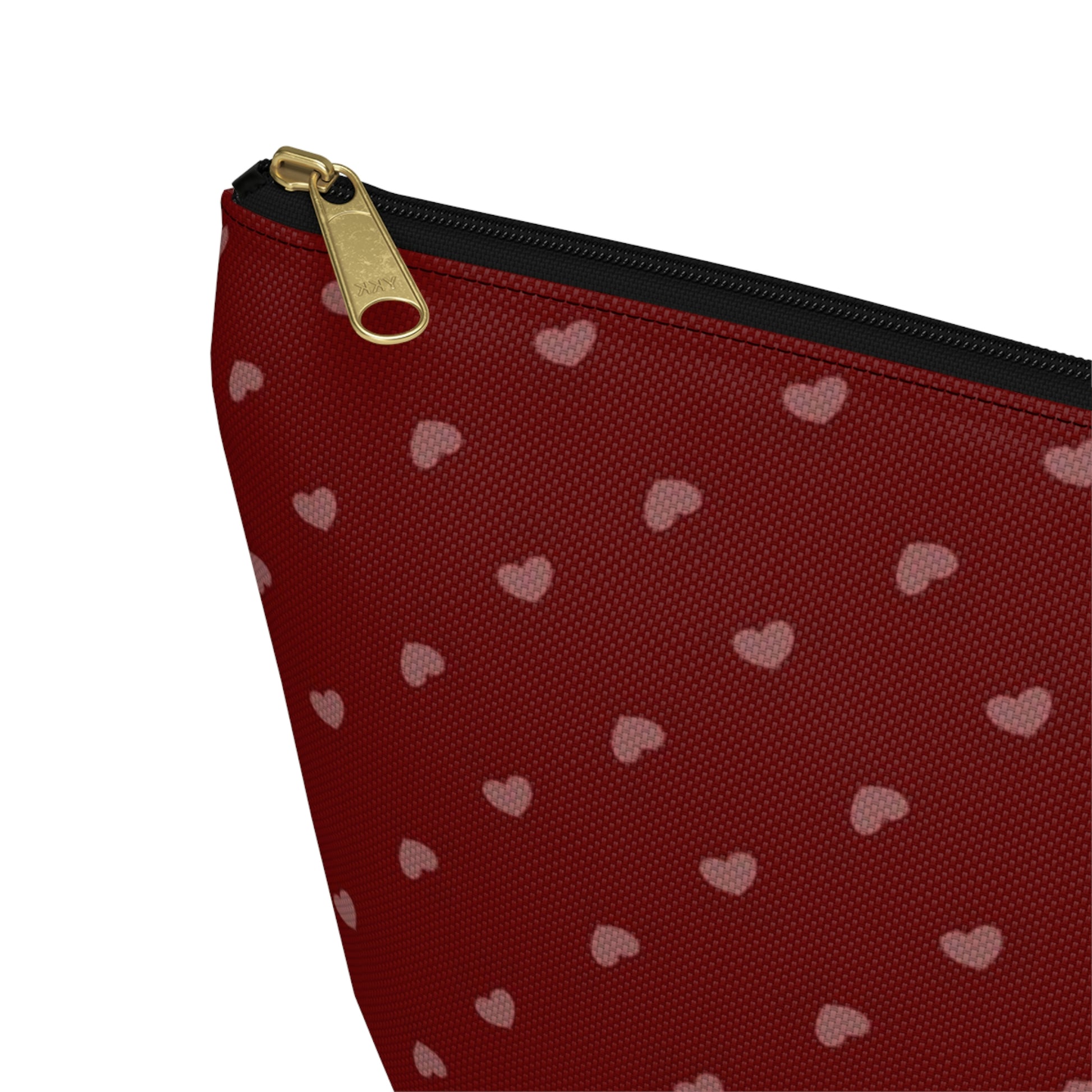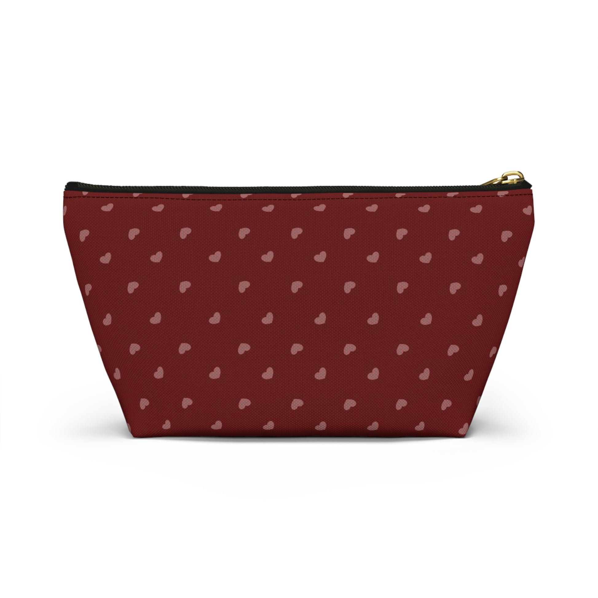 Big Bottom Zipper Pouch - Hearts on Red