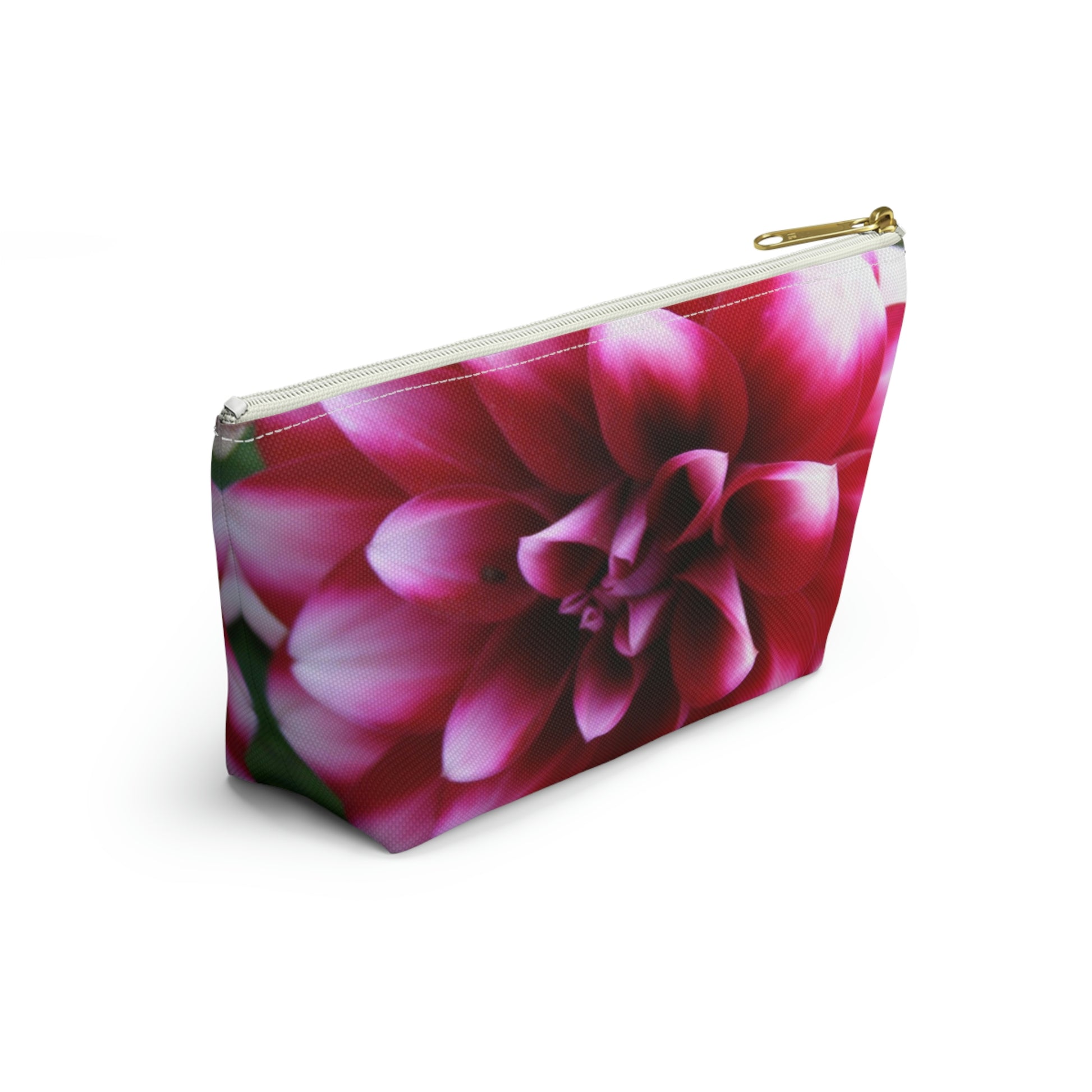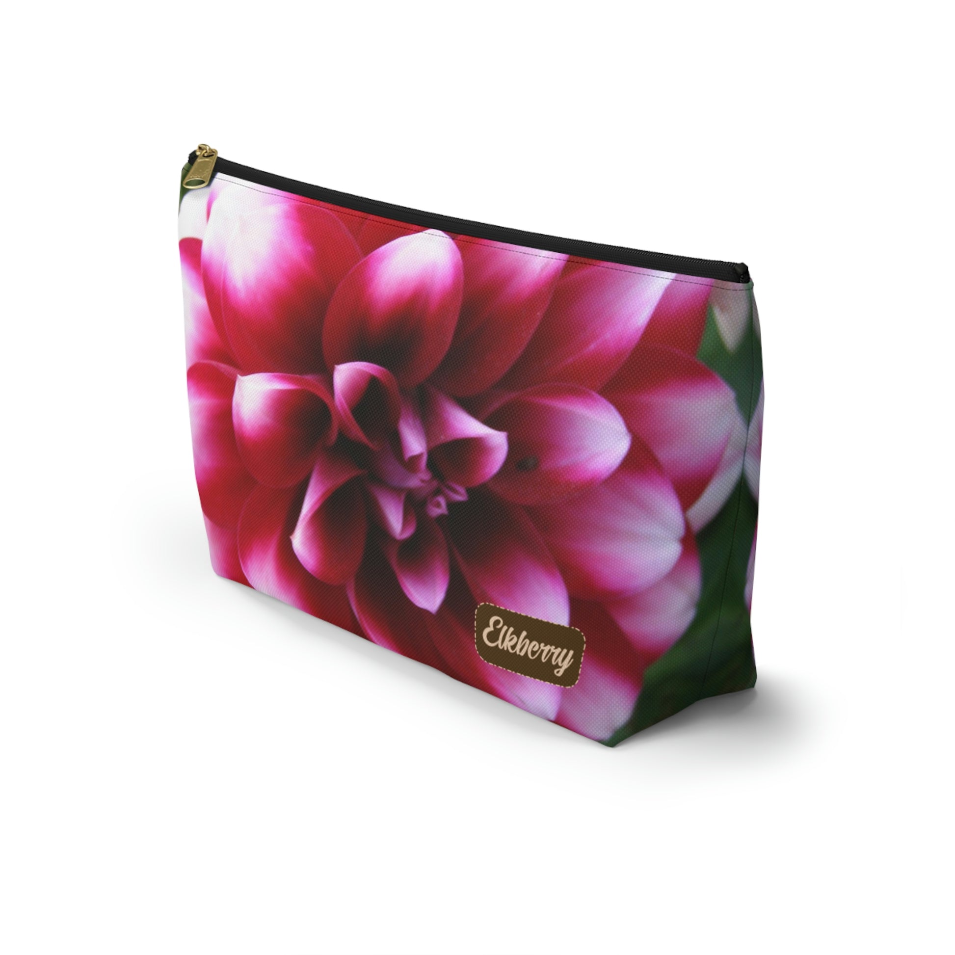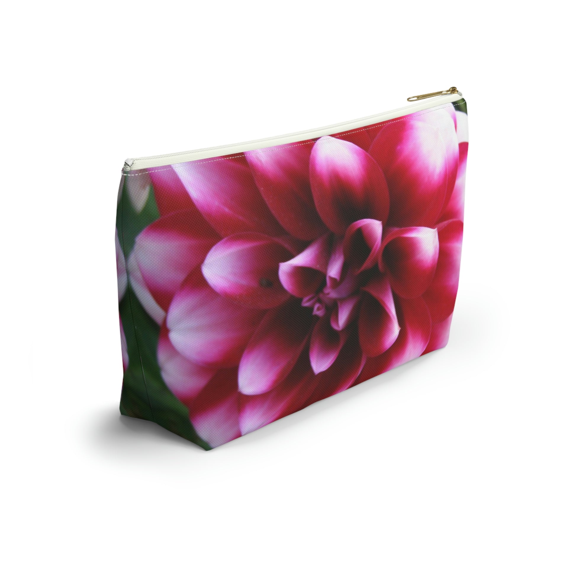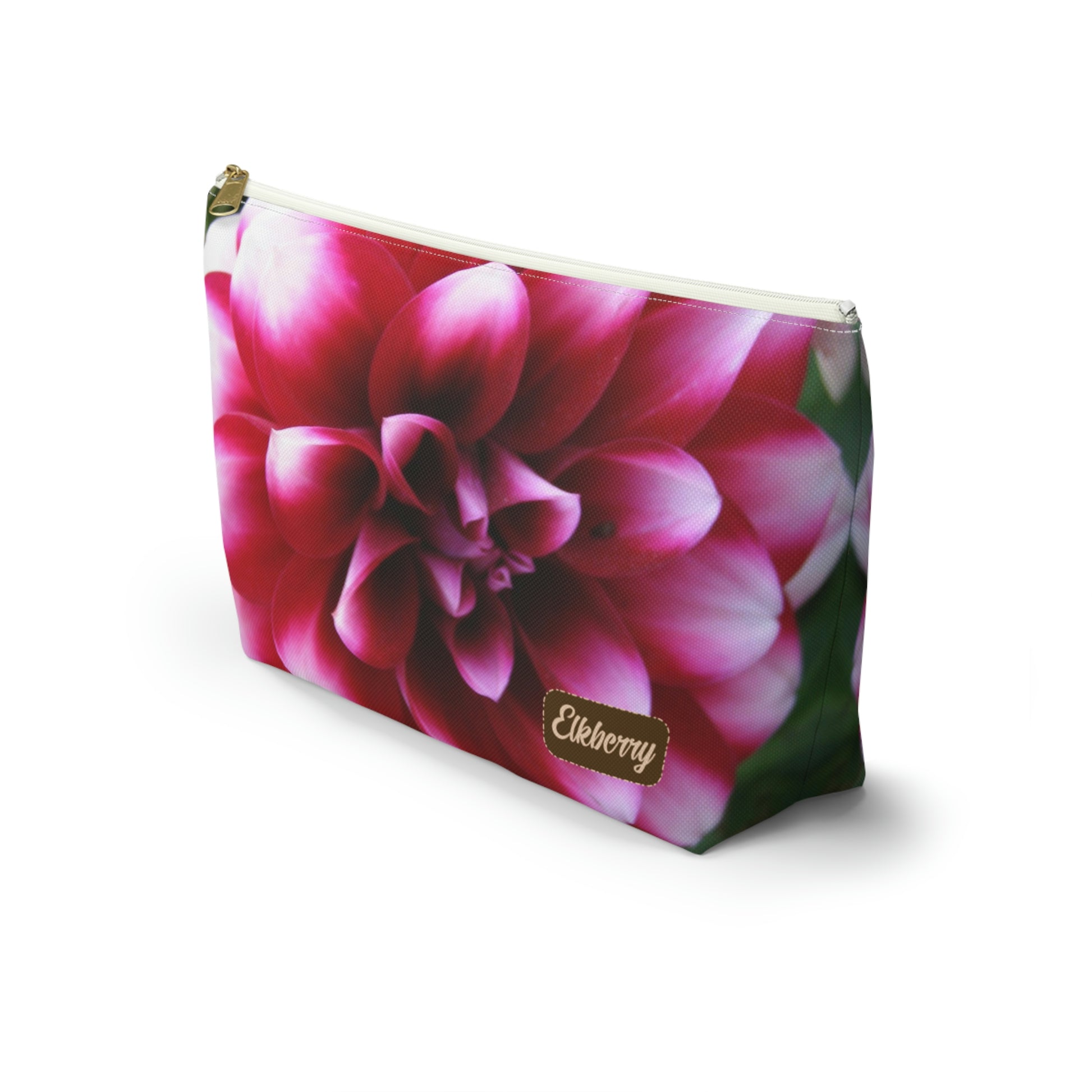 Big Bottom Zipper Pouch - Pink & White Dahlia