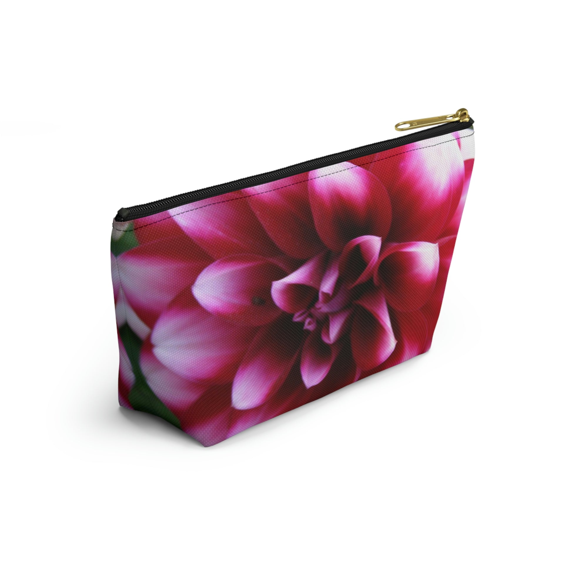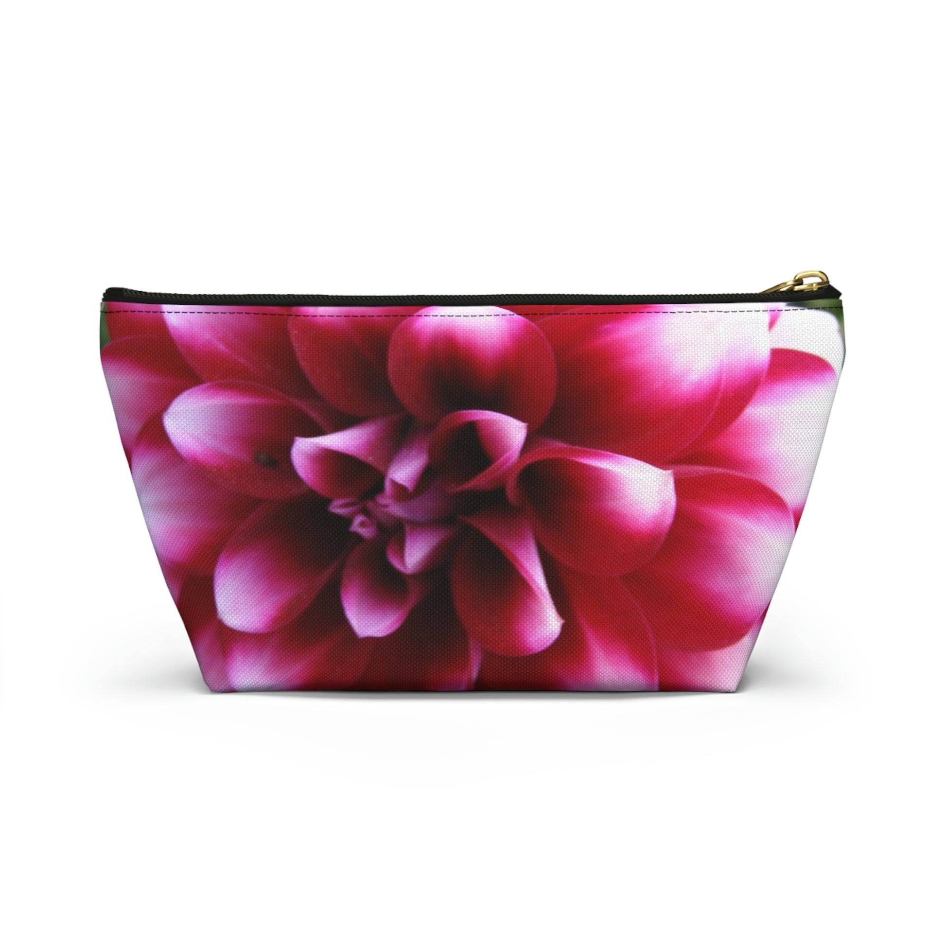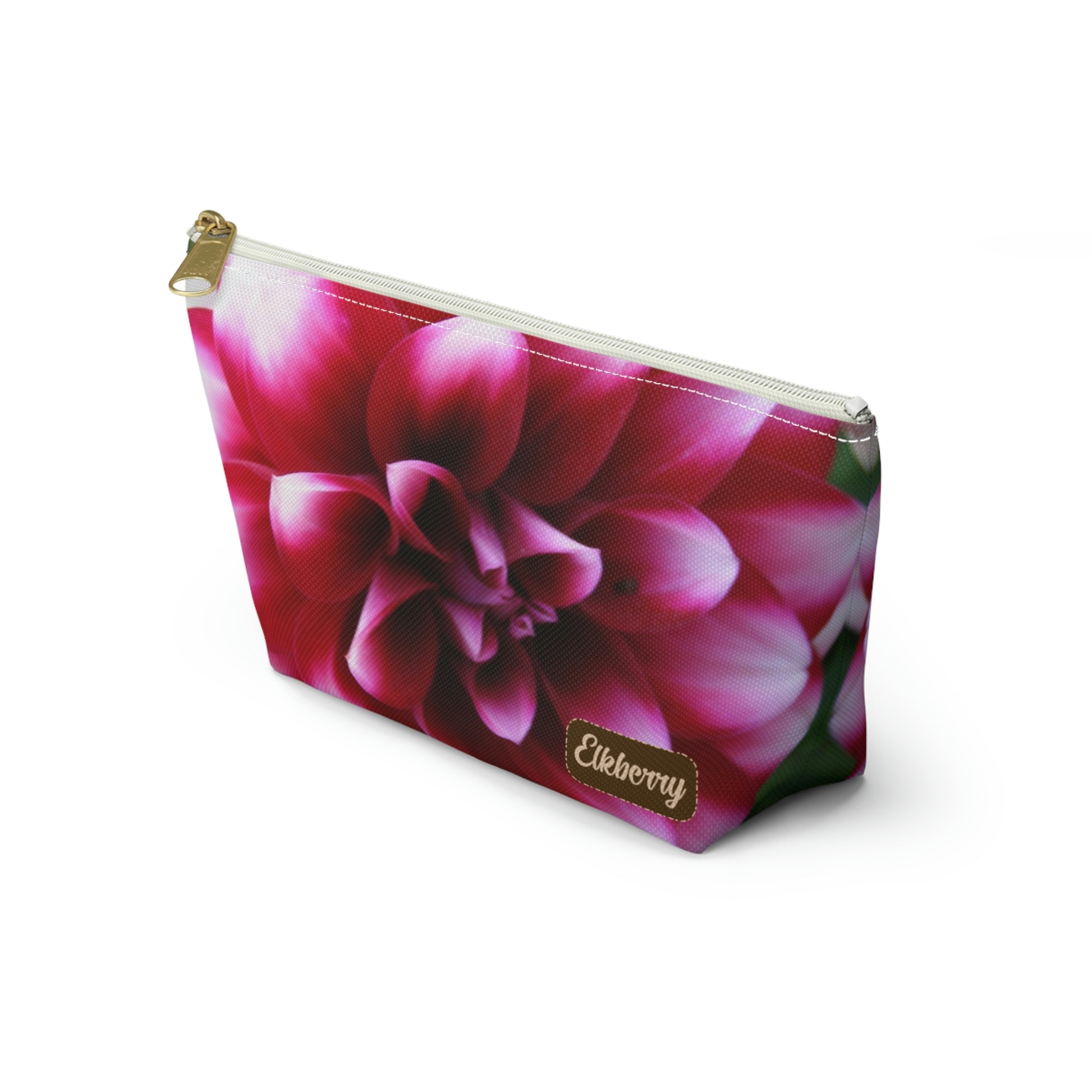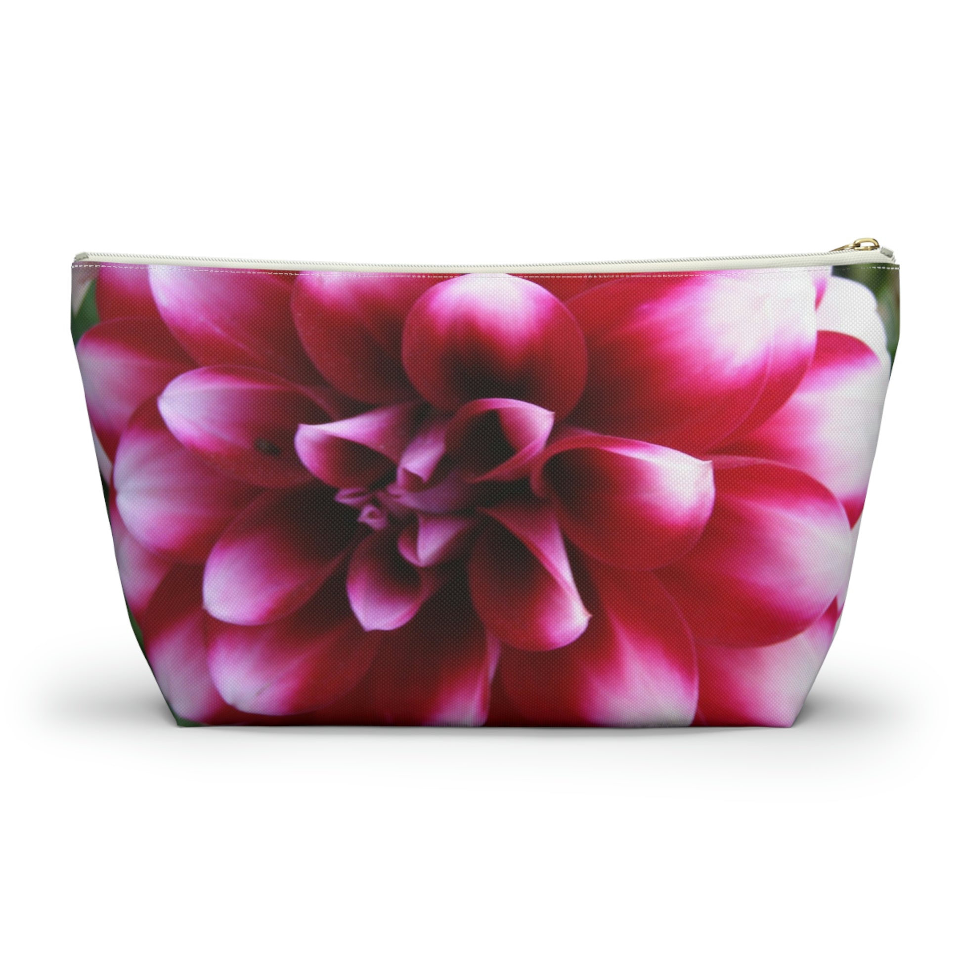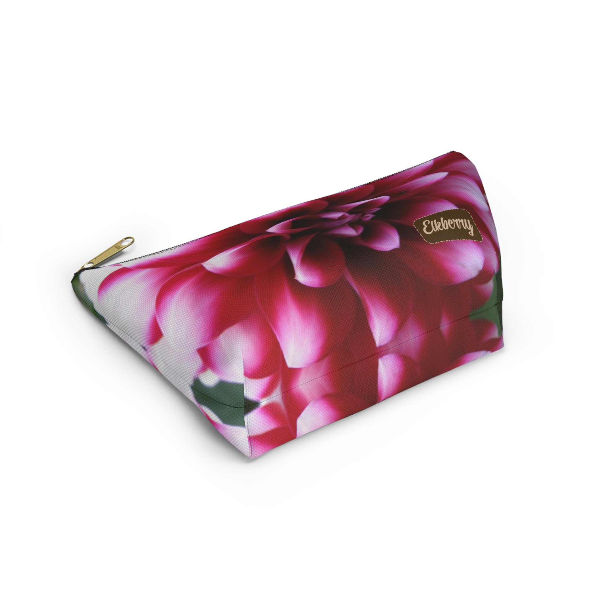 Big Bottom Zipper Pouch - Pink & White Dahlia