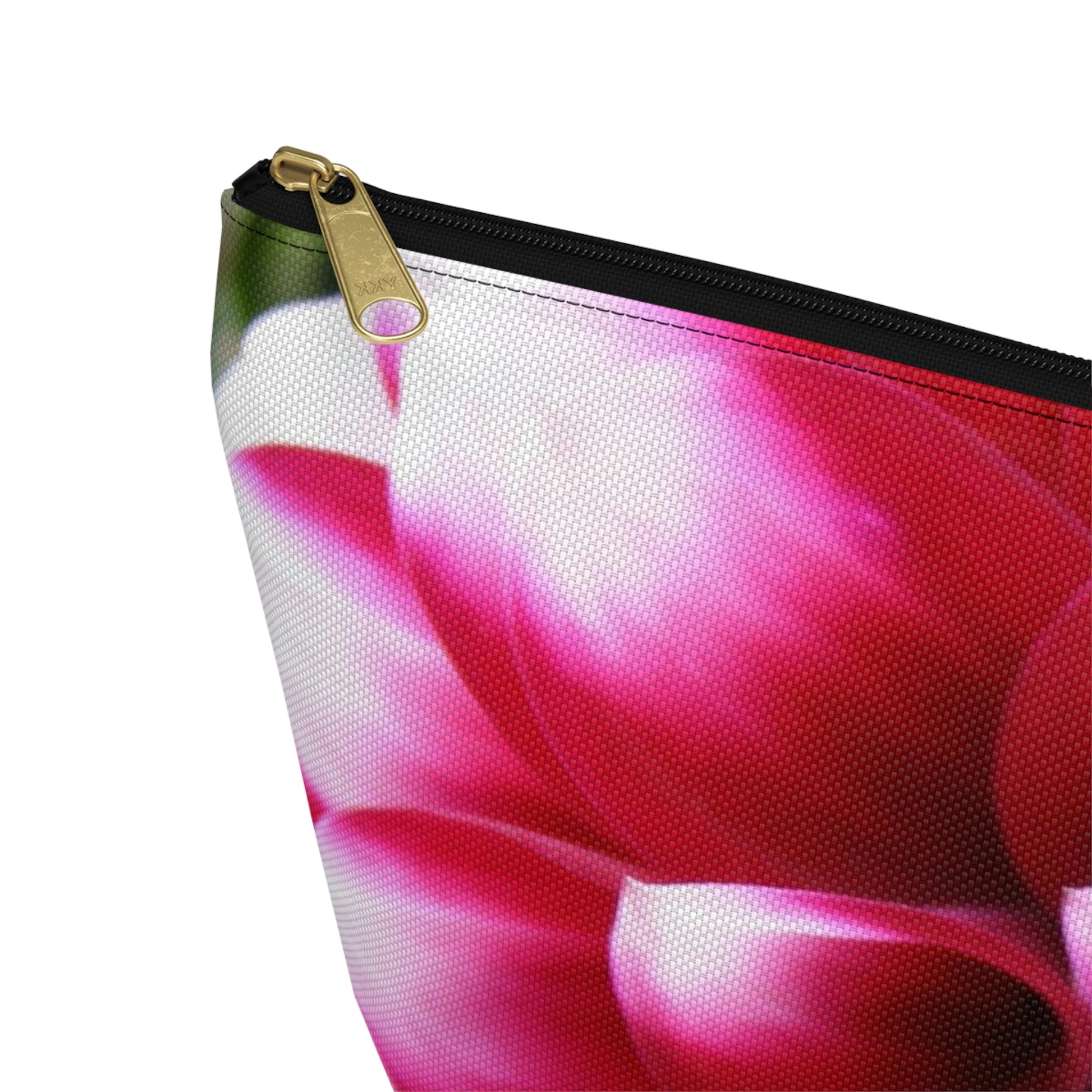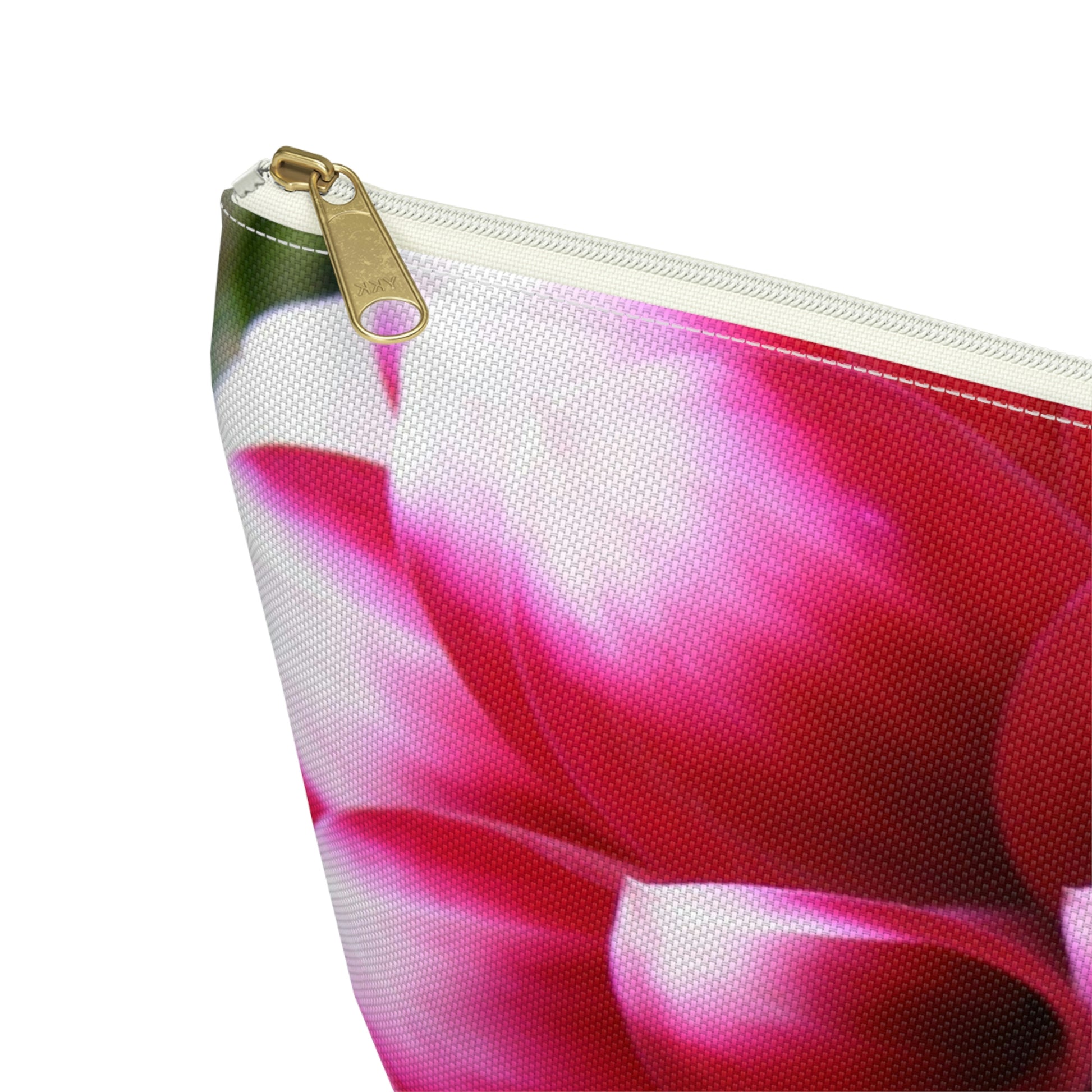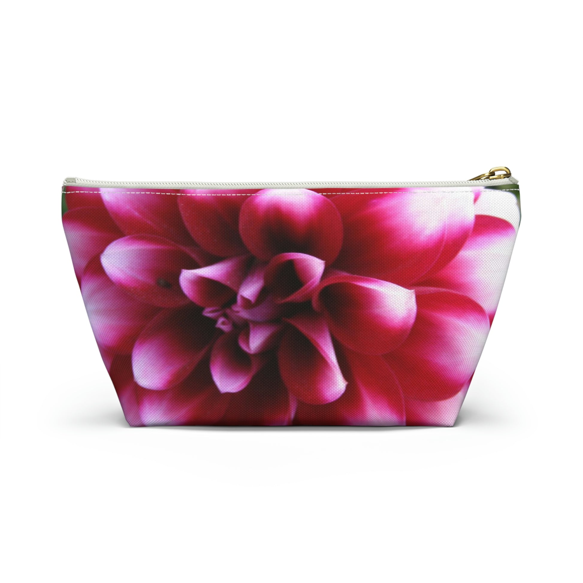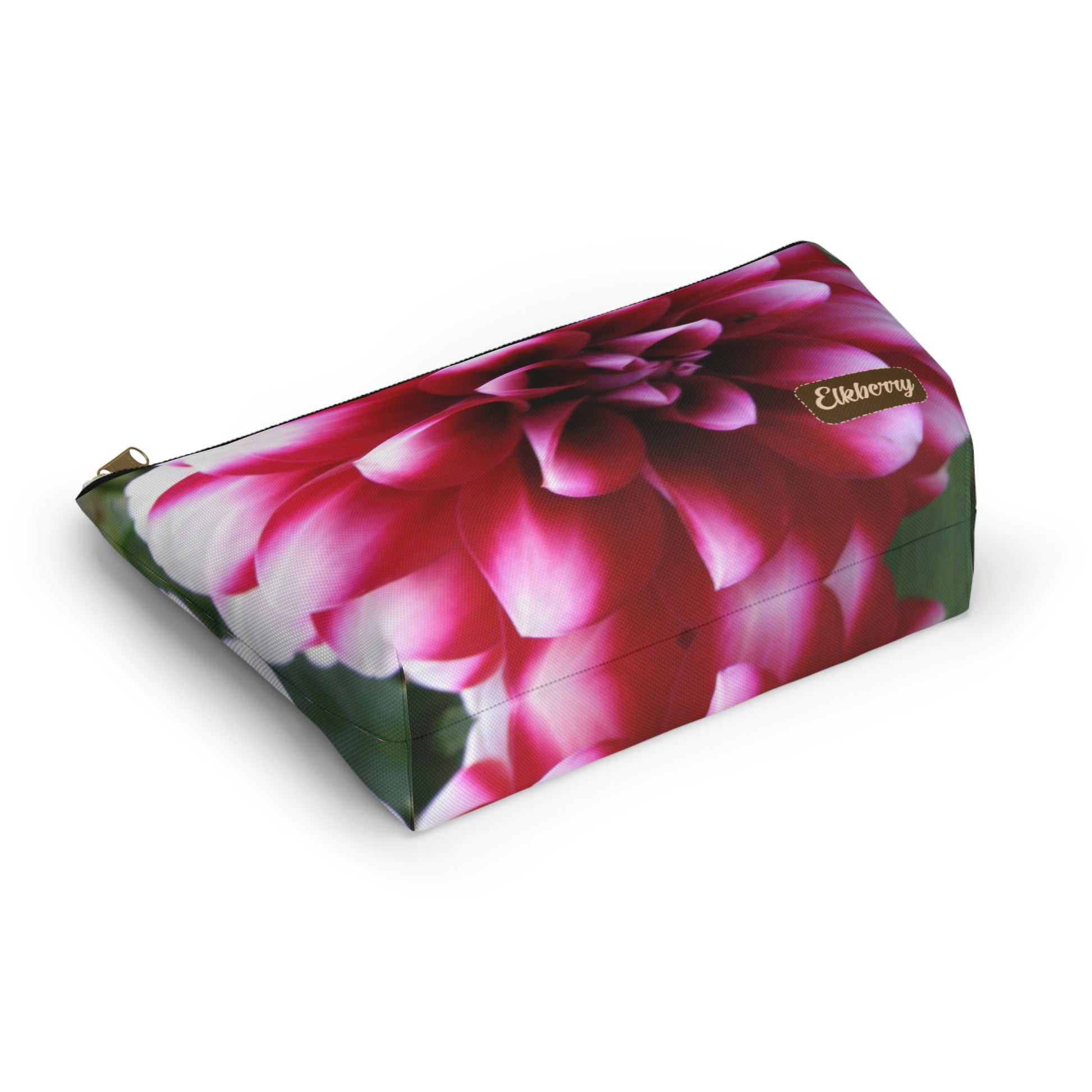 Big Bottom Zipper Pouch - Pink & White Dahlia