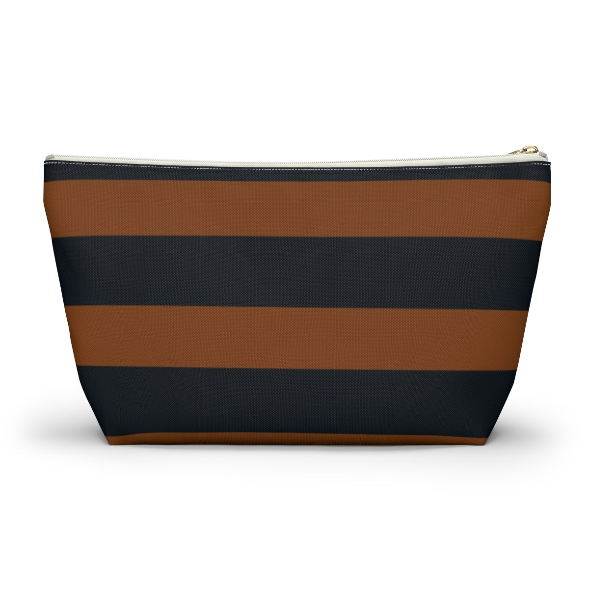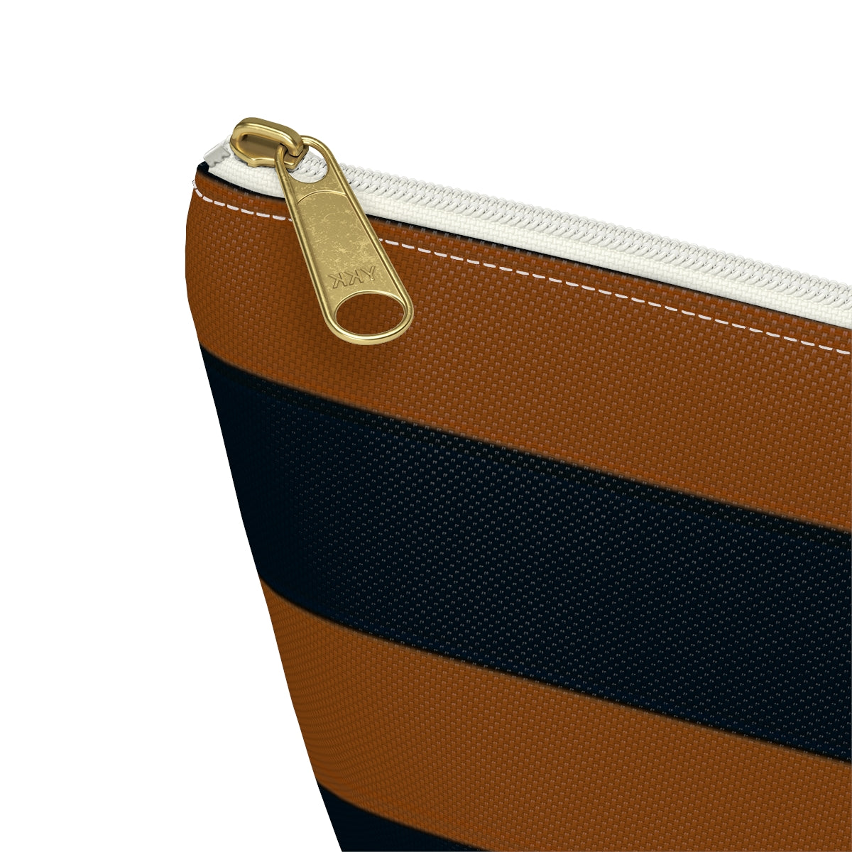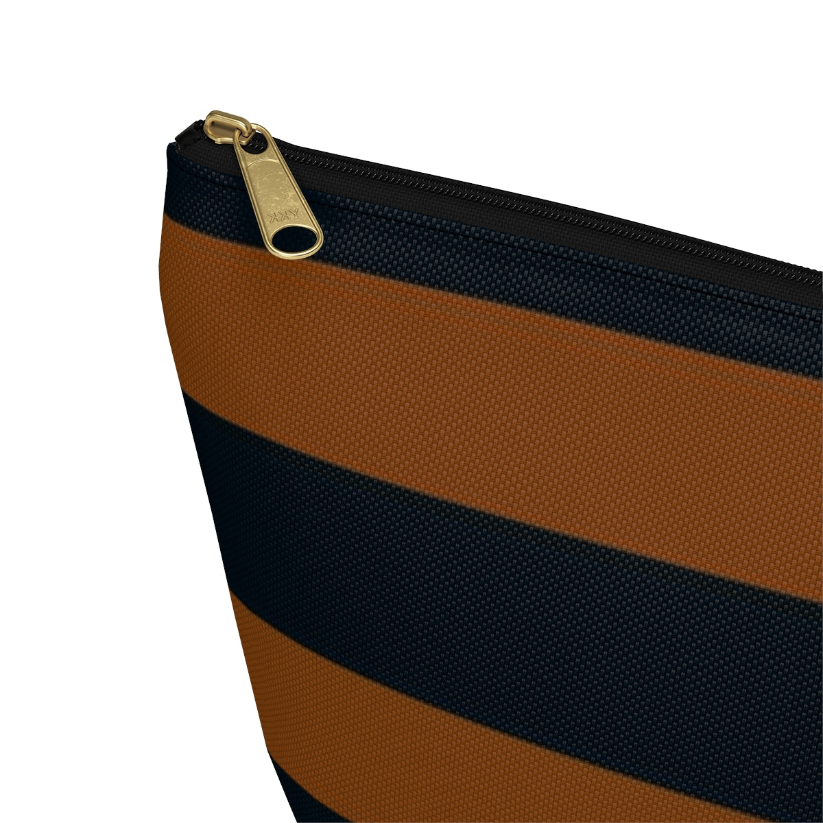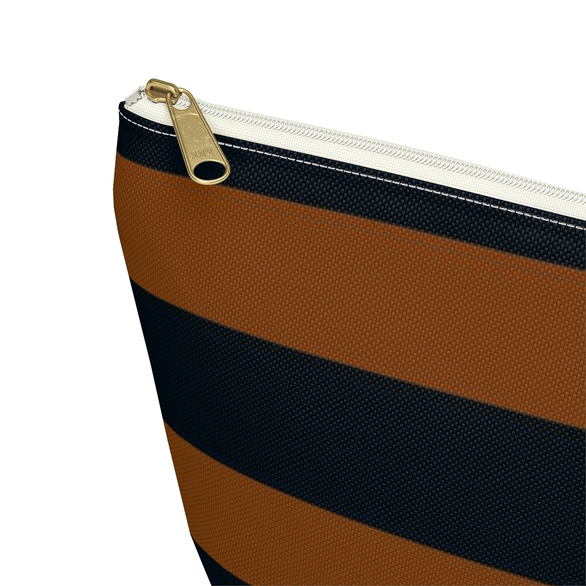 Big Bottom Zipper Pouch - Pumpkin/Navy Stripes