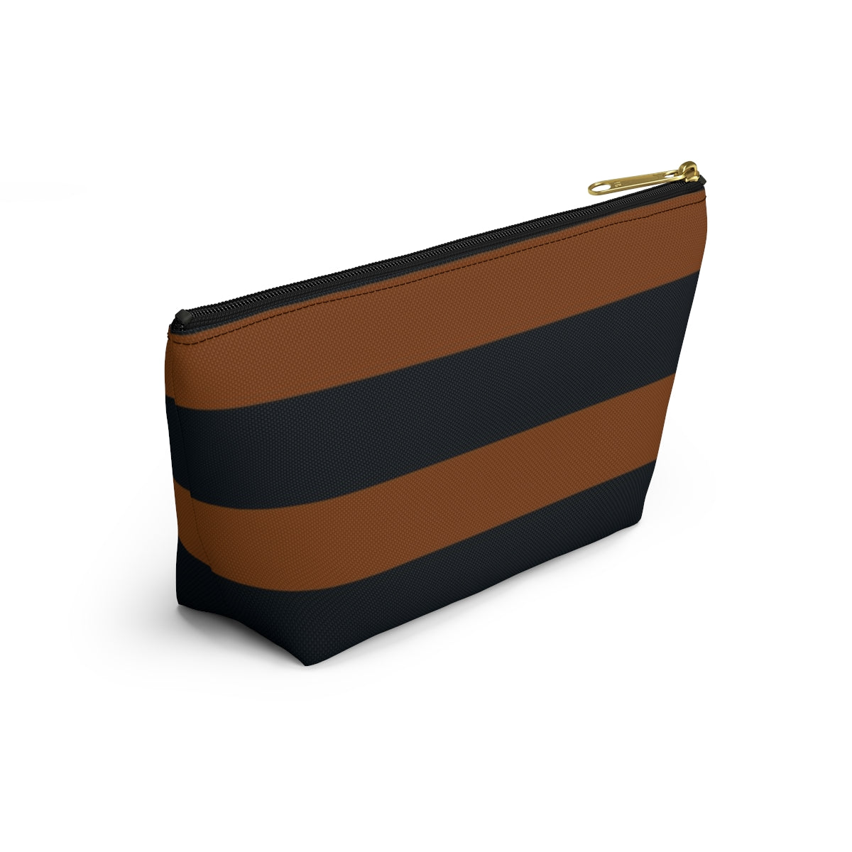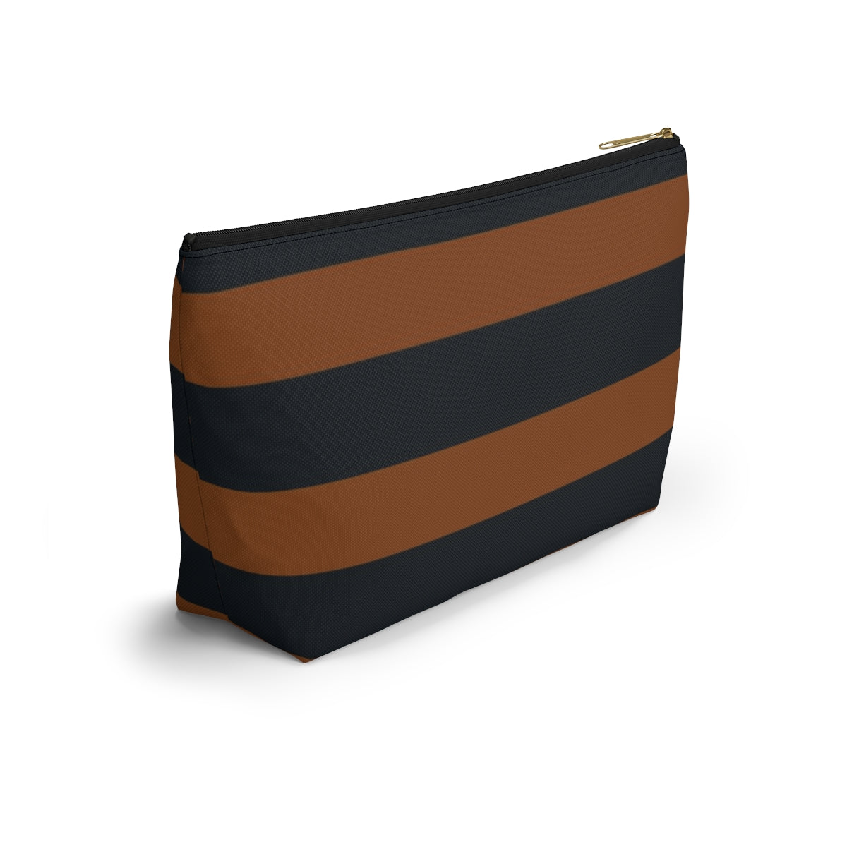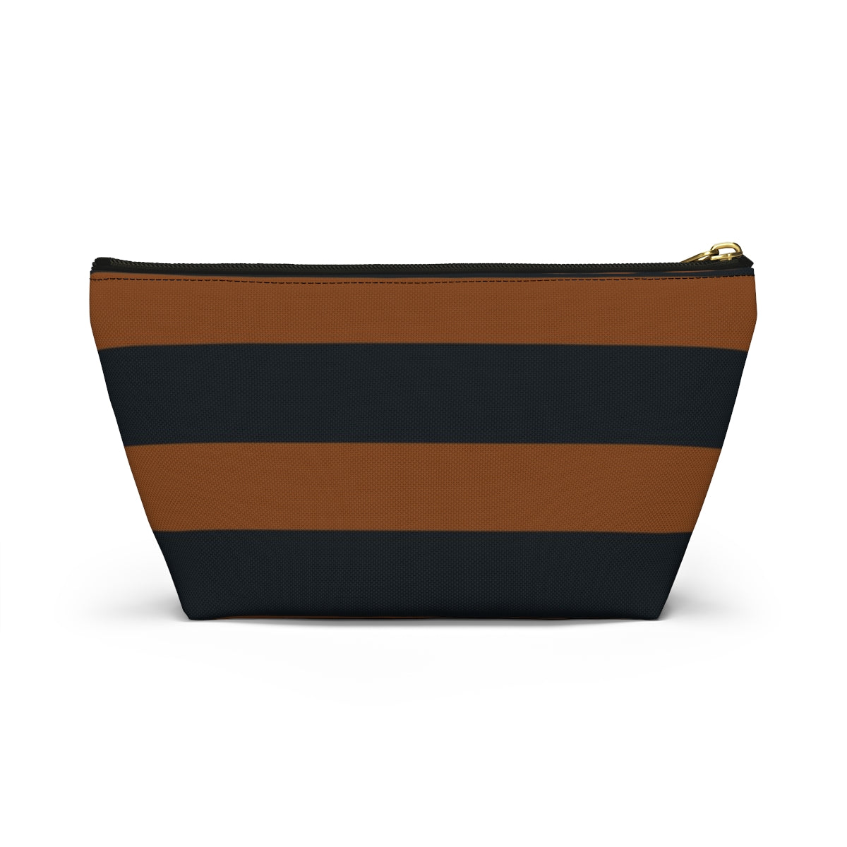 Big Bottom Zipper Pouch - Pumpkin/Navy Stripes