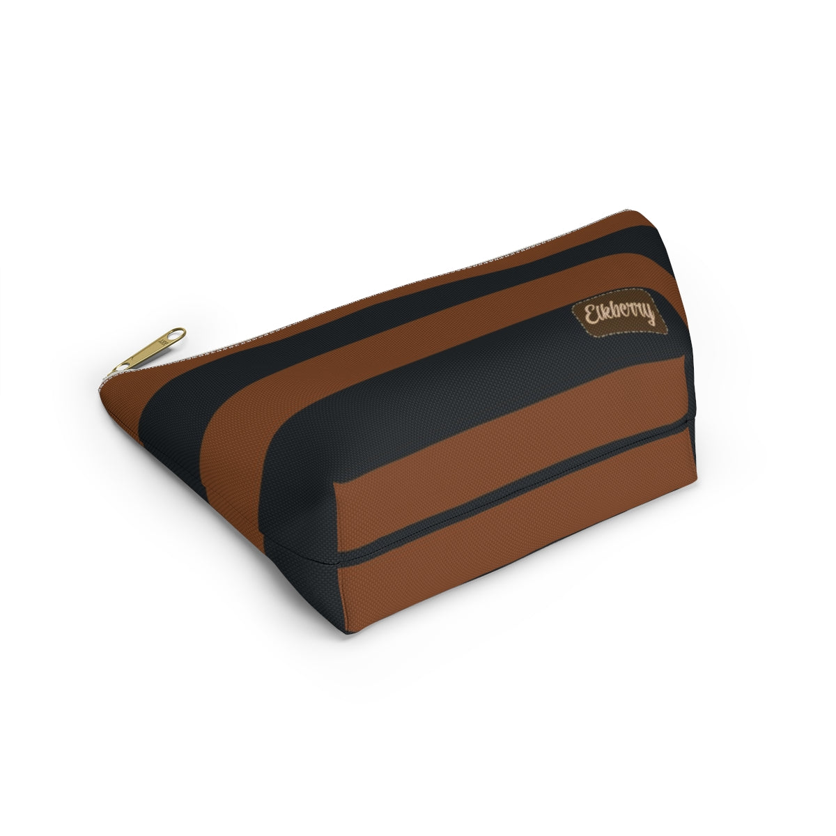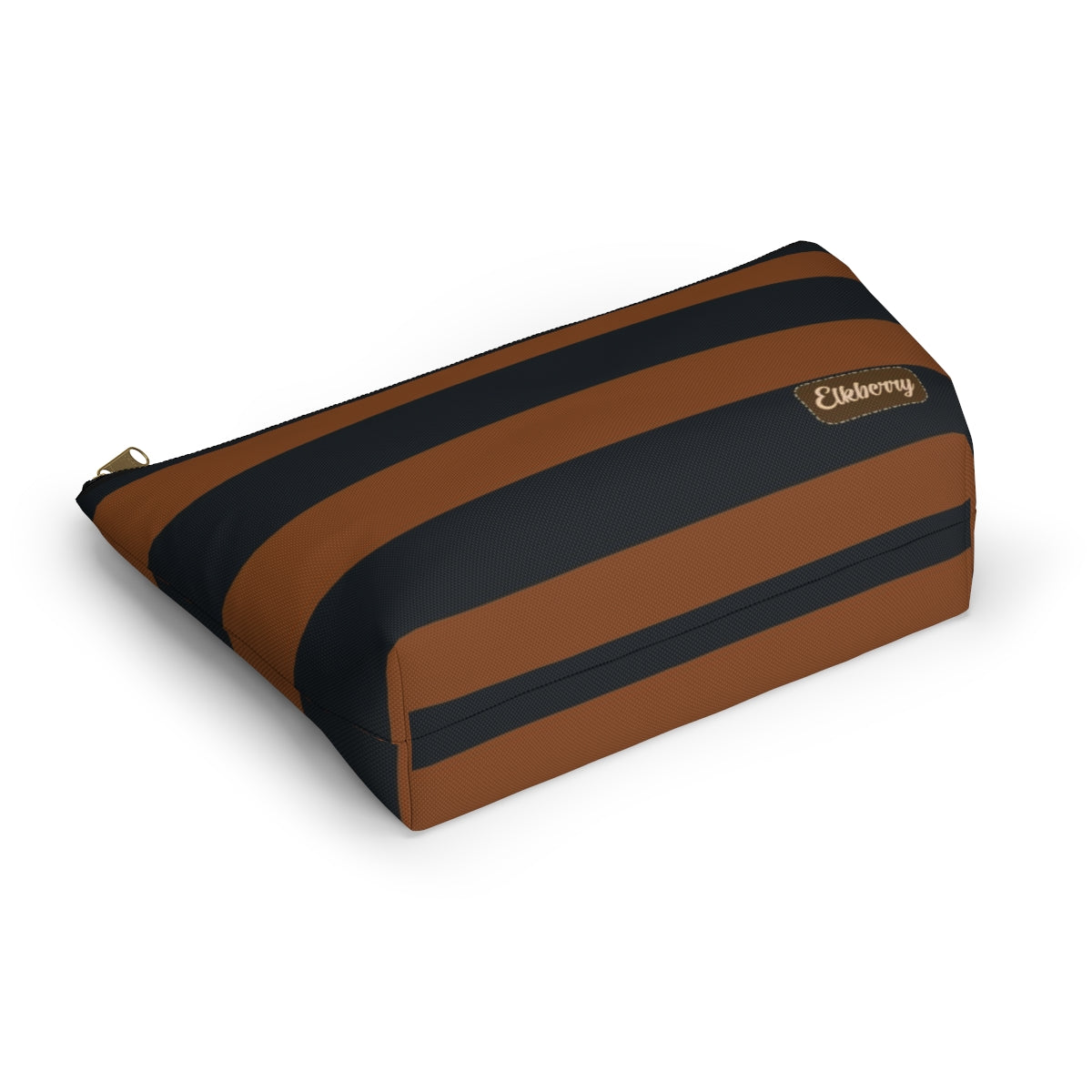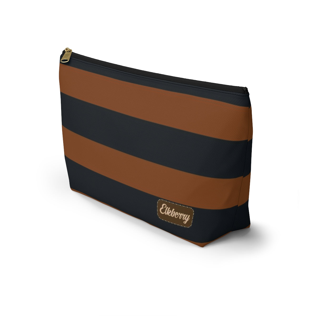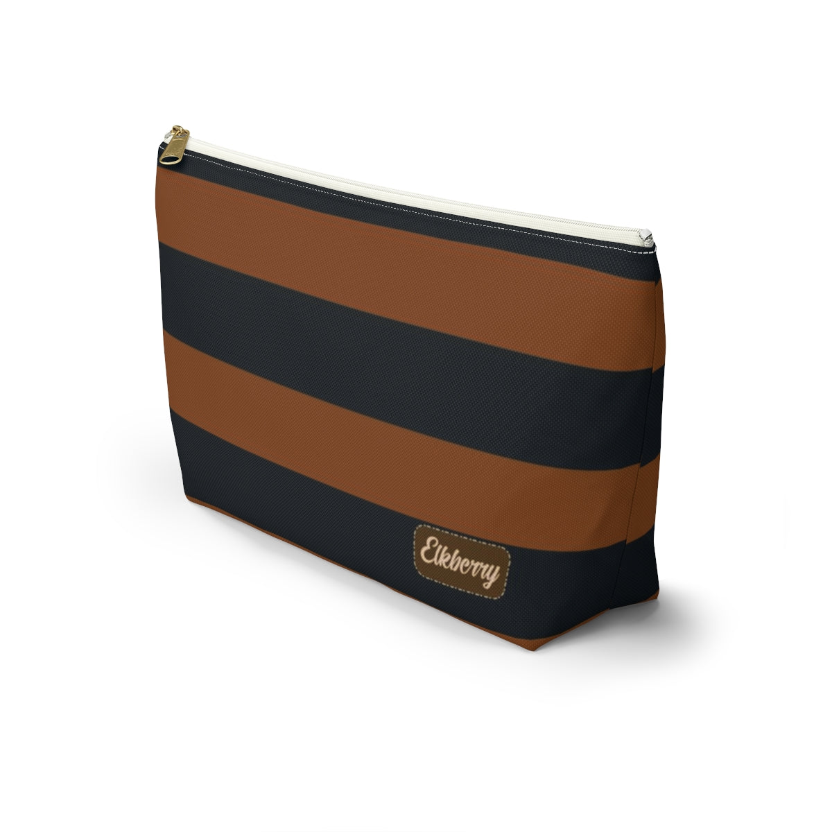 Big Bottom Zipper Pouch - Pumpkin/Navy Stripes