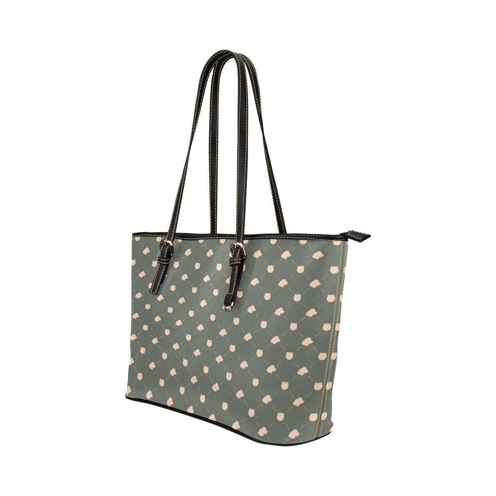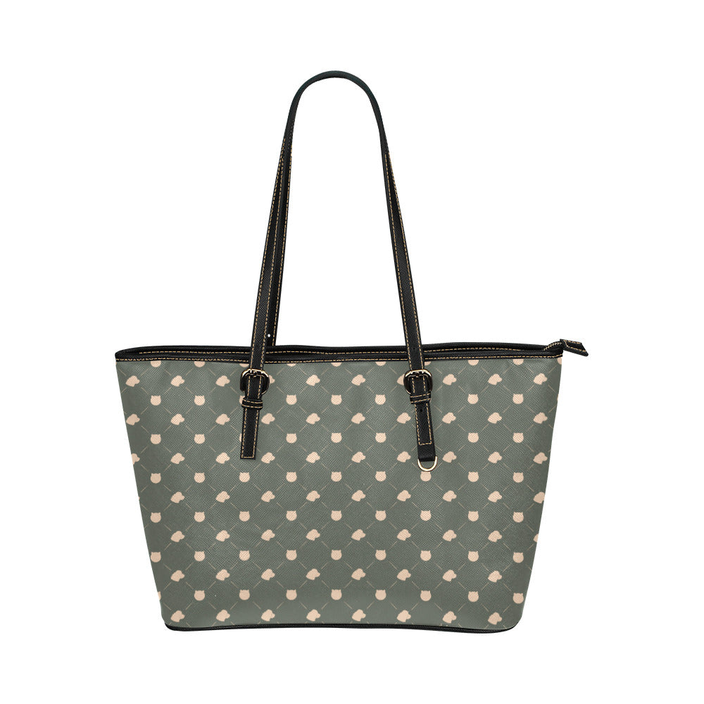 Cat & Dog - Sage Vegan Leather Zipper Tote Handbag (Large)