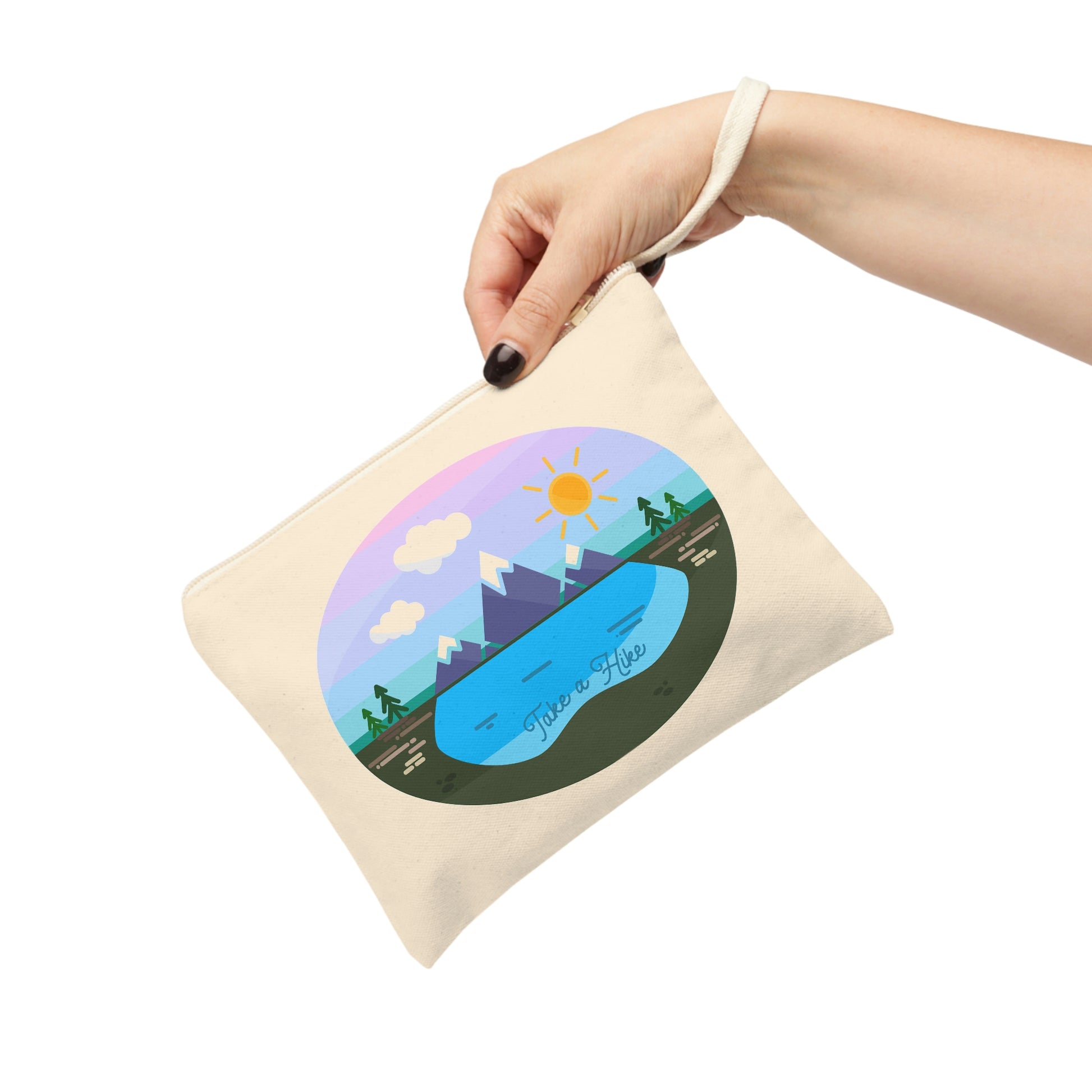 Keeping all belongings stylishly within arm's reach is this pouch's mission. With a 100% cotton fabric that feels like a mini tote, this pouch comes with a quality zipper for secure closing and features a handy strap for effortless carrying.