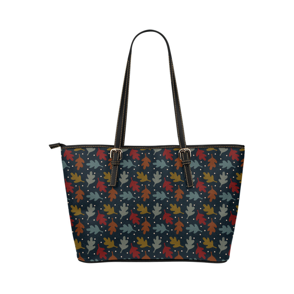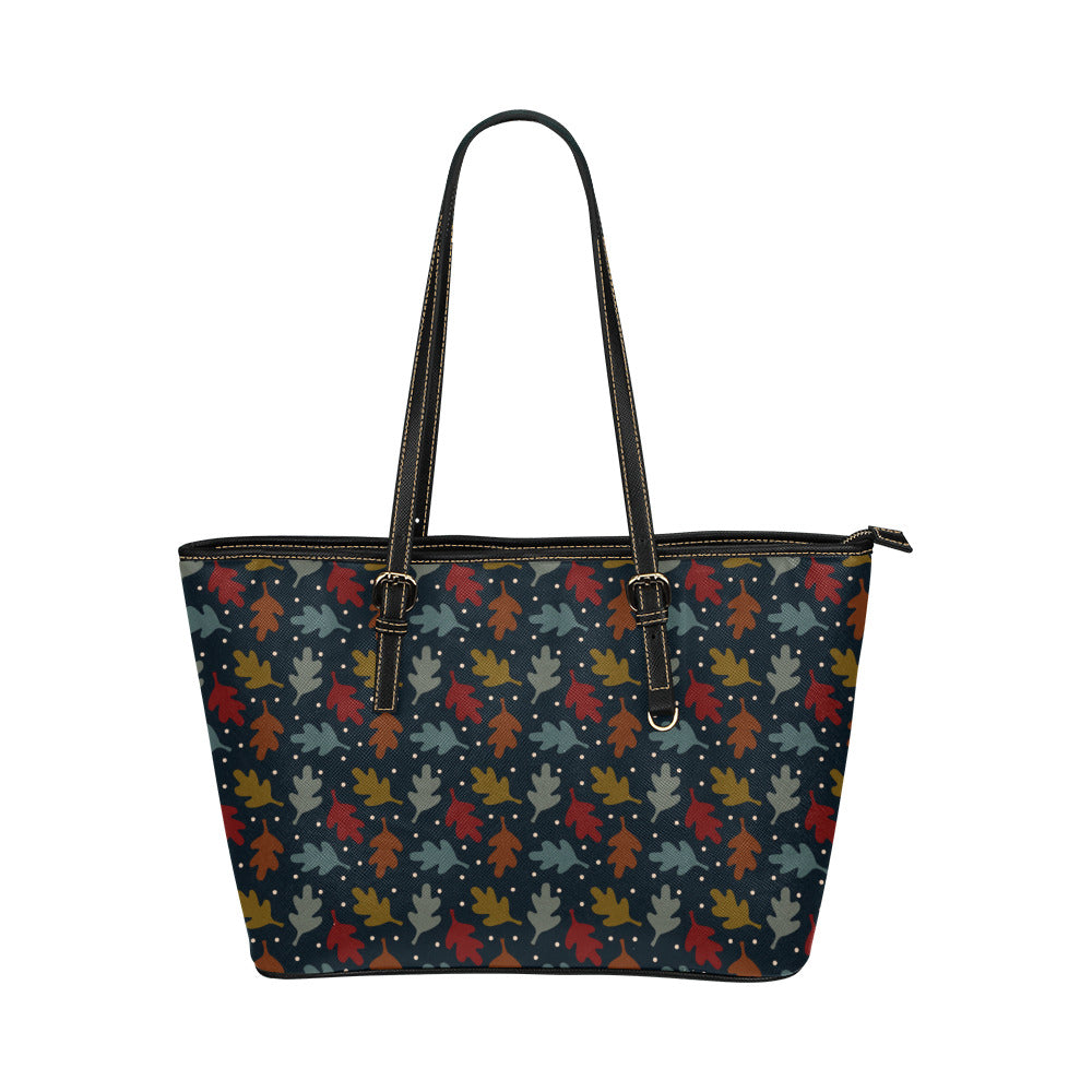 Fall Leaves Vegan Leather Zipper Tote Handbag (Large)