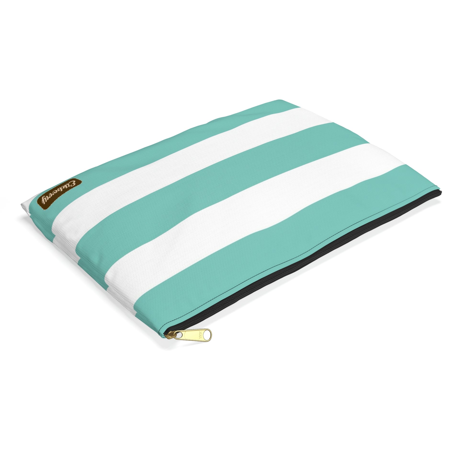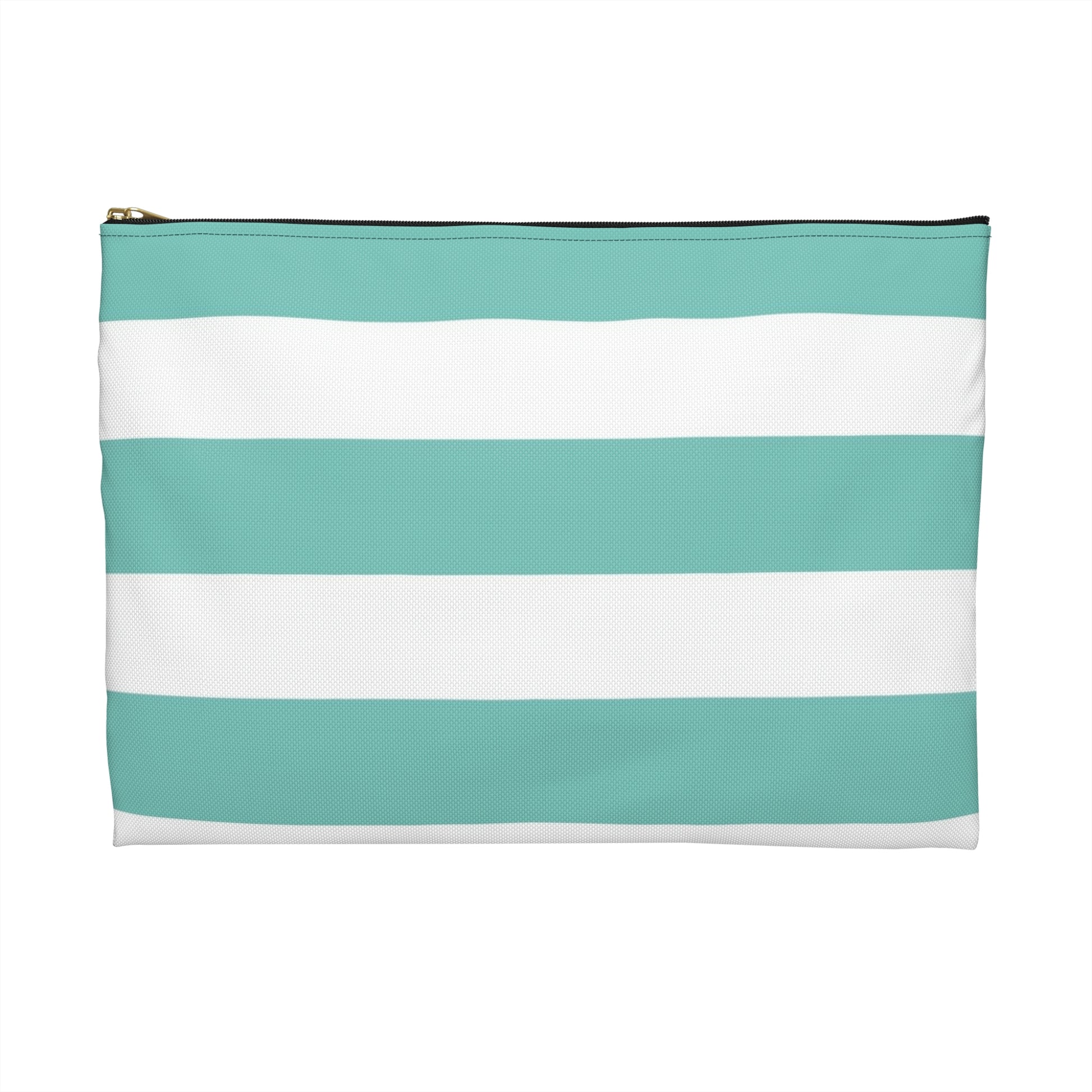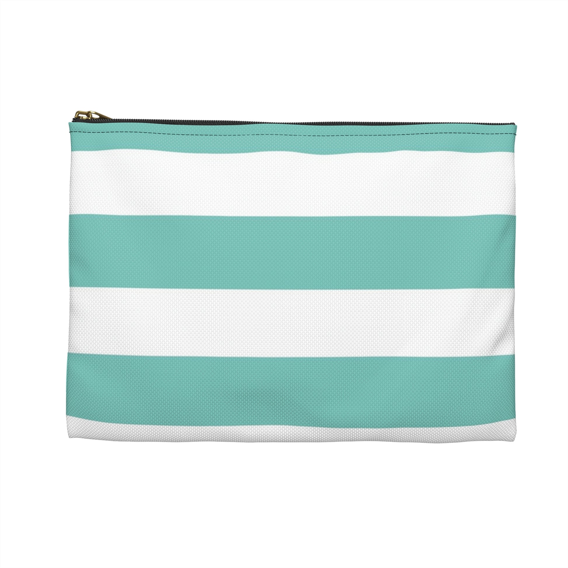 Flat Zipper Pouch - Aqua/White Stripes