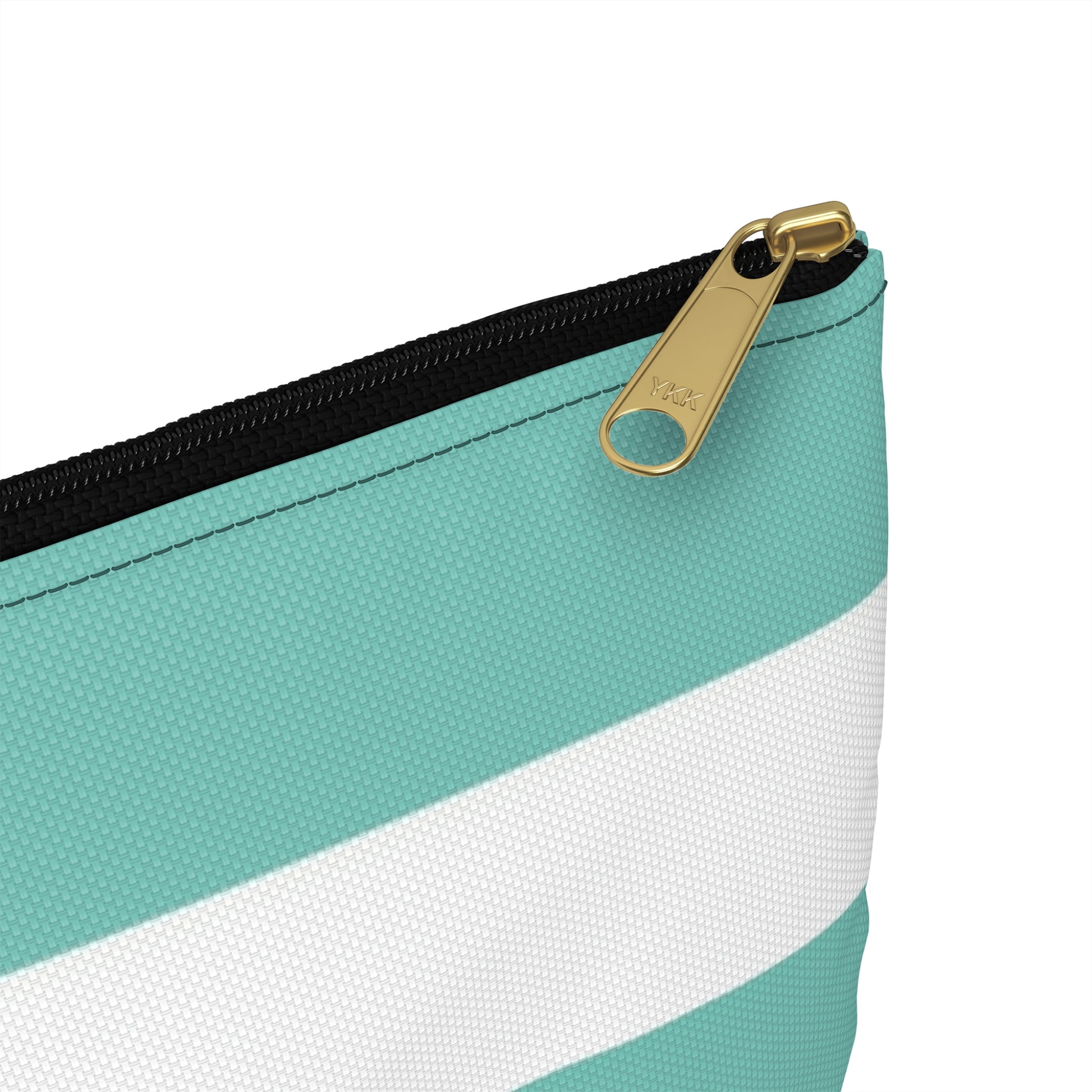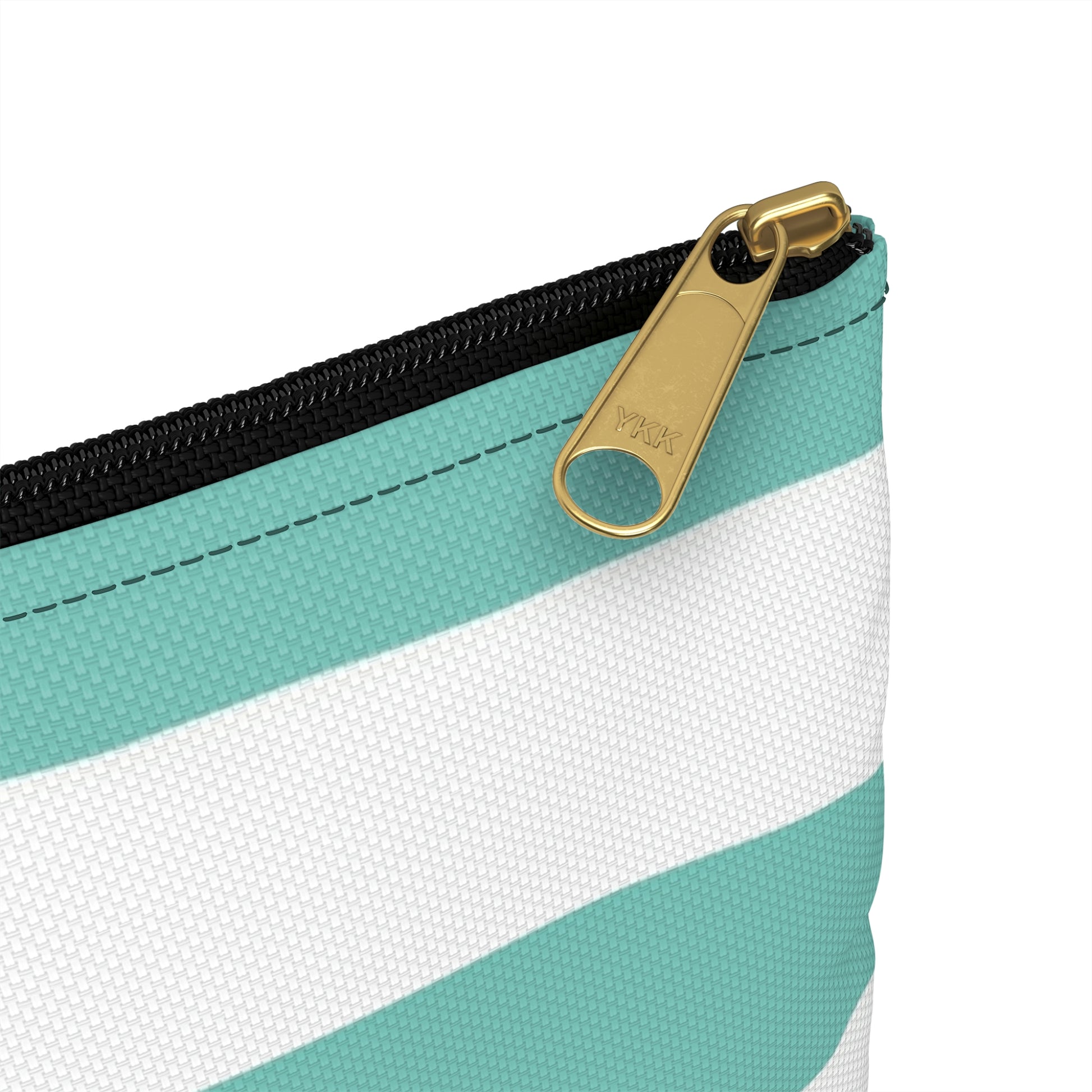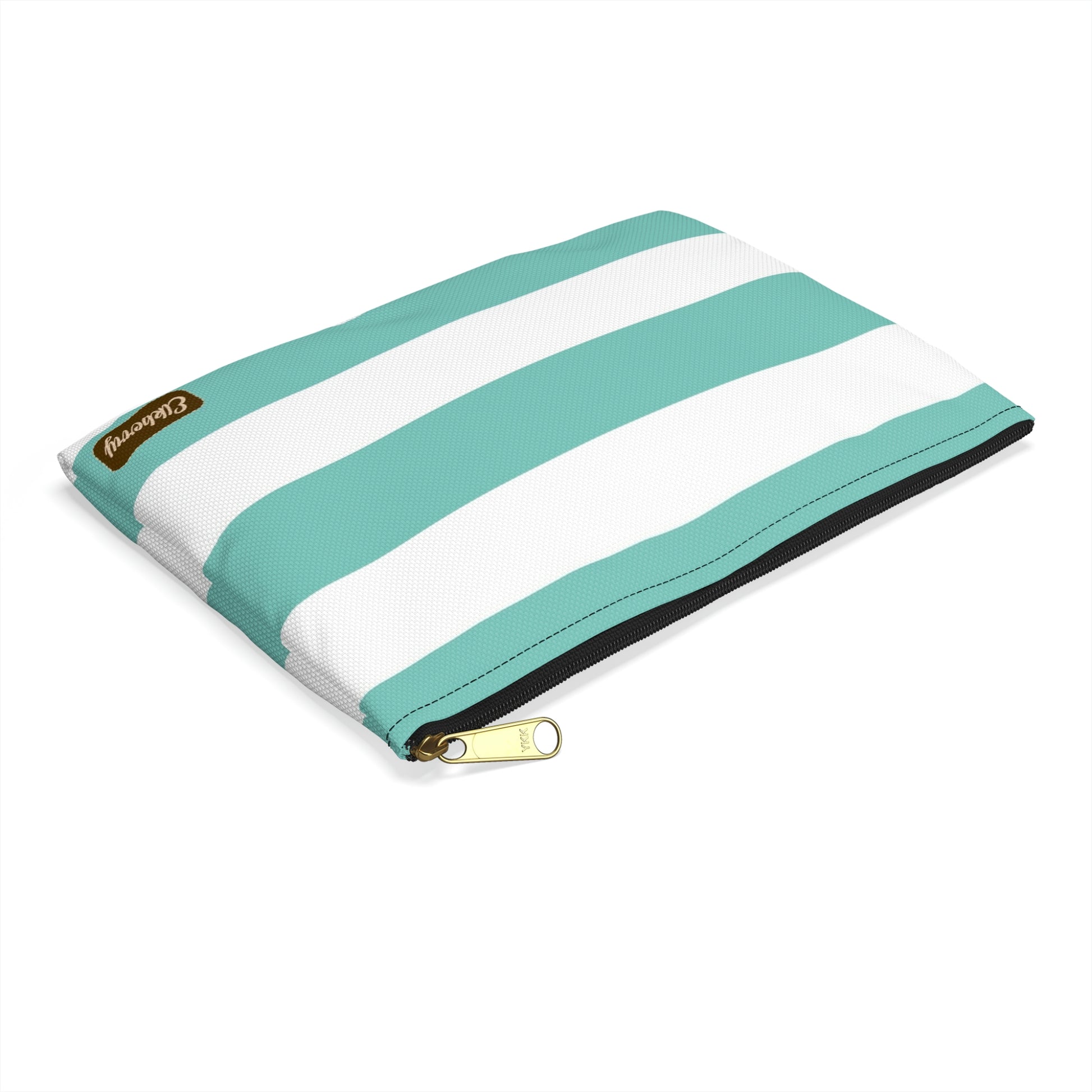 Flat Zipper Pouch - Aqua/White Stripes