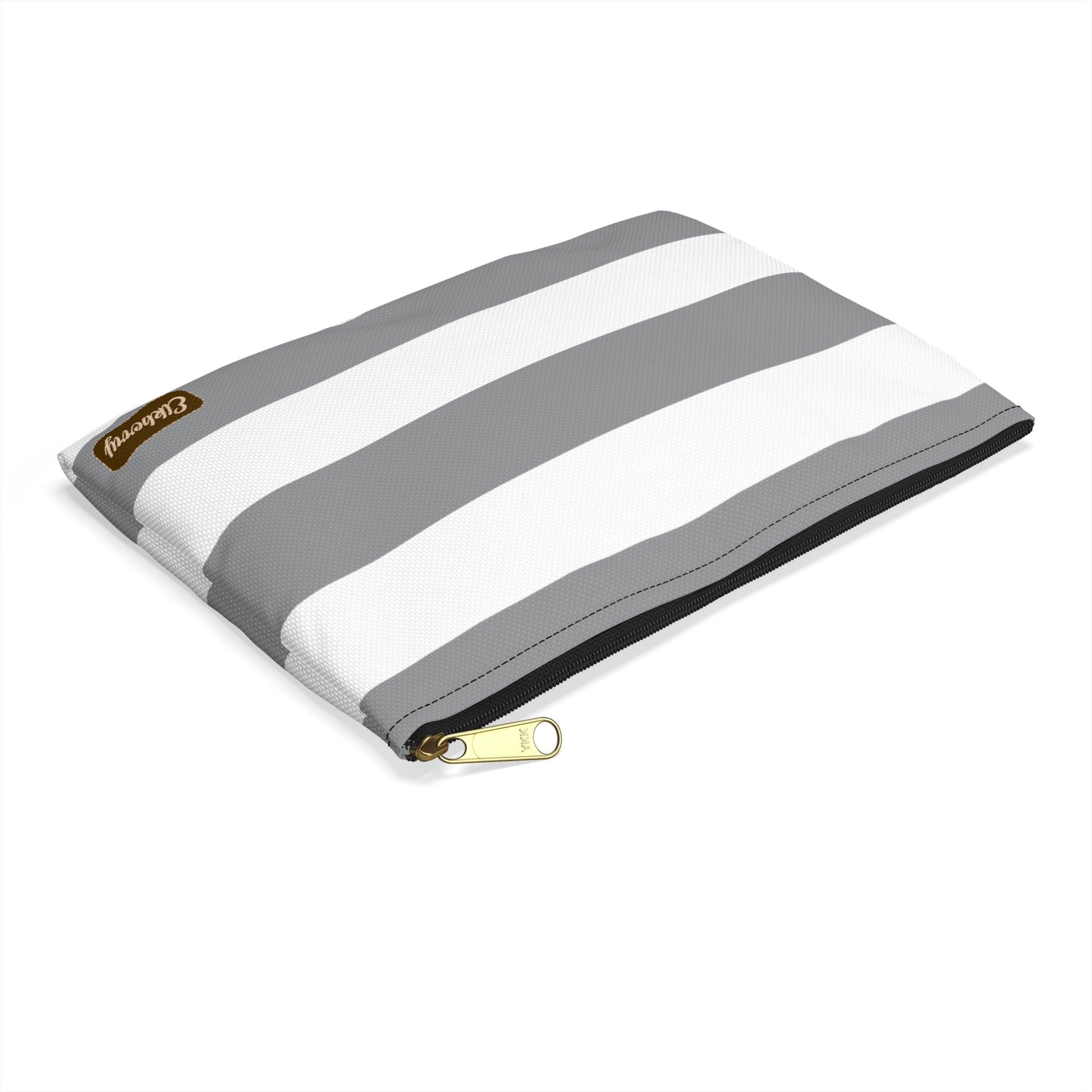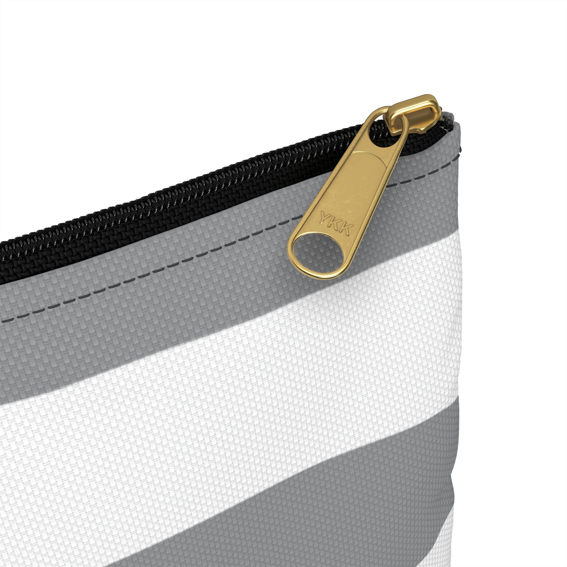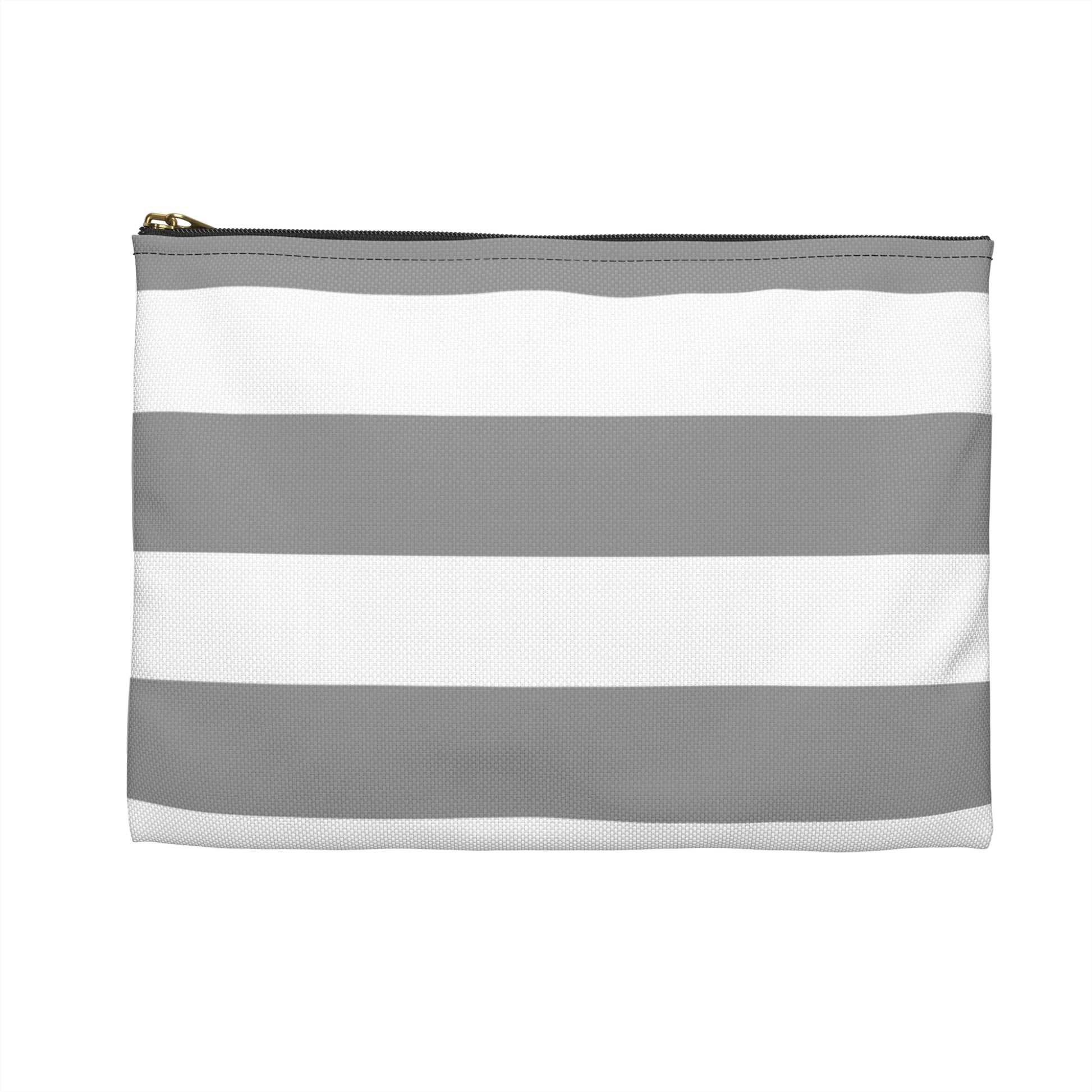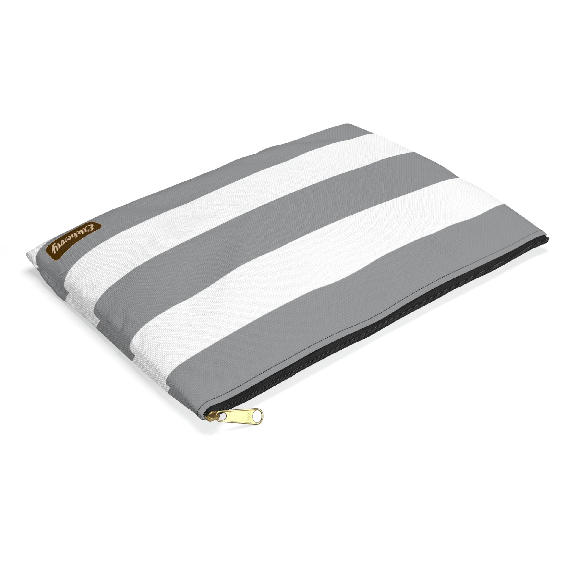 Flat Zipper Pouch - Ash Gray/White Stripes