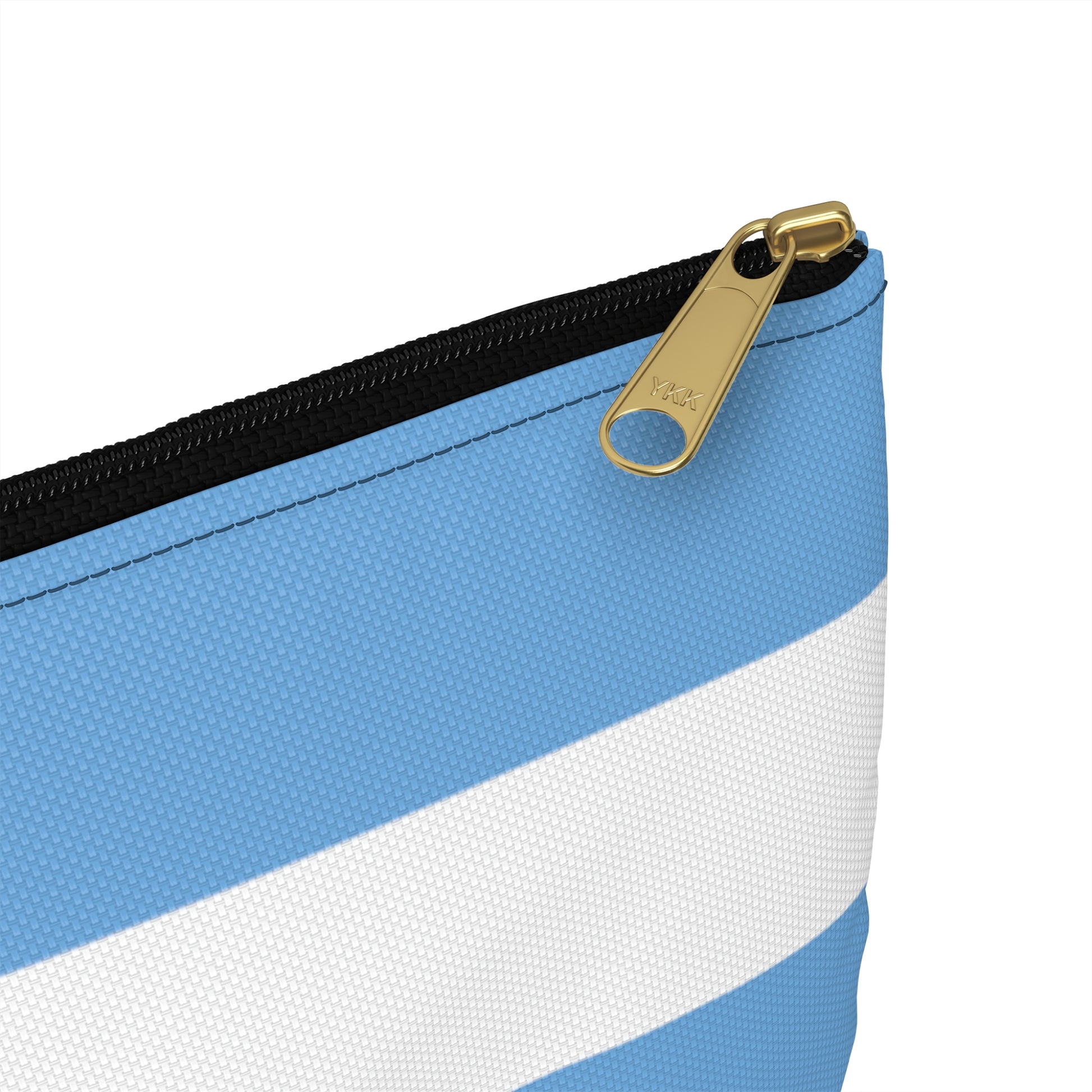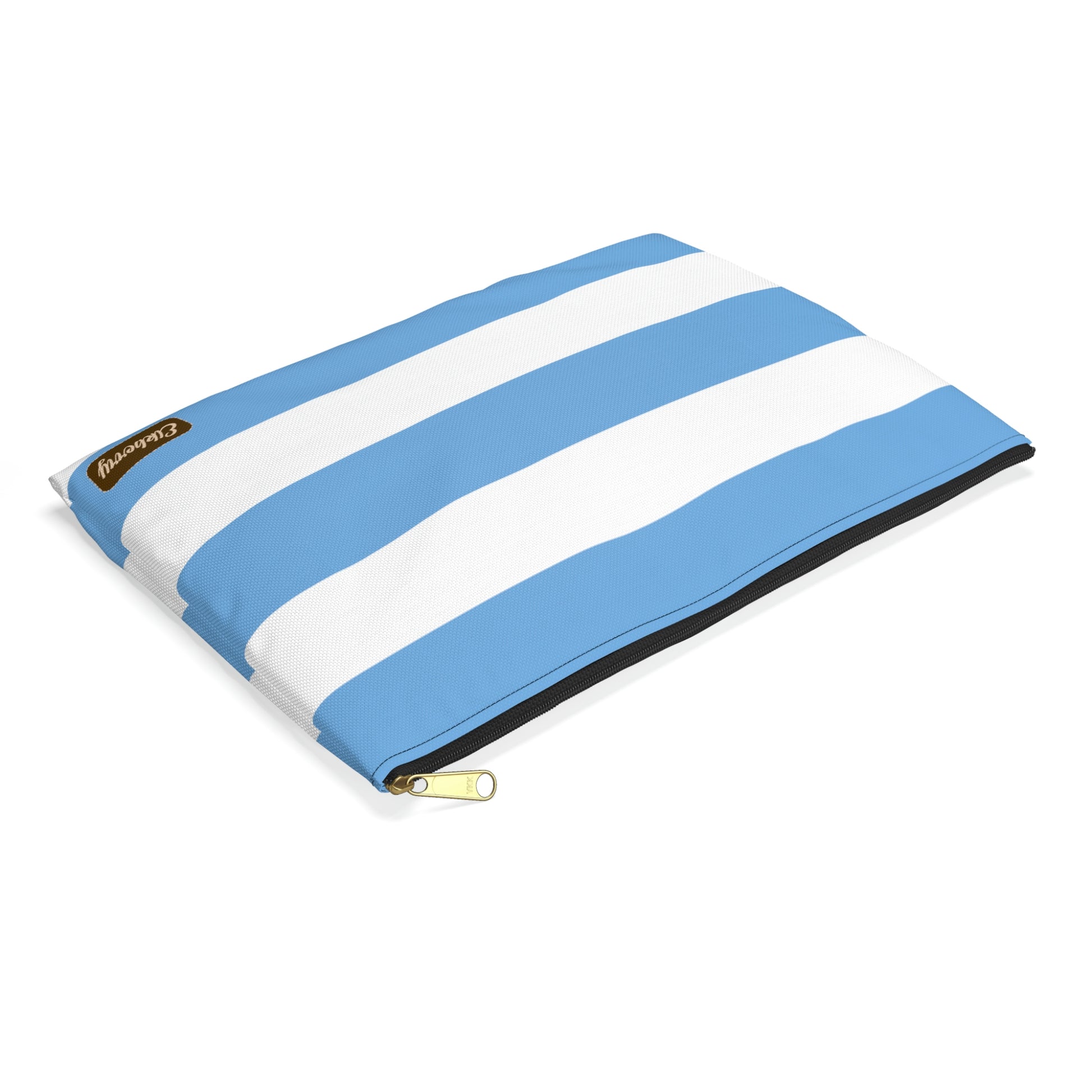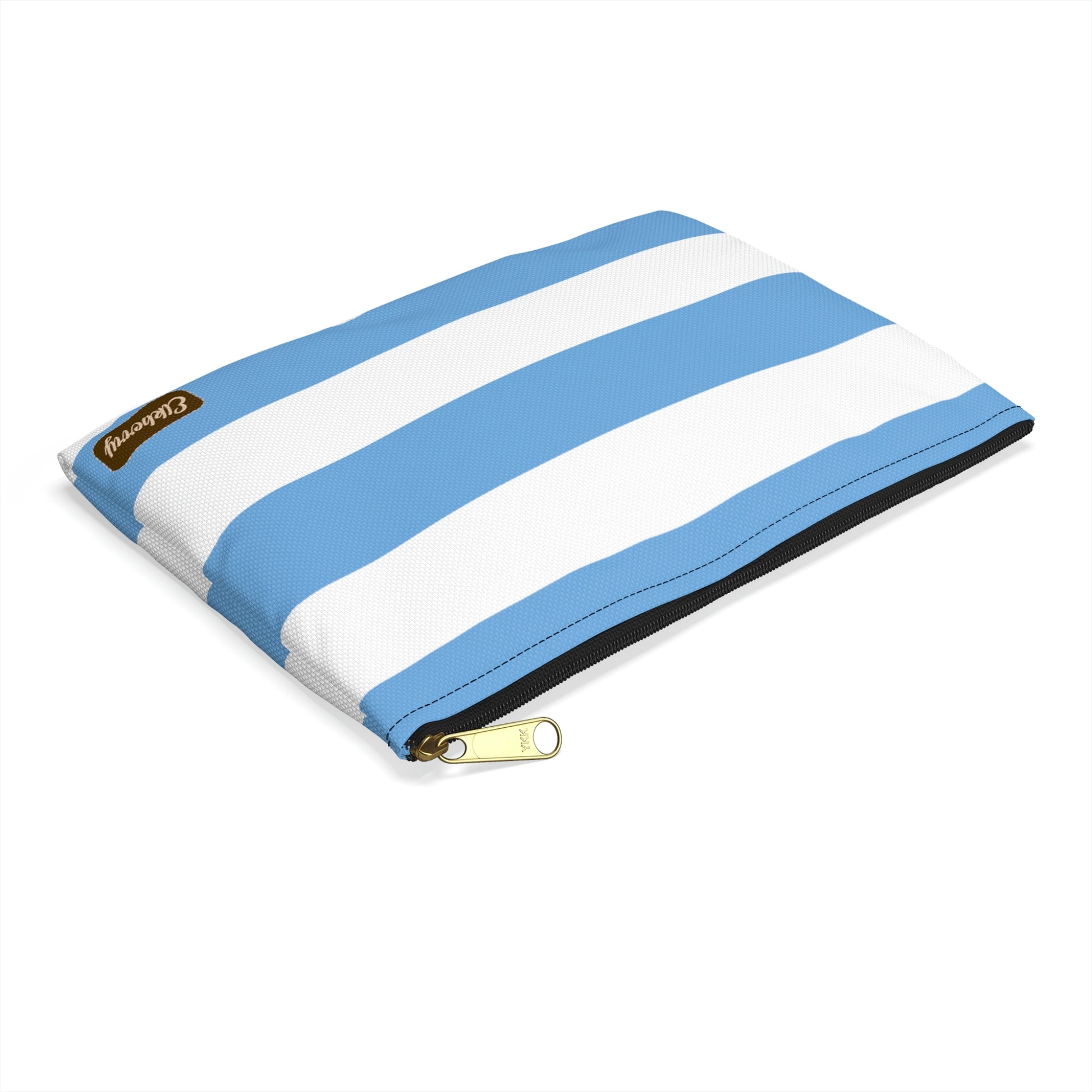 Flat Zipper Pouch - Light Blue/White Stripes