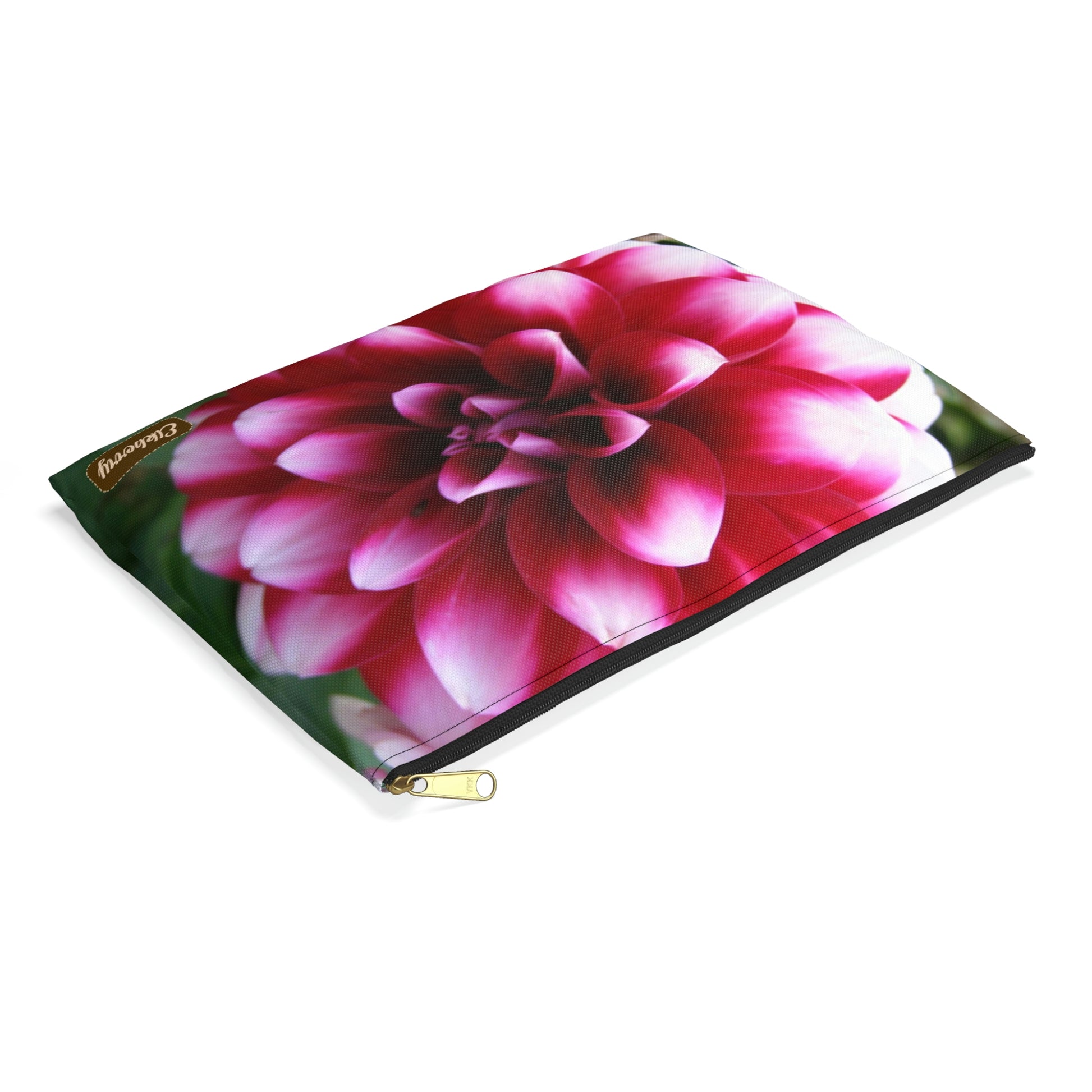 Flat Zipper Pouch - Pink & White Dahlia