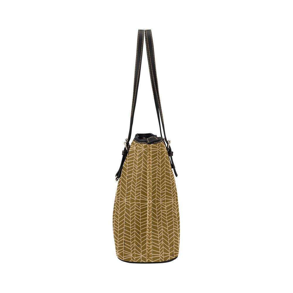 Herringbone - Mustard Vegan Leather Zipper Tote Handbag (Small)
