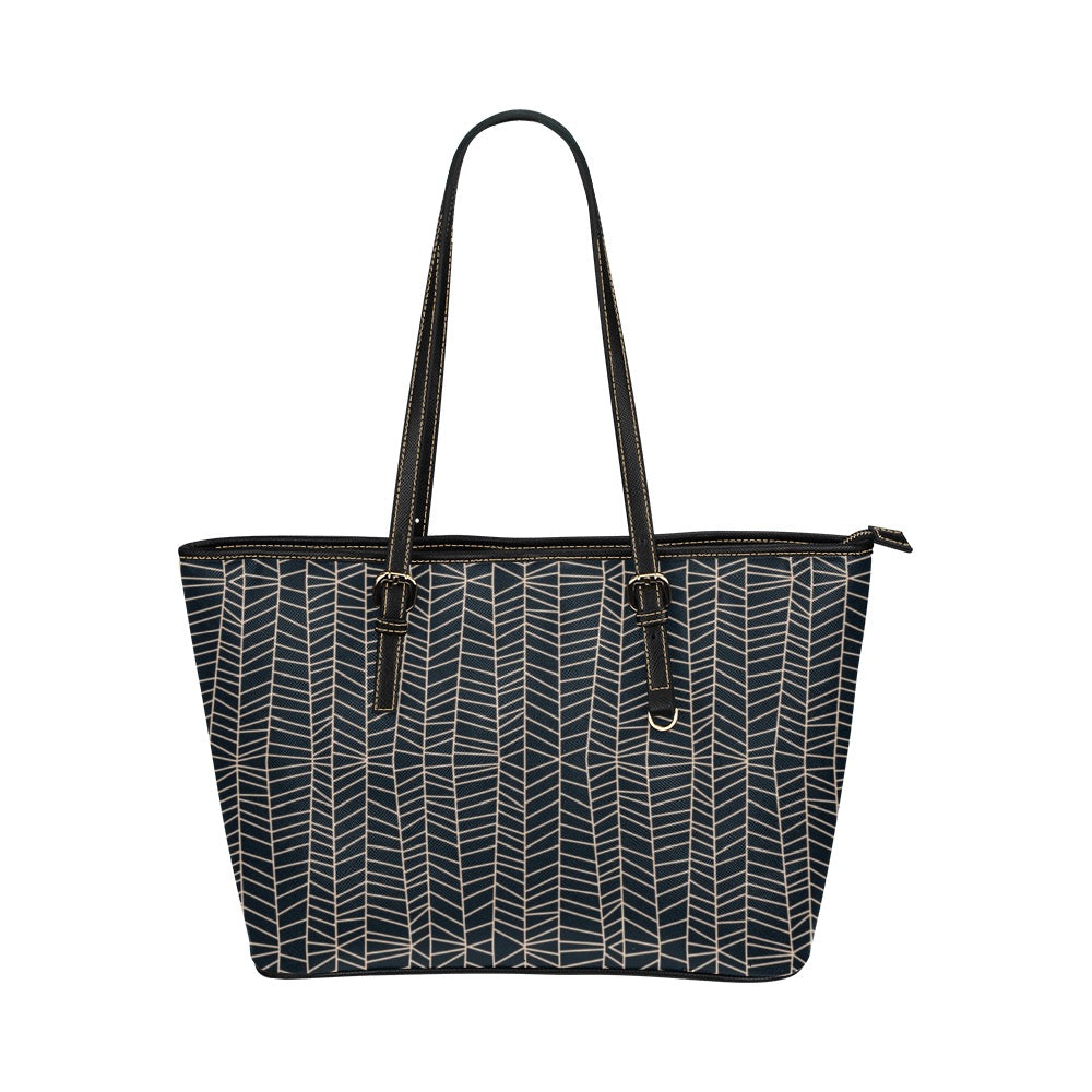 Herringbone - Navy Vegan Leather Zipper Tote Handbag (Small)