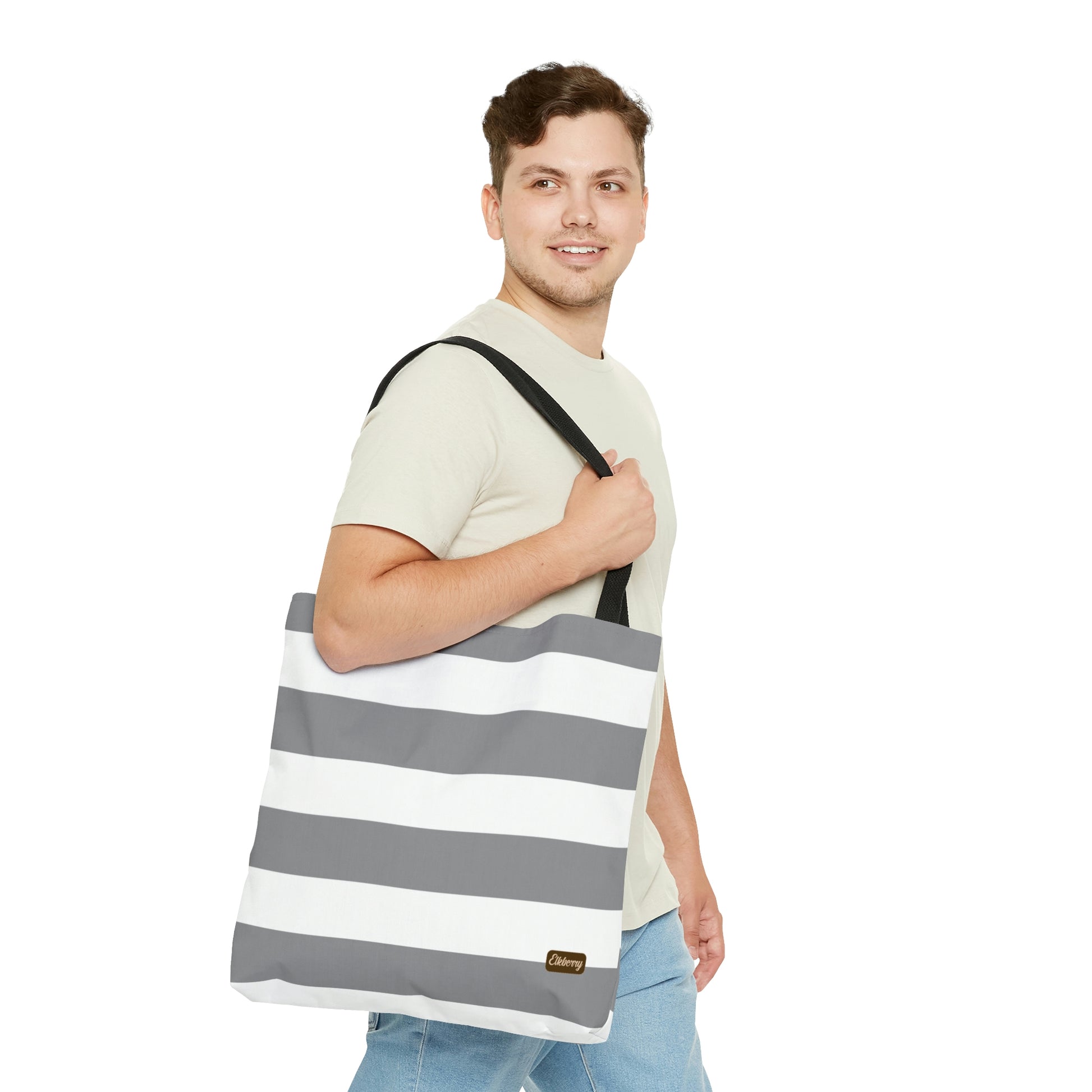 Lightweight Tote Bag - Ash Gray/White Stripes