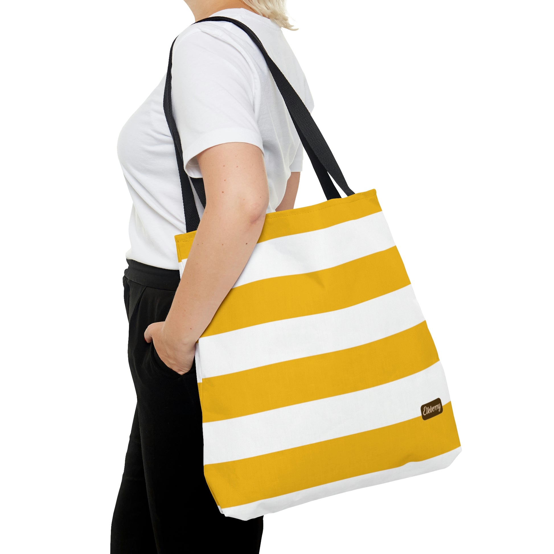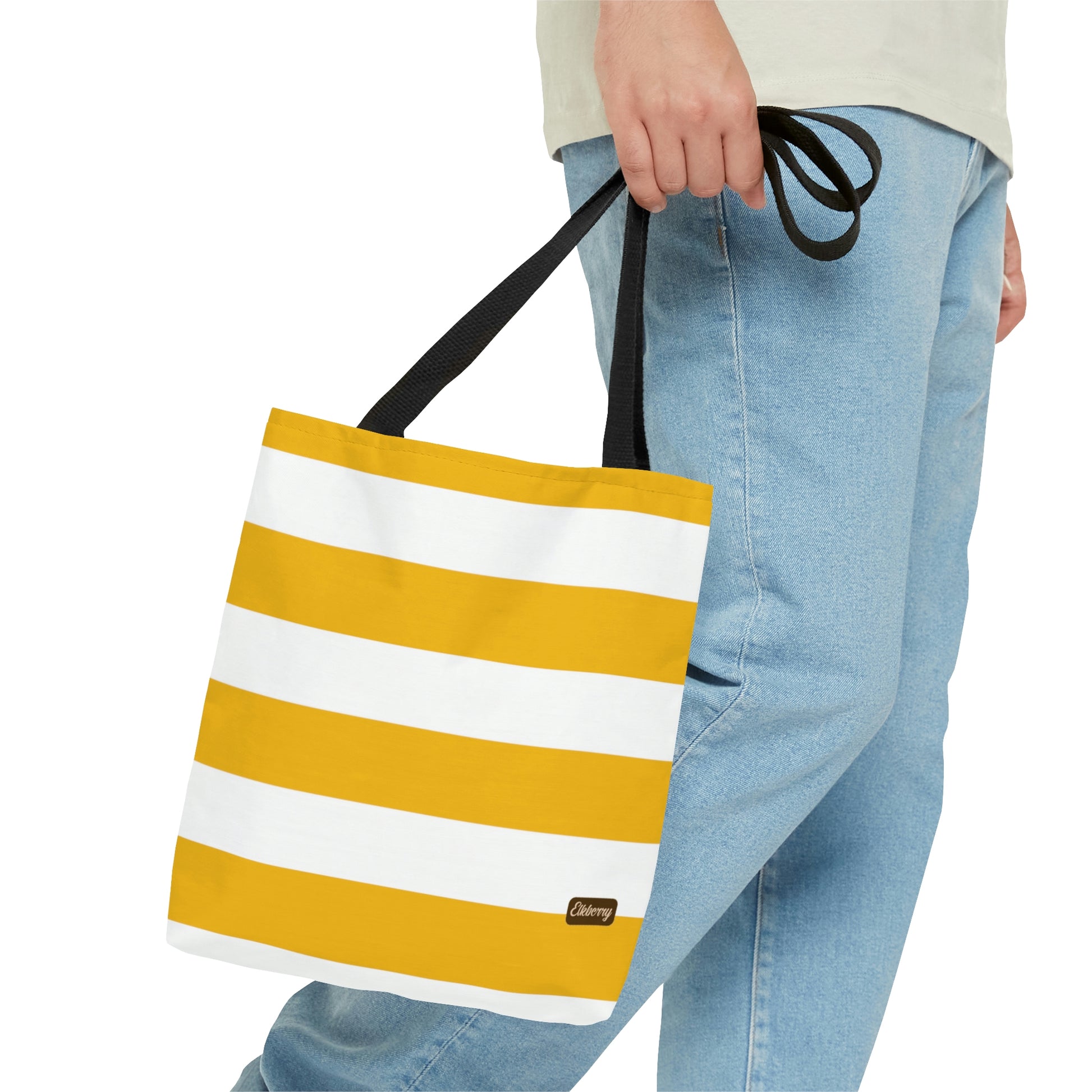 Lightweight Tote Bag - Lemon Yellow/White Stripes
