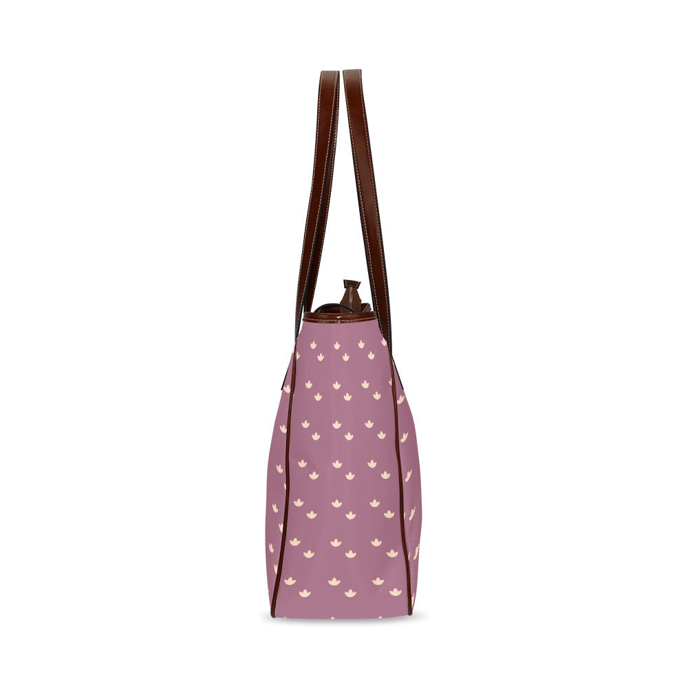 The whole bag zippers shut to keep all of your secrets safely inside or there's an adjustable & securable flap to make room for your pillow. :) Inside there's a clasp that is perfect for clipping your keys, a badge, or that always necessary hand-sanitizer.