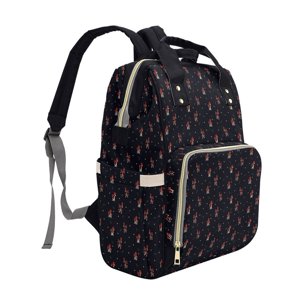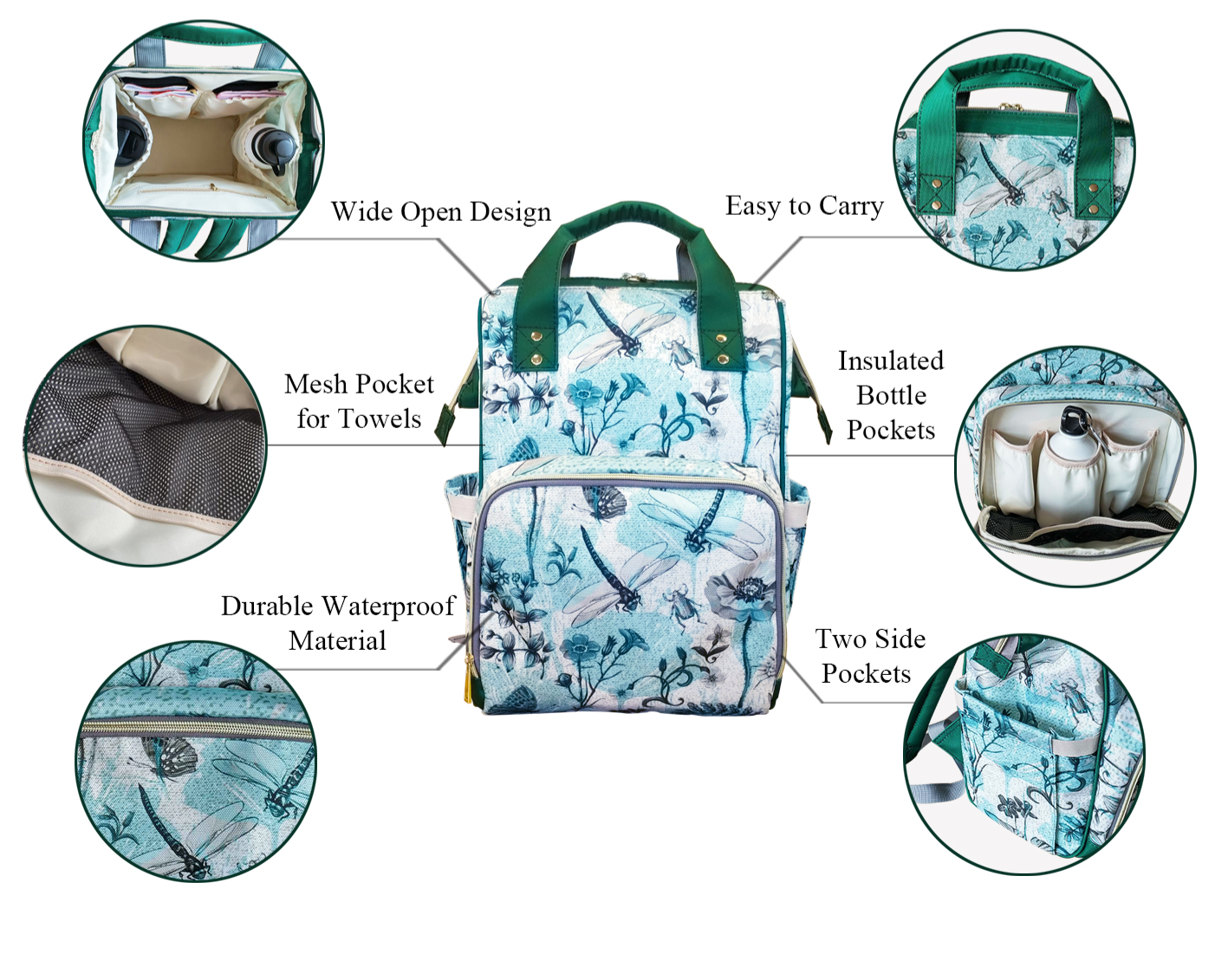 Carry your goodies in style. :) This bag has a wide-open design with a lot of room and compartments to stash stuff everywhere and help you stay organized. It could easily work as a book bag, diaper bag, or everyday bag.