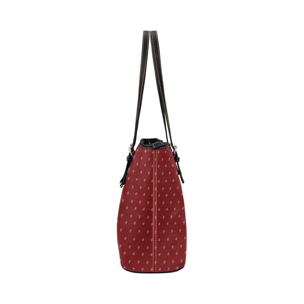 Pink Hearts on Red Vegan Leather Zipper Tote Handbag (Large)