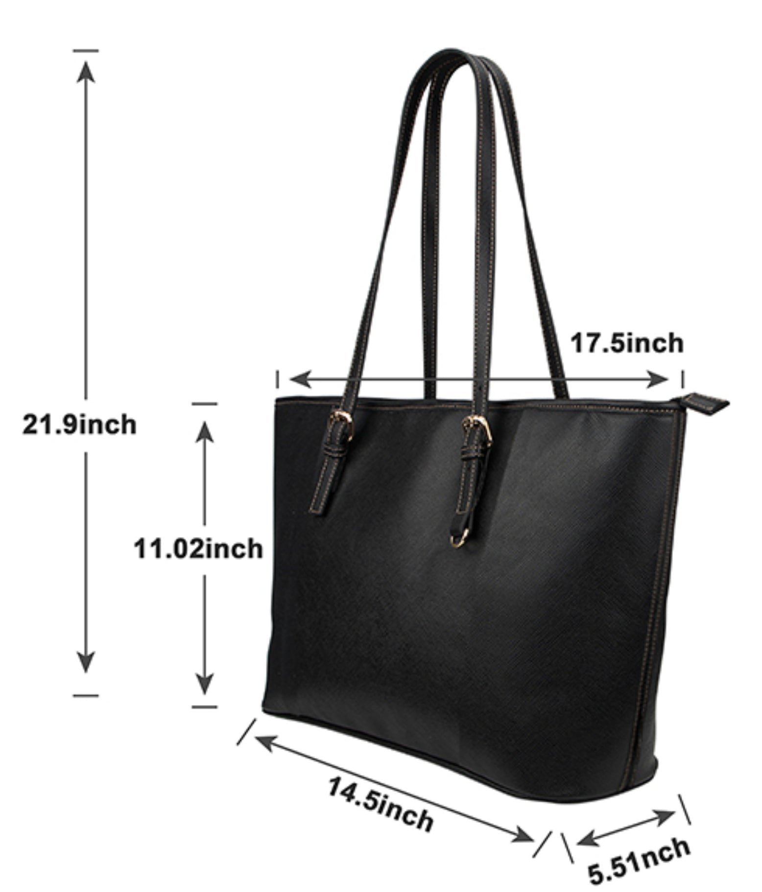 If you're looking for the high quality Vegan Leather Tote bag of your dreams, look no further! This well-made bag is constructed of high-grade vegan leather for the exterior and the interior is a solid, light tan fabric. It has fun gold details like buckles on the adjustable straps and 4 of the cutest little golden bag feet you ever did see, so your bag's bottom stays nice and clean.