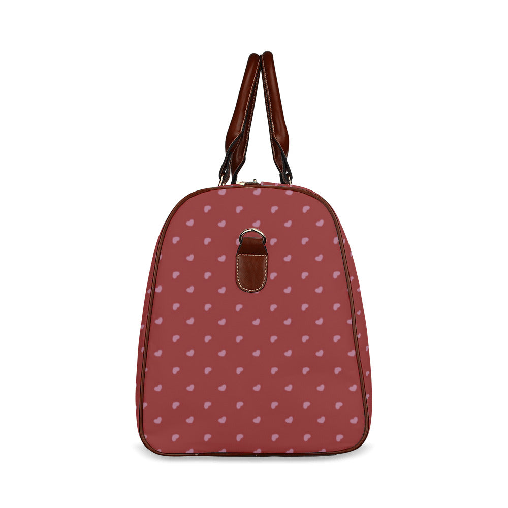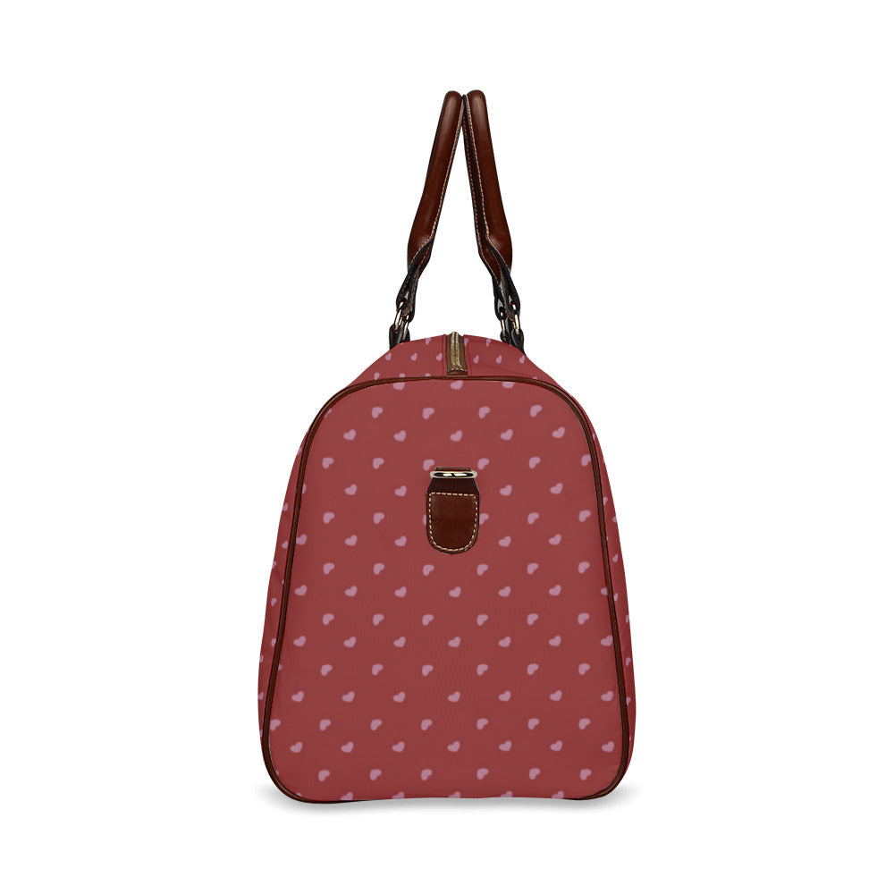 Pink Hearts on Red Waterproof Travel Bag (Large)
