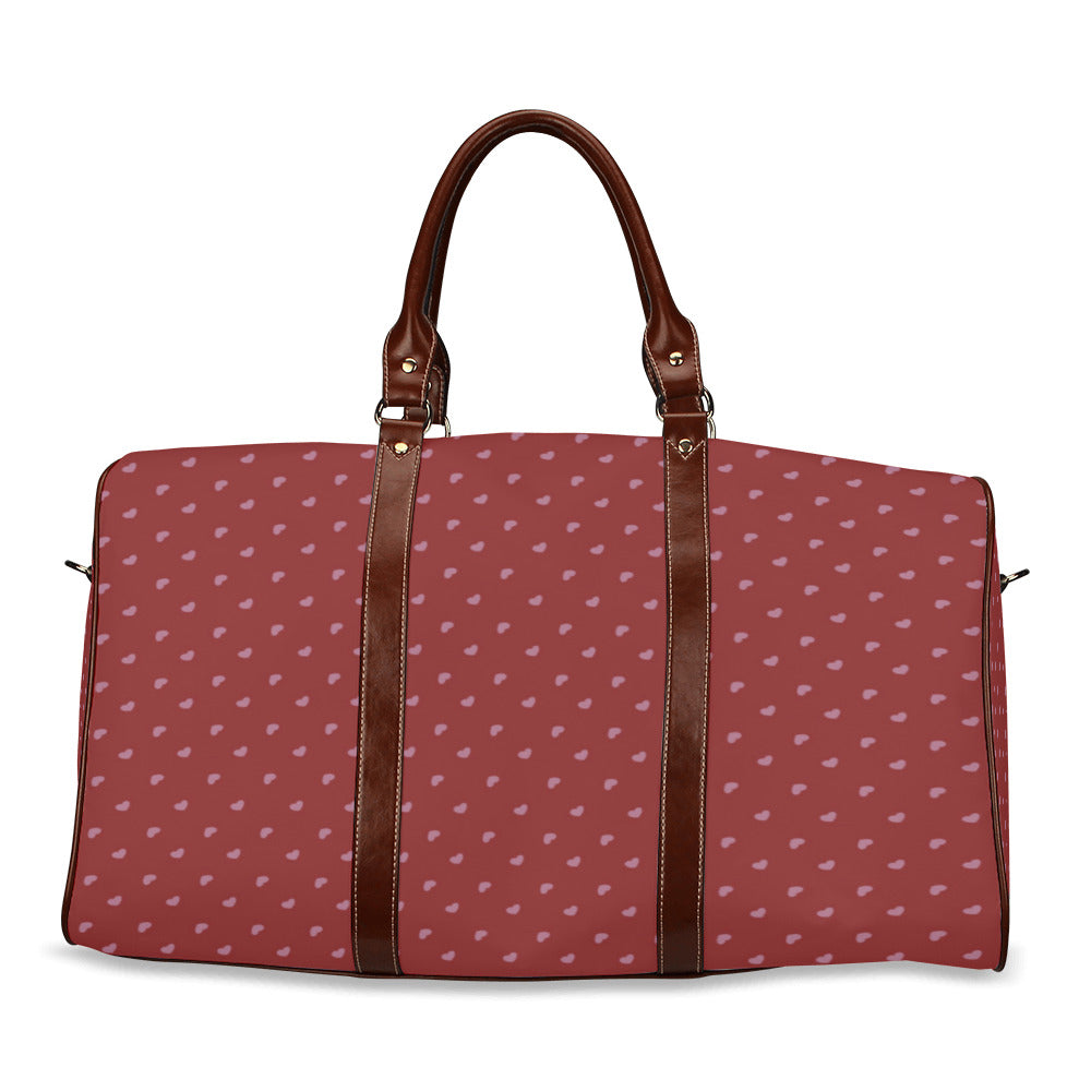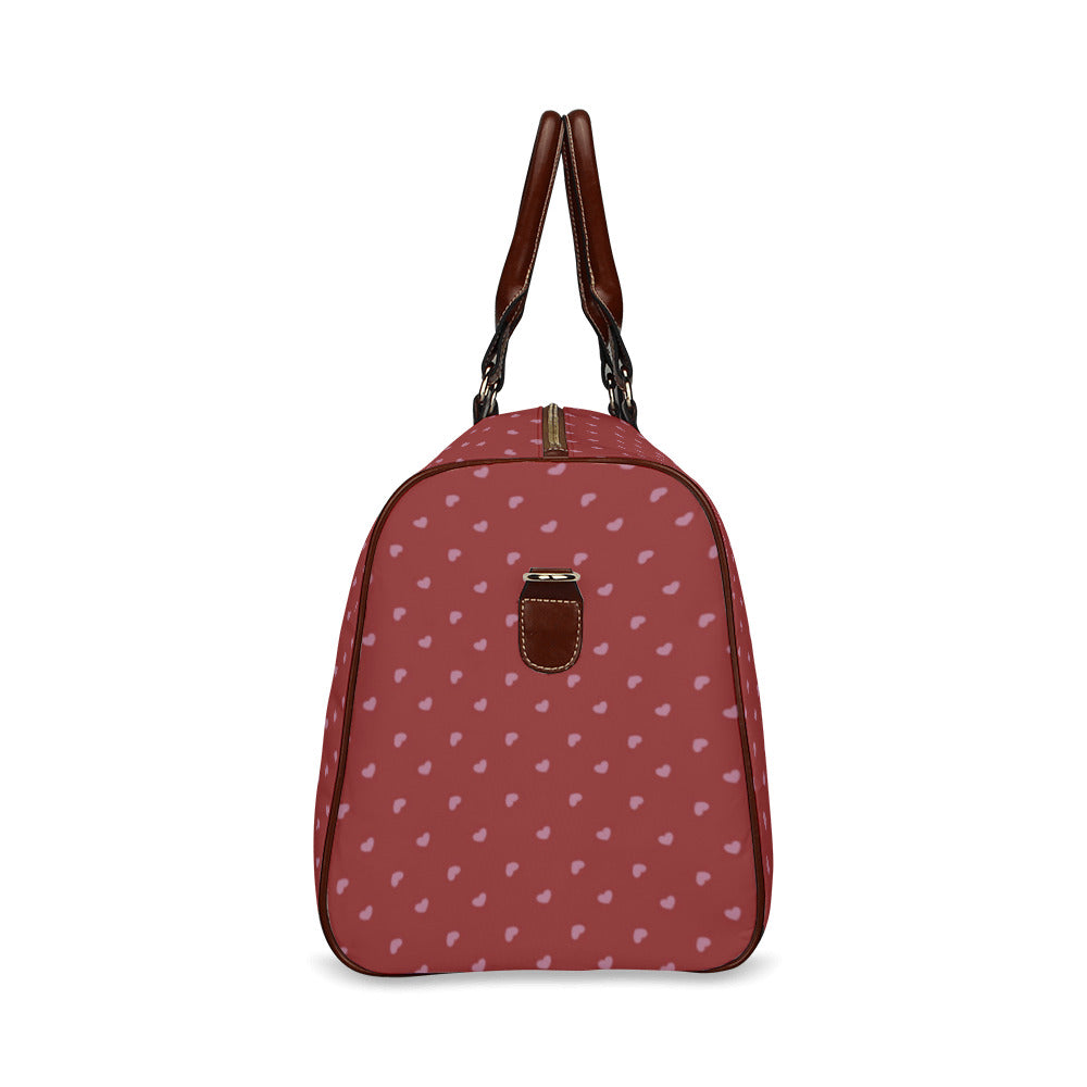 Pink Hearts on Red Waterproof Travel Bag (Small)