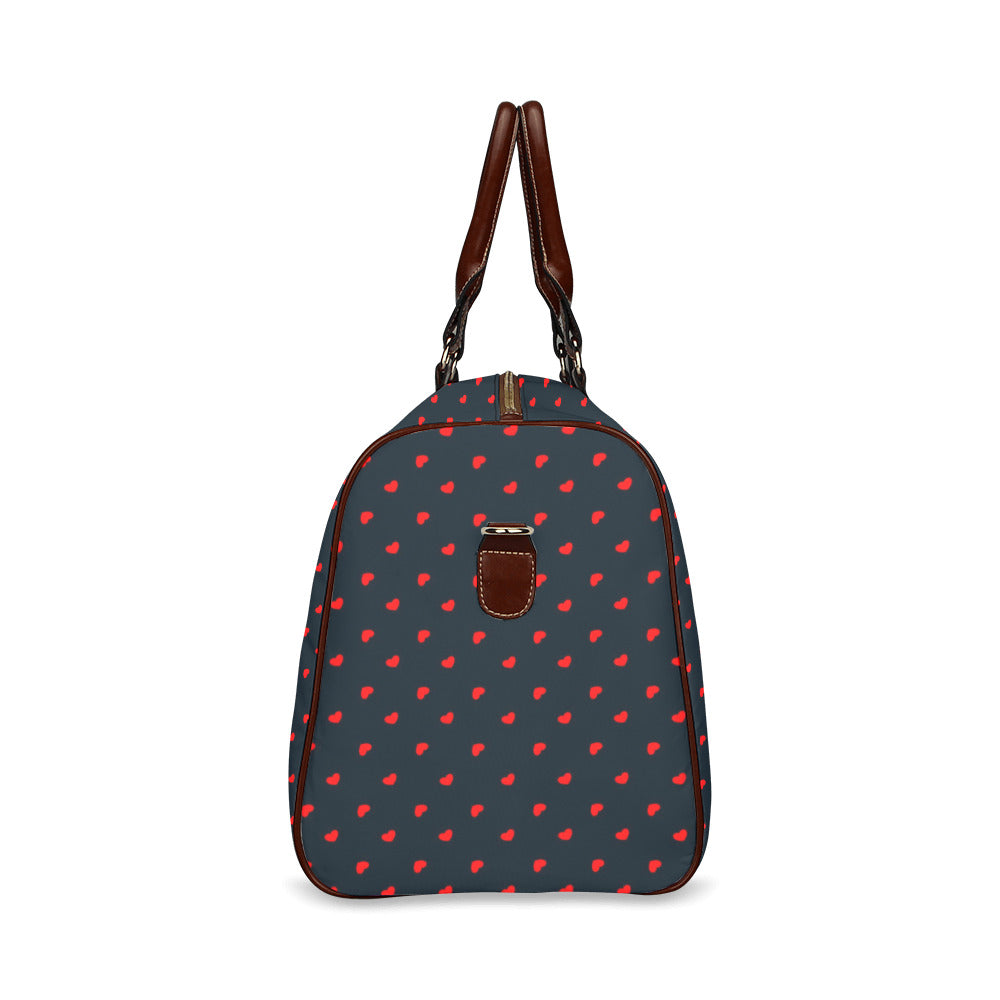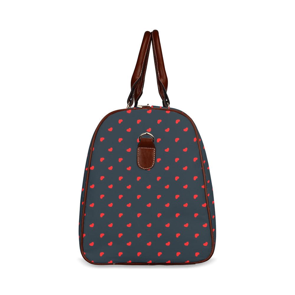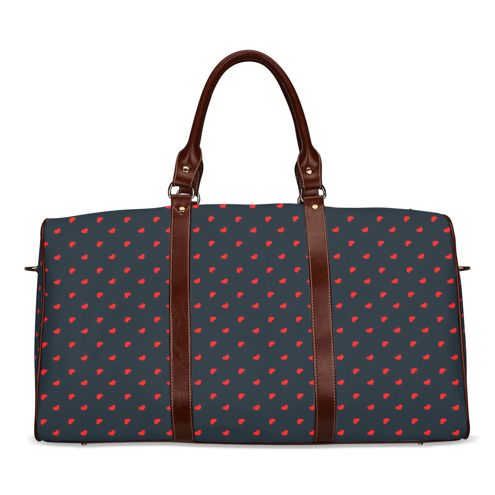 Red Hearts on Navy Waterproof Travel Bag (Large)