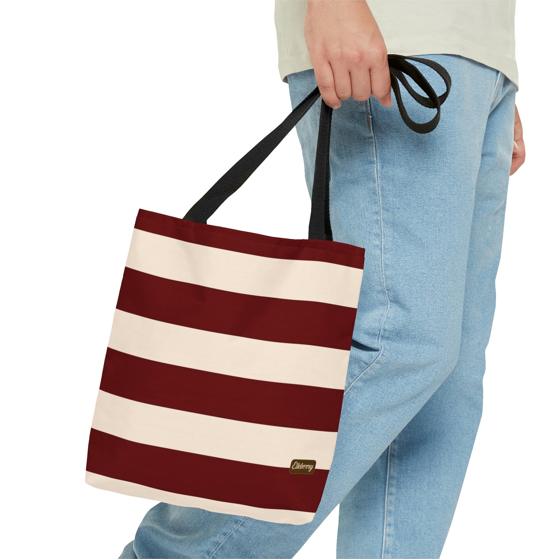 Lightweight Tote Bag - Berry/Cream Stripes