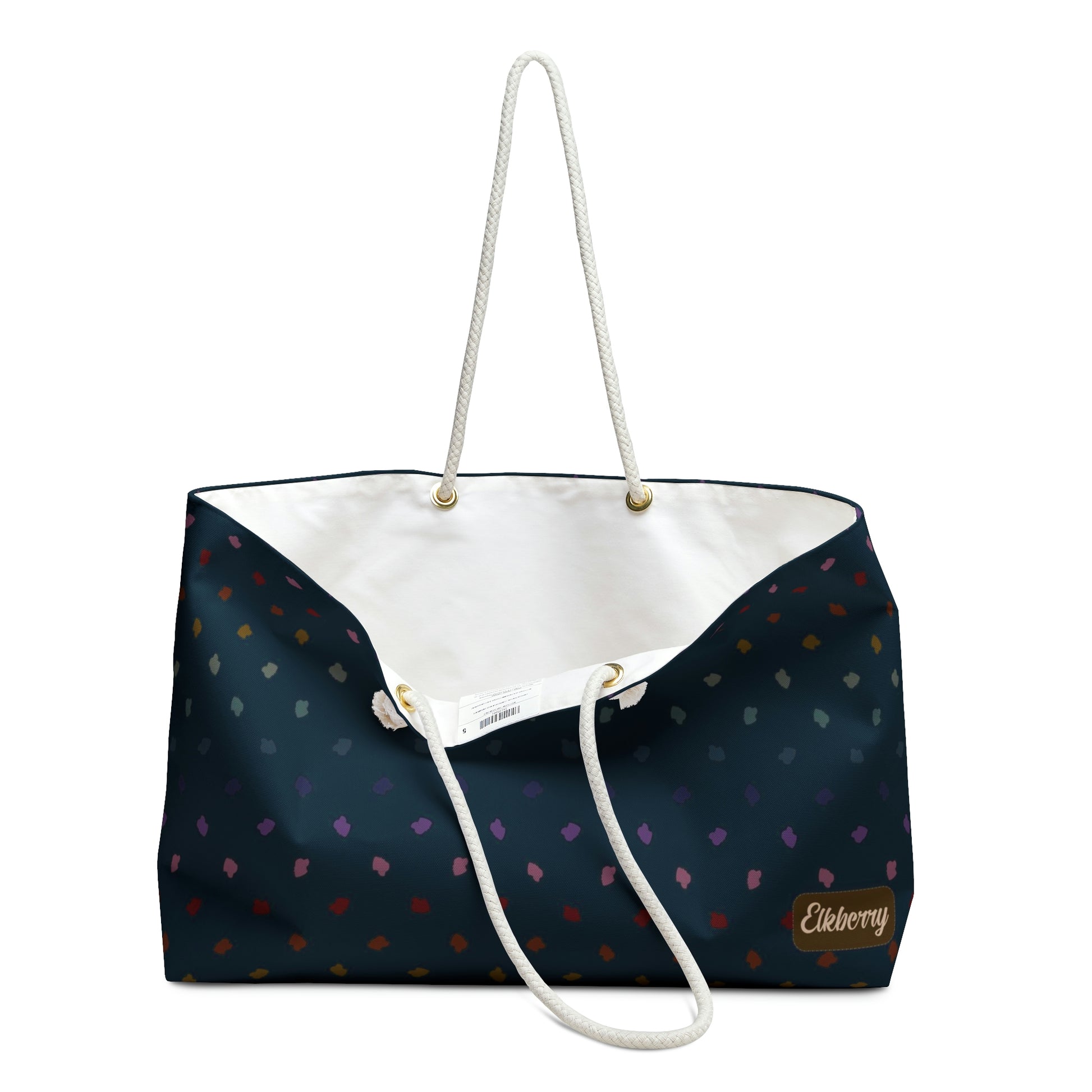 This oversized Weekender Tote is perfect for your weekend at the beach or in town. The wide-mouthed, durable bag holds a generous amount of goodies and is easily held by its thick rope handles.