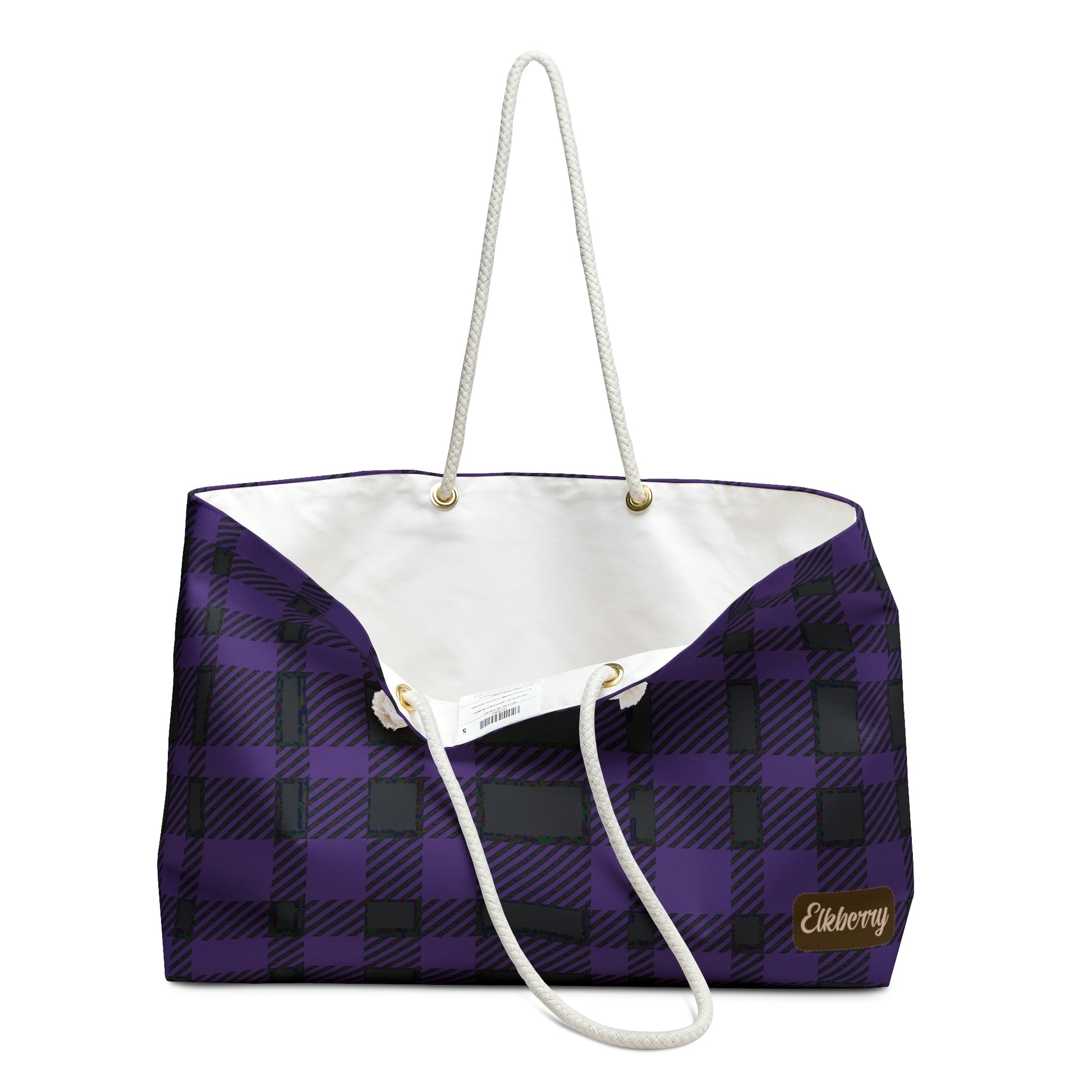 Weekender Tote Bag - Purple Buffalo Check, Purple Plaid