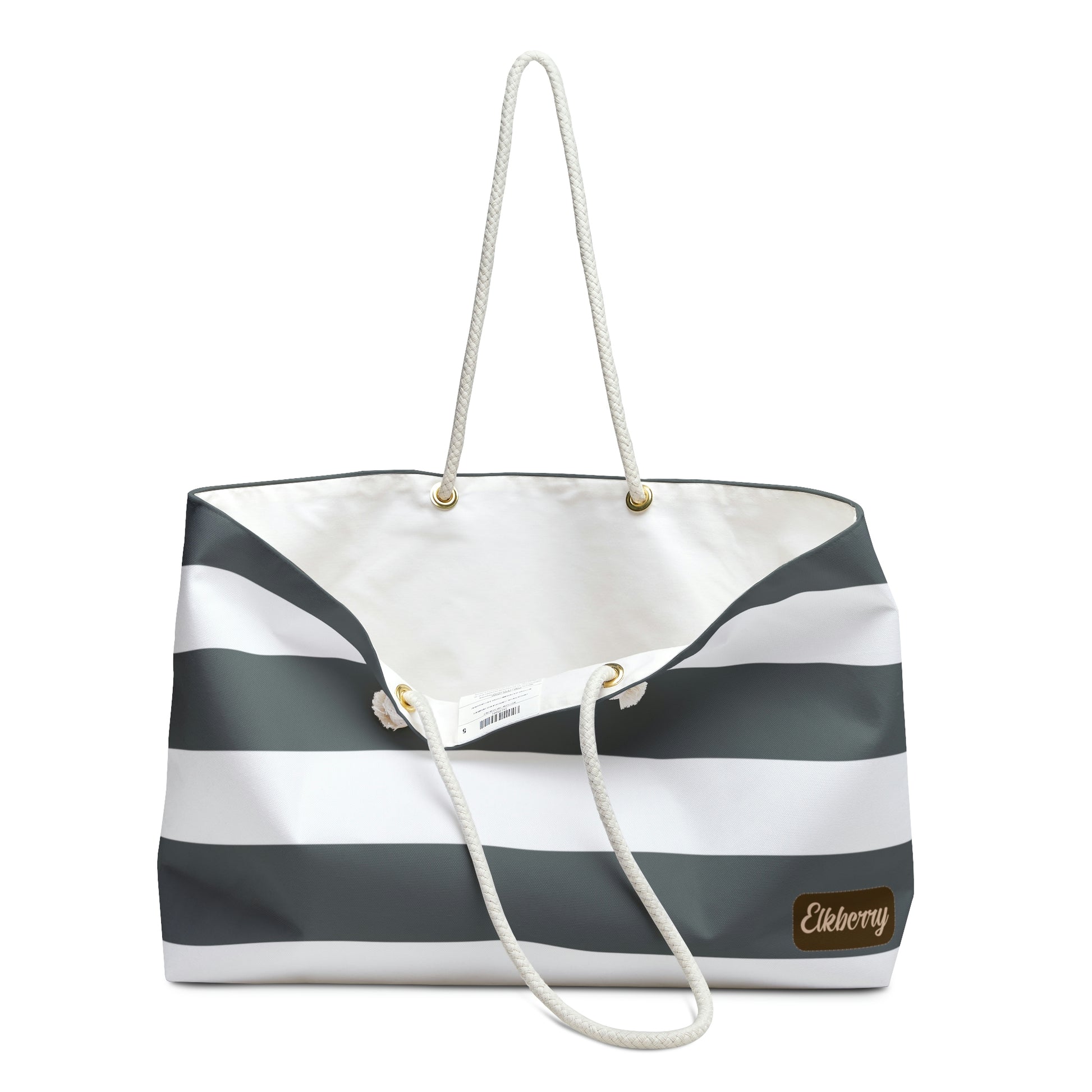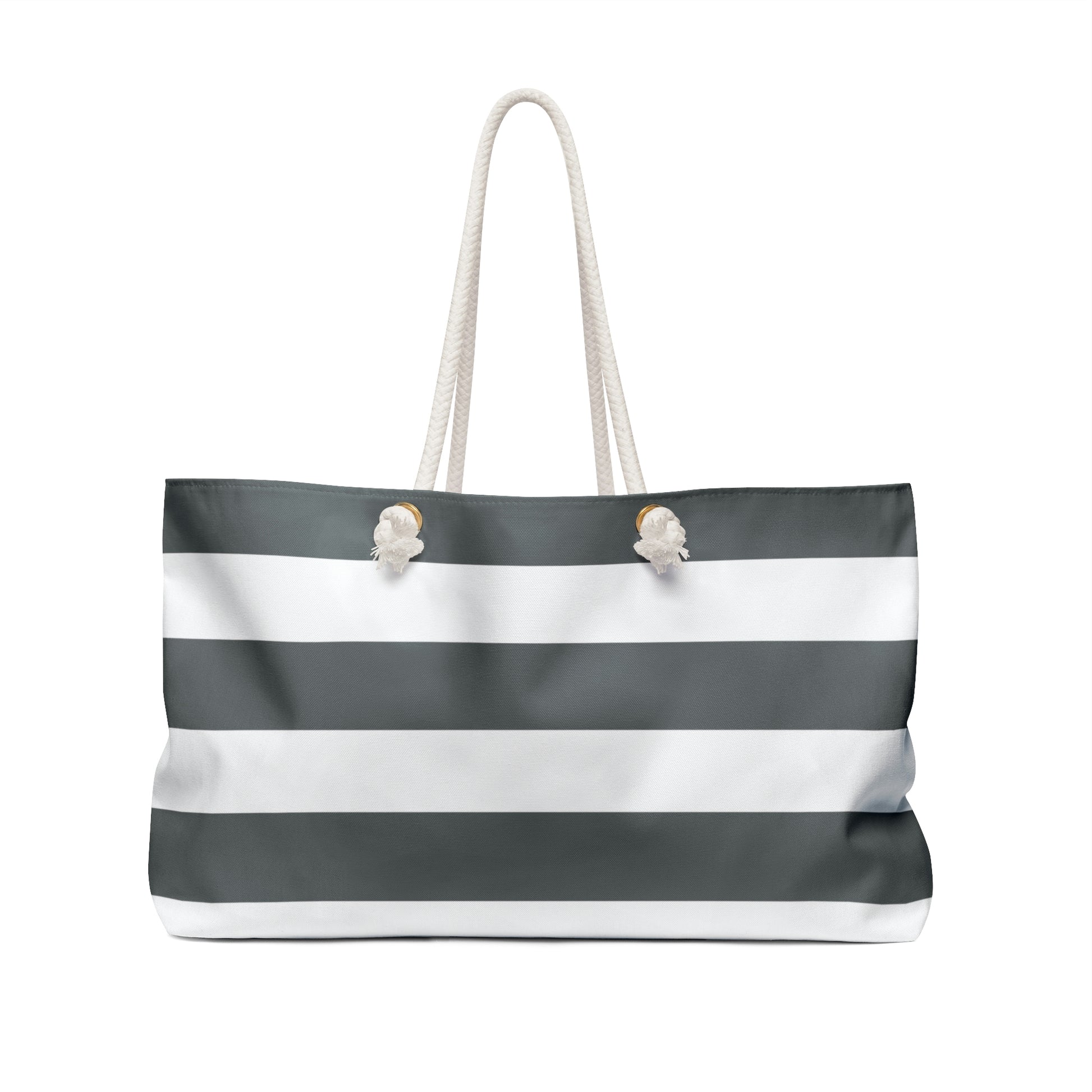 Weekender Tote Bag - Charcoal Gray/White Stripes