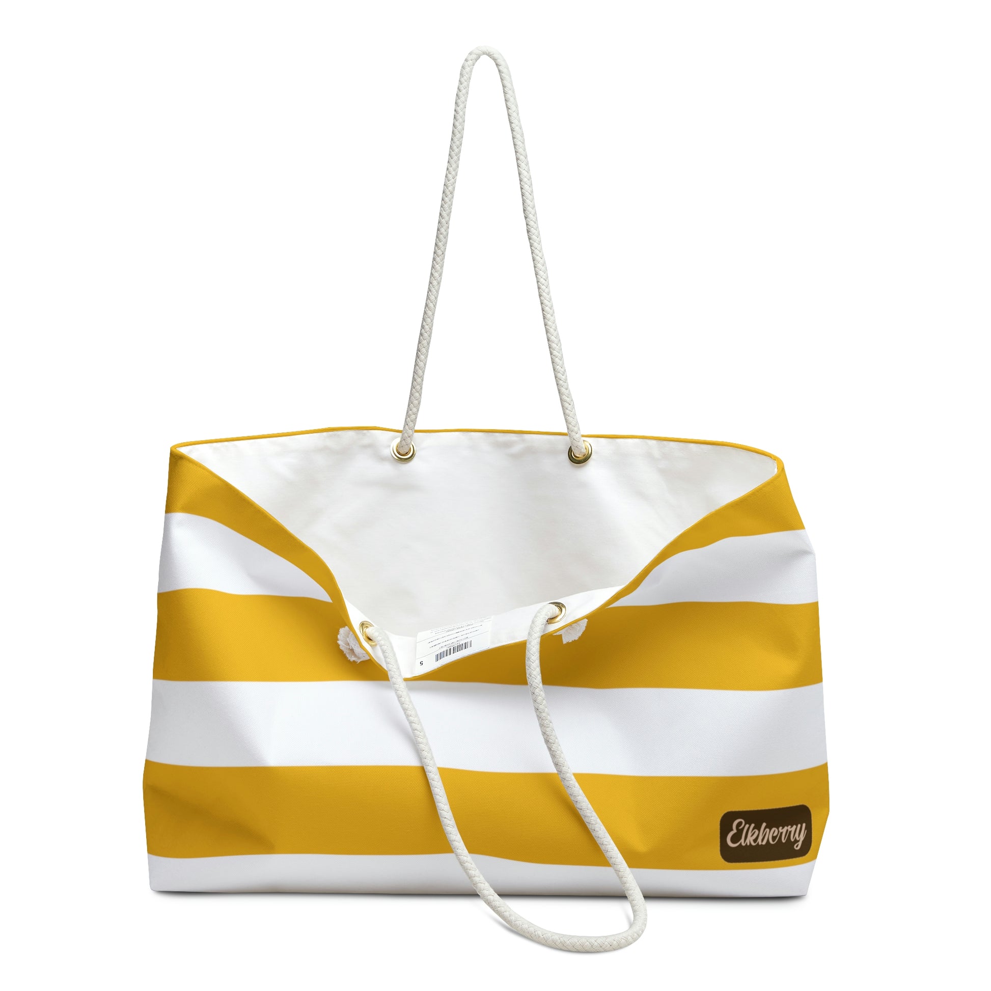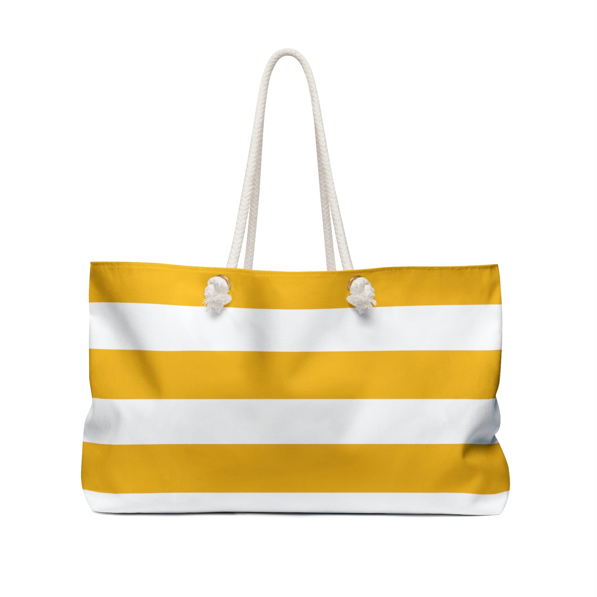 Weekender Tote Bag - Lemon Yellow/White Stripes