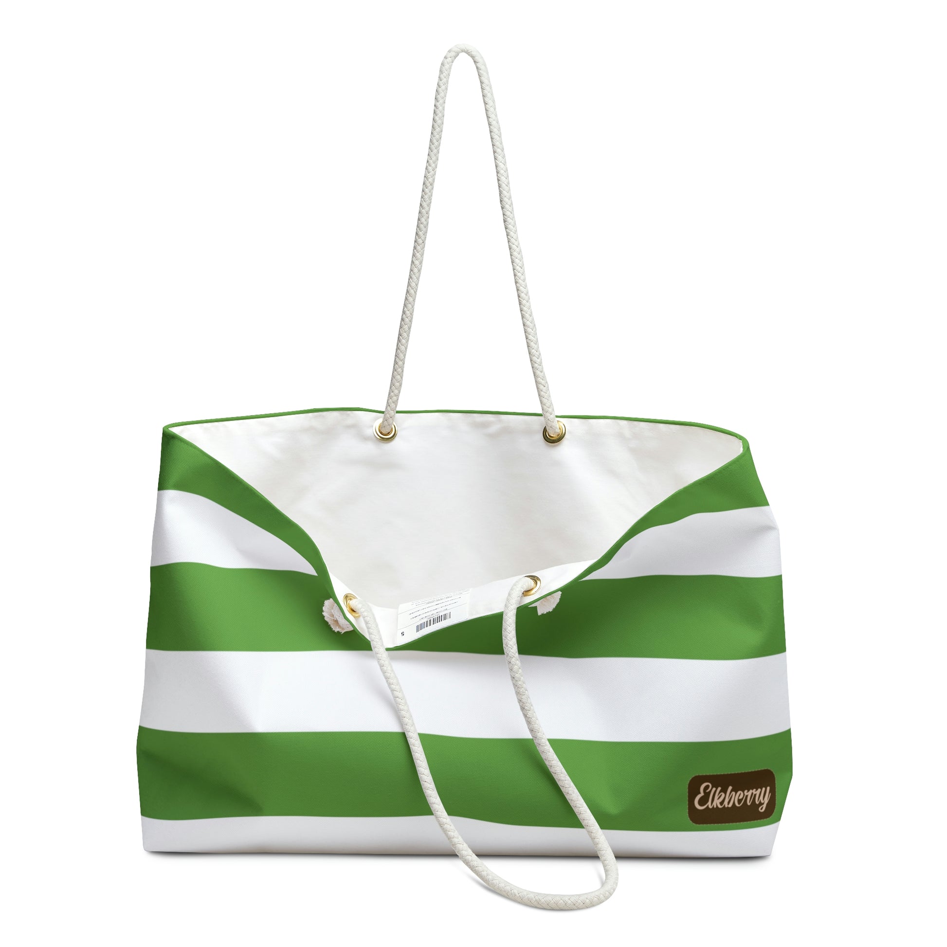 Weekender Tote Bag - Lime Green/White Stripes